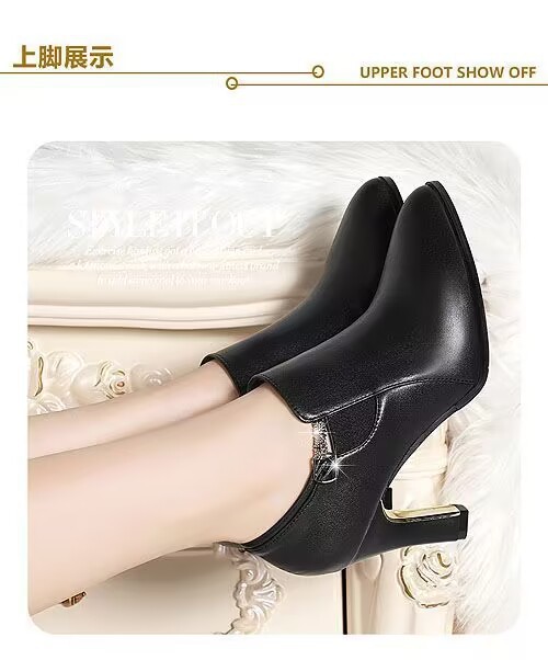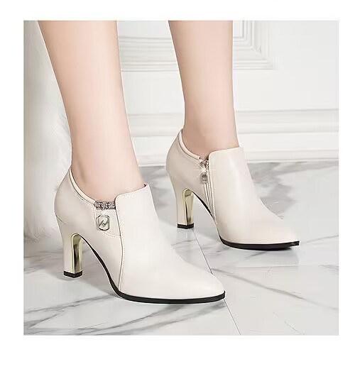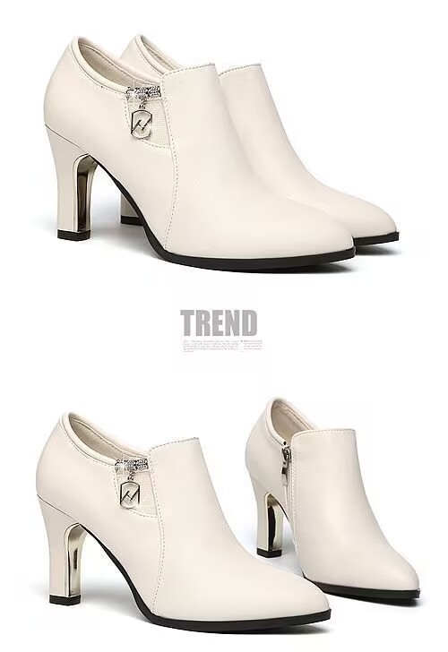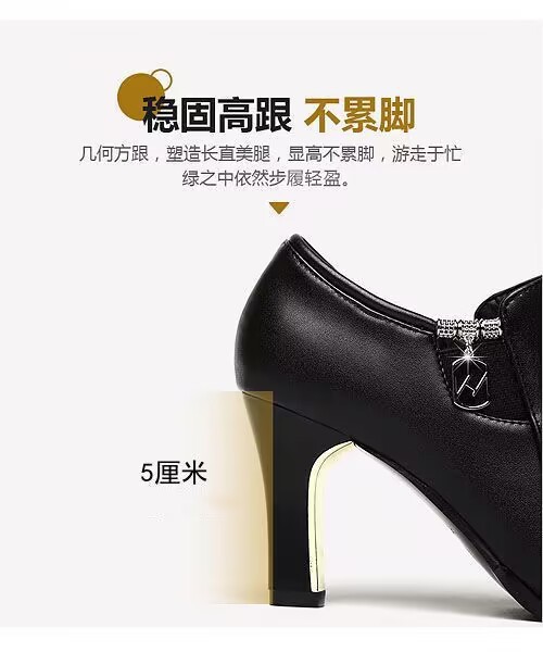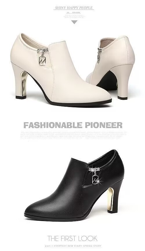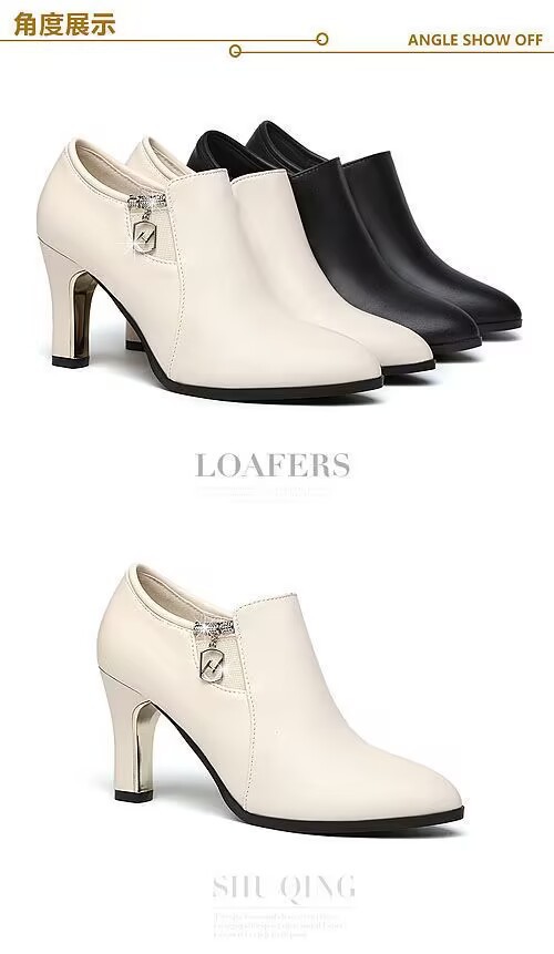 2024 봄과 가을 새로운 대외 무역 지퍼 여성 싱글 신발 패션 올 매치 국경 무역 국경 간 여성 하이힐 가죽 신발스토어 가기