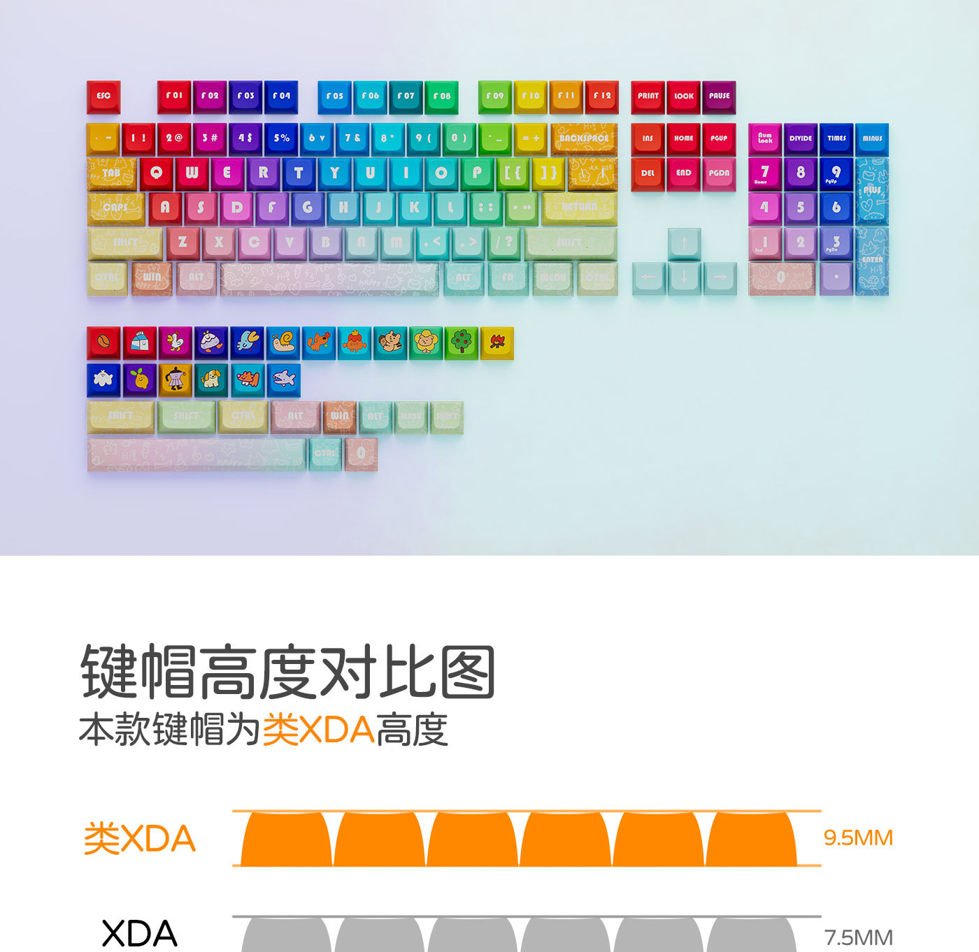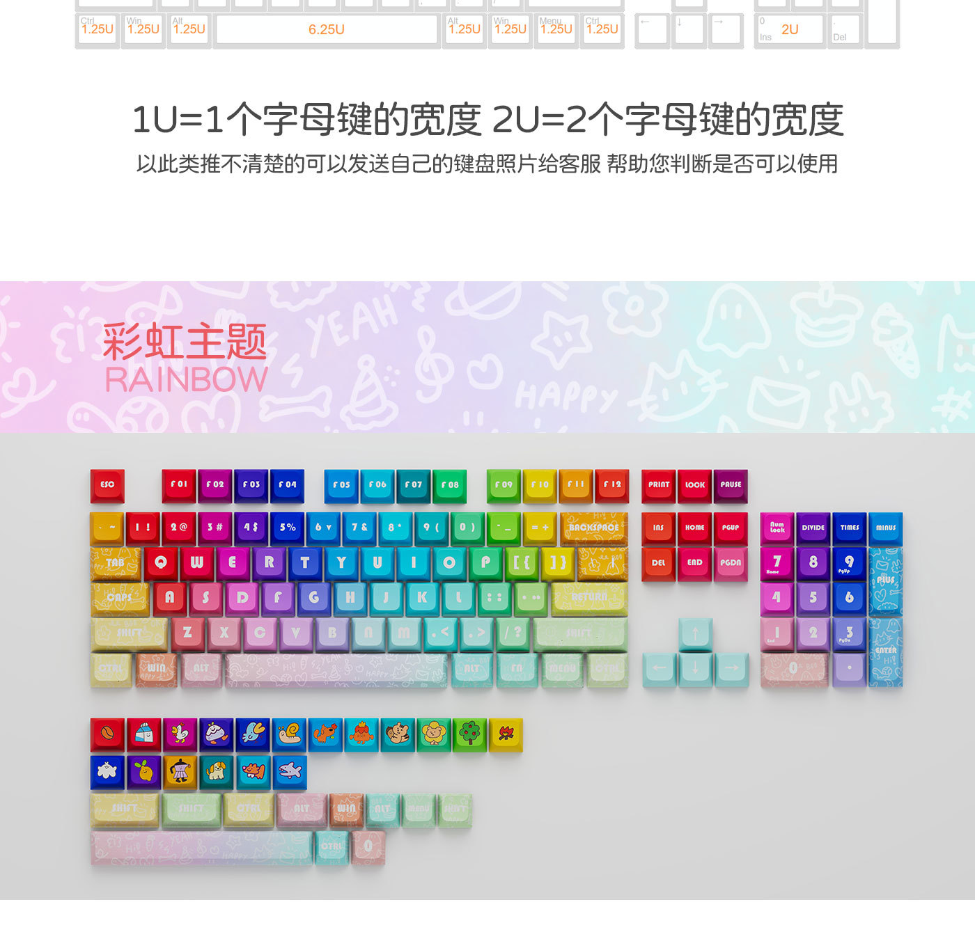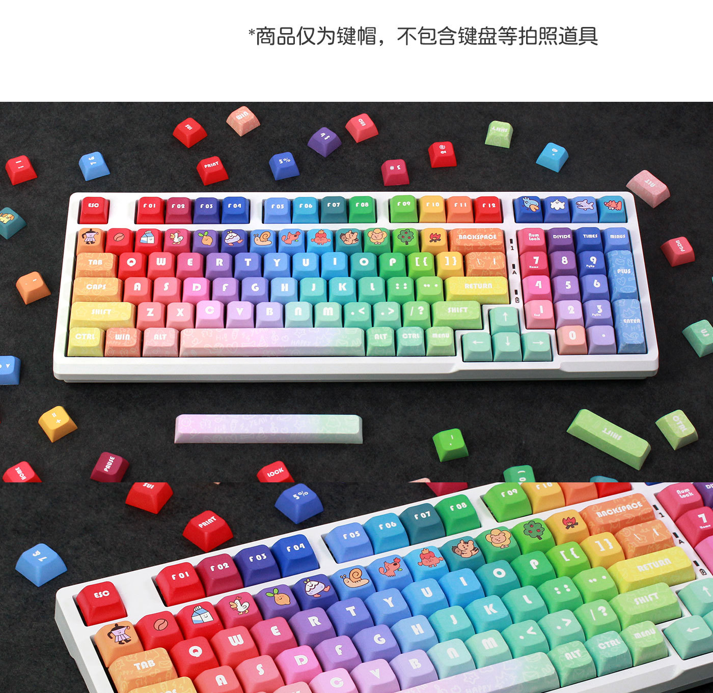 무지개 귀여운 맞춤형 키캡 PBT 5 면 승화 XDA 기계식 키보드 유니버설