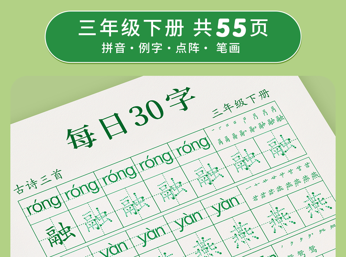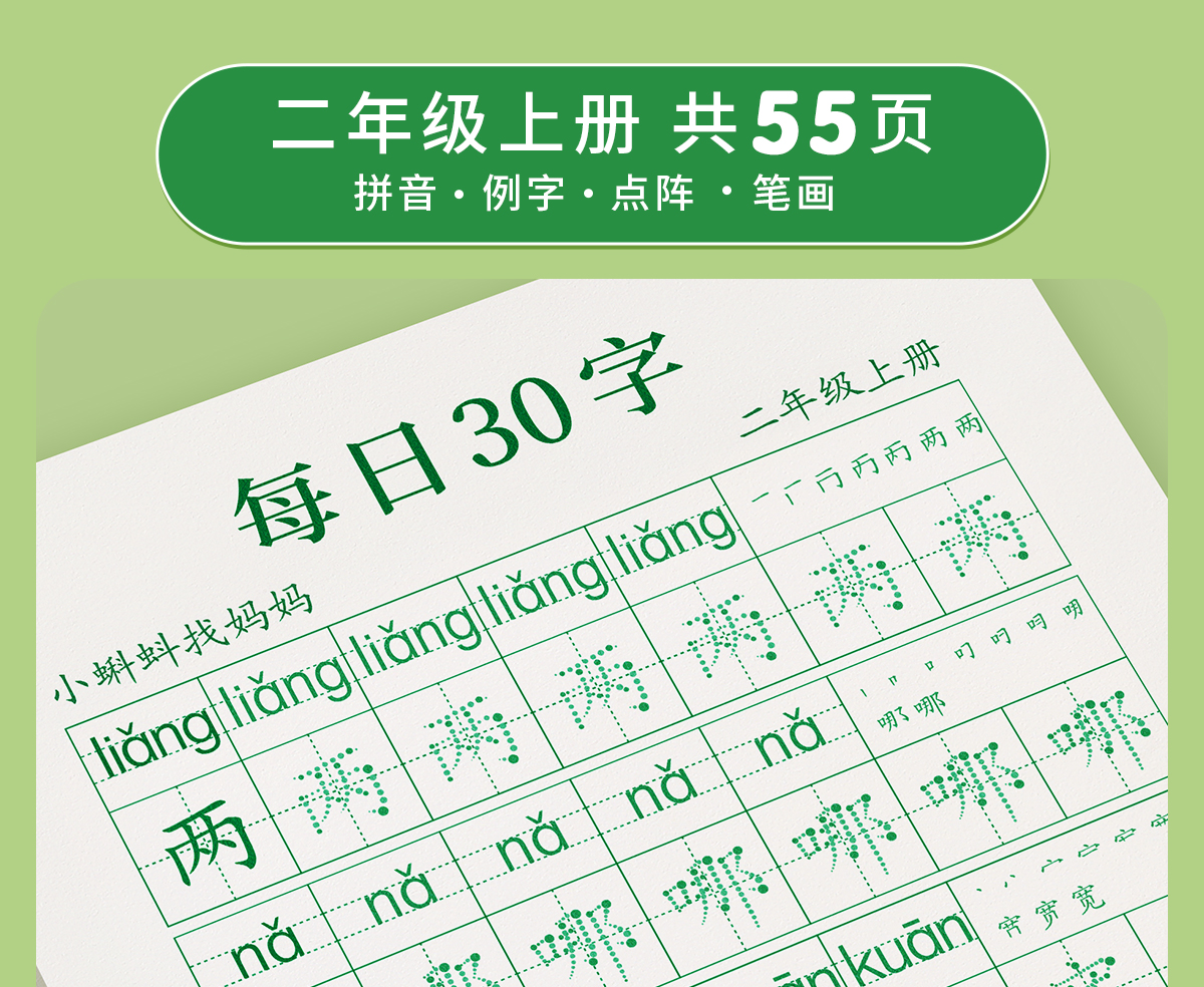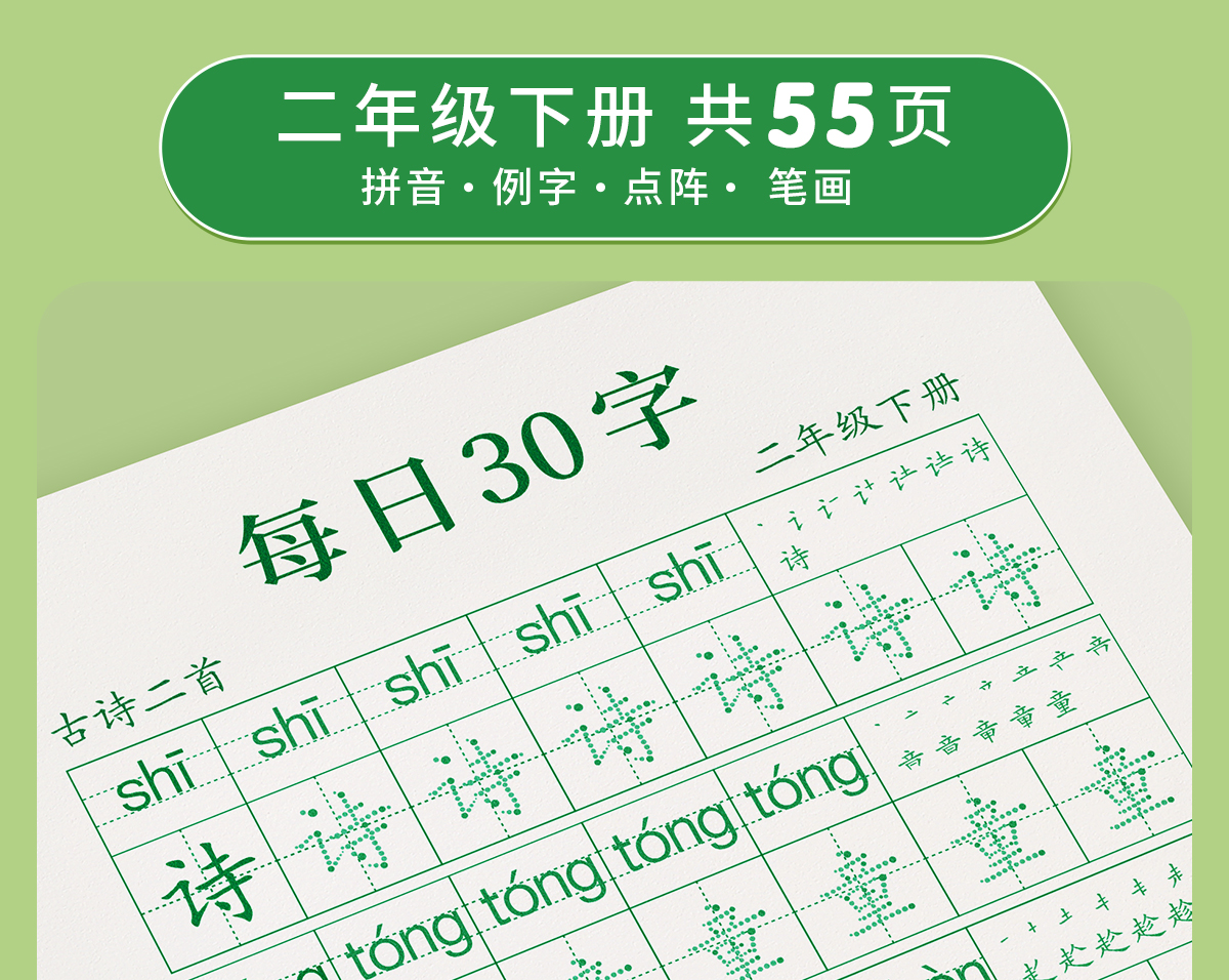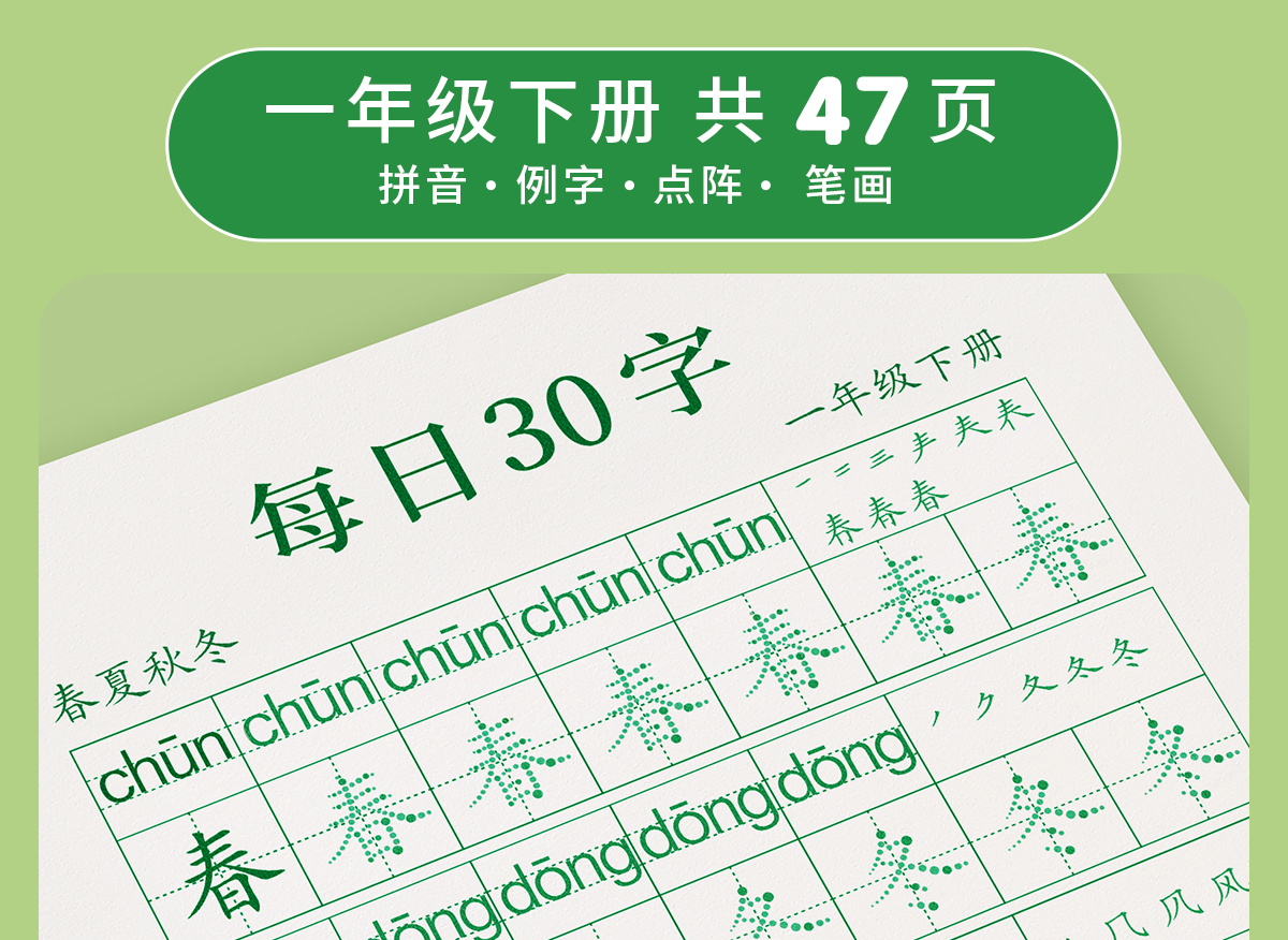 1 학년, 2 학년, 2 권, 1 권, 하루 30 단어, 초등학생을위한 카피 북을 하루에 3 년 동안 연습합니다.