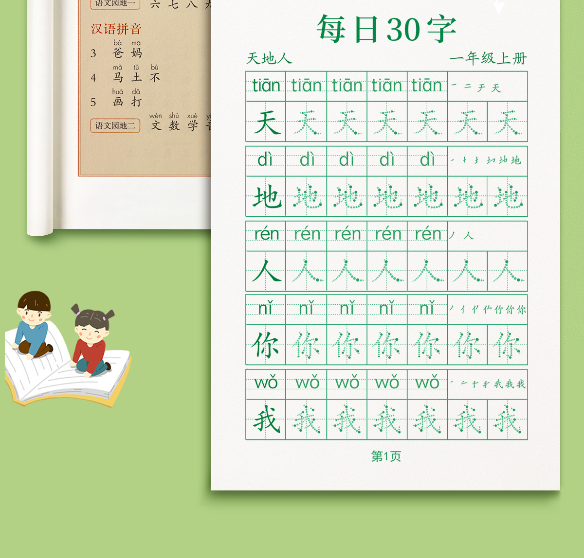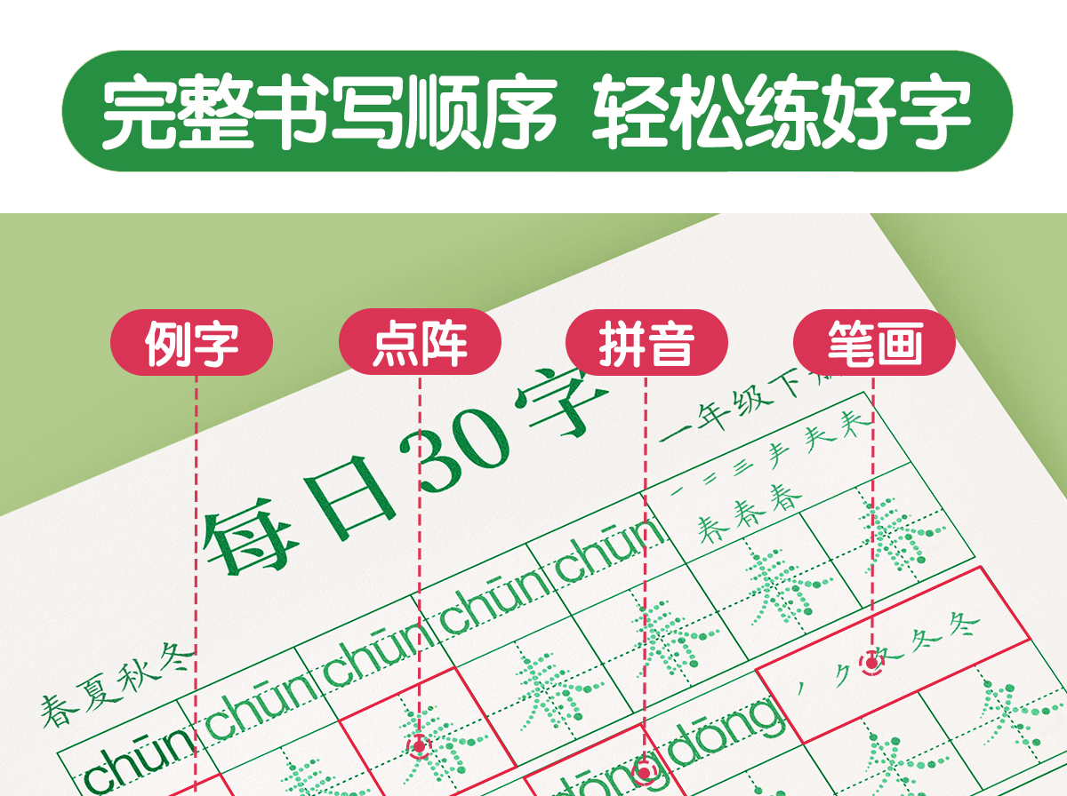 1 학년, 2 학년, 2 권, 1 권, 하루 30 단어, 초등학생을위한 카피 북을 하루에 3 년 동안 연습합니다.스토어 가기