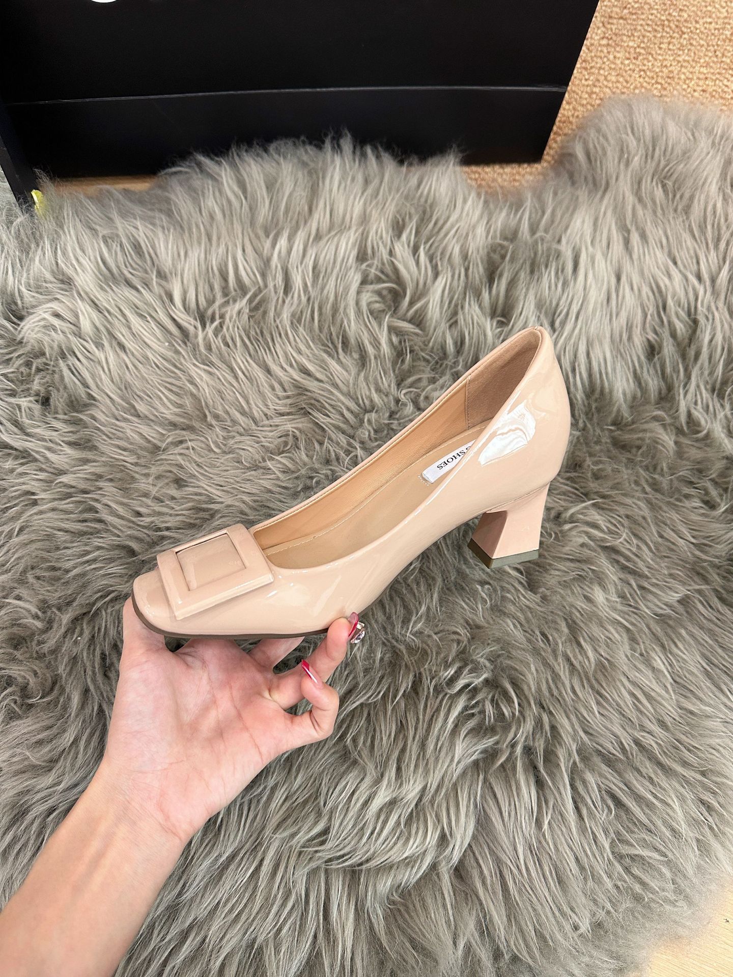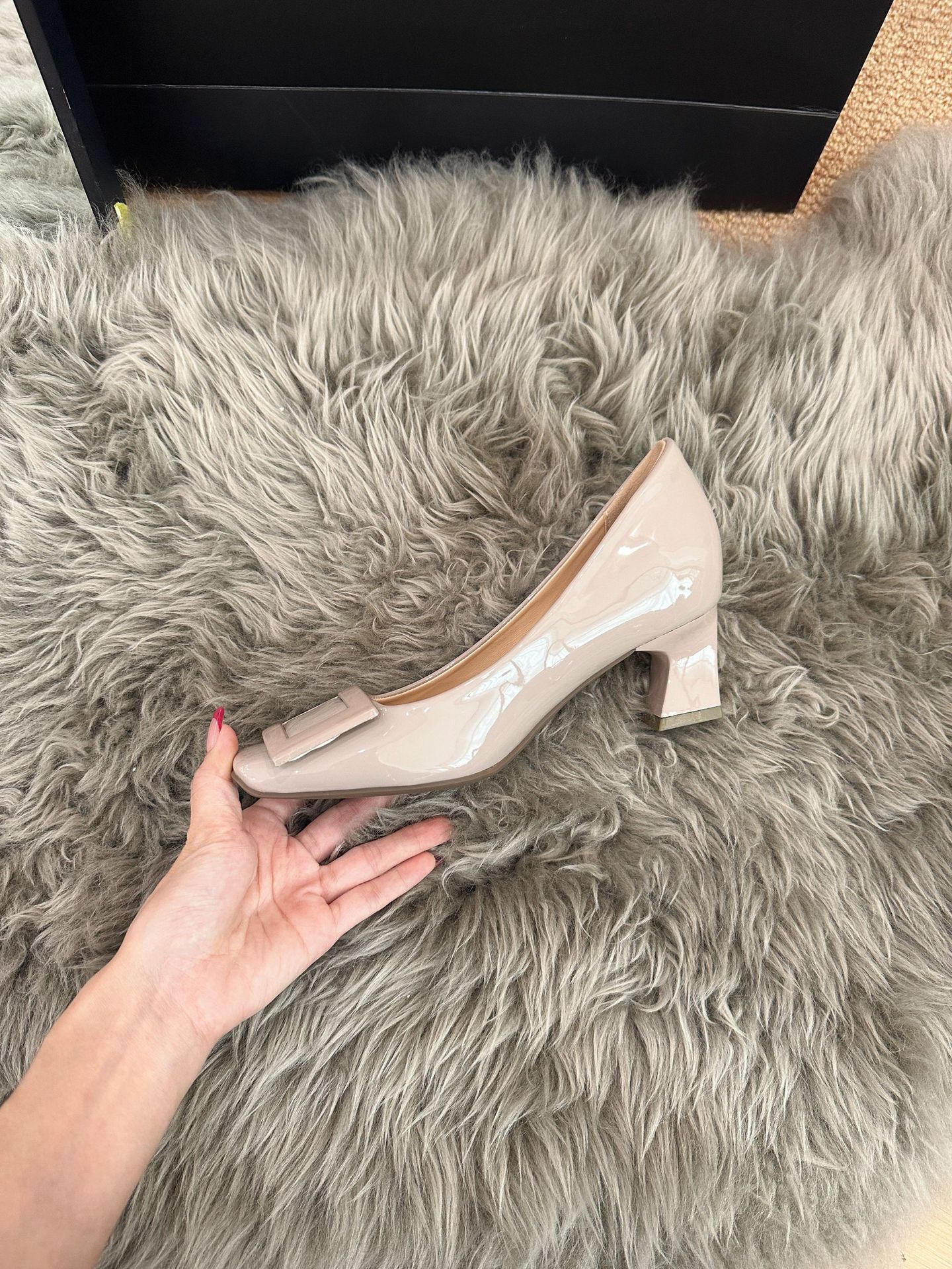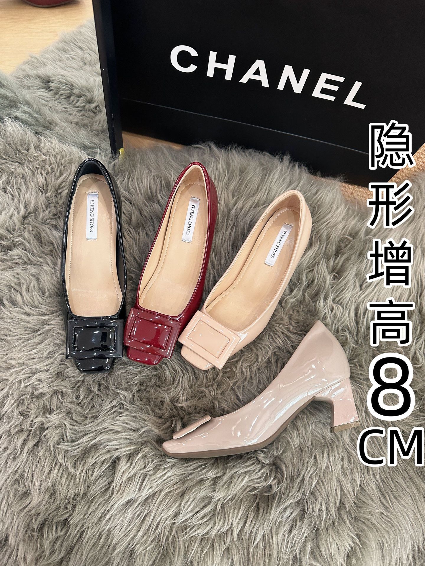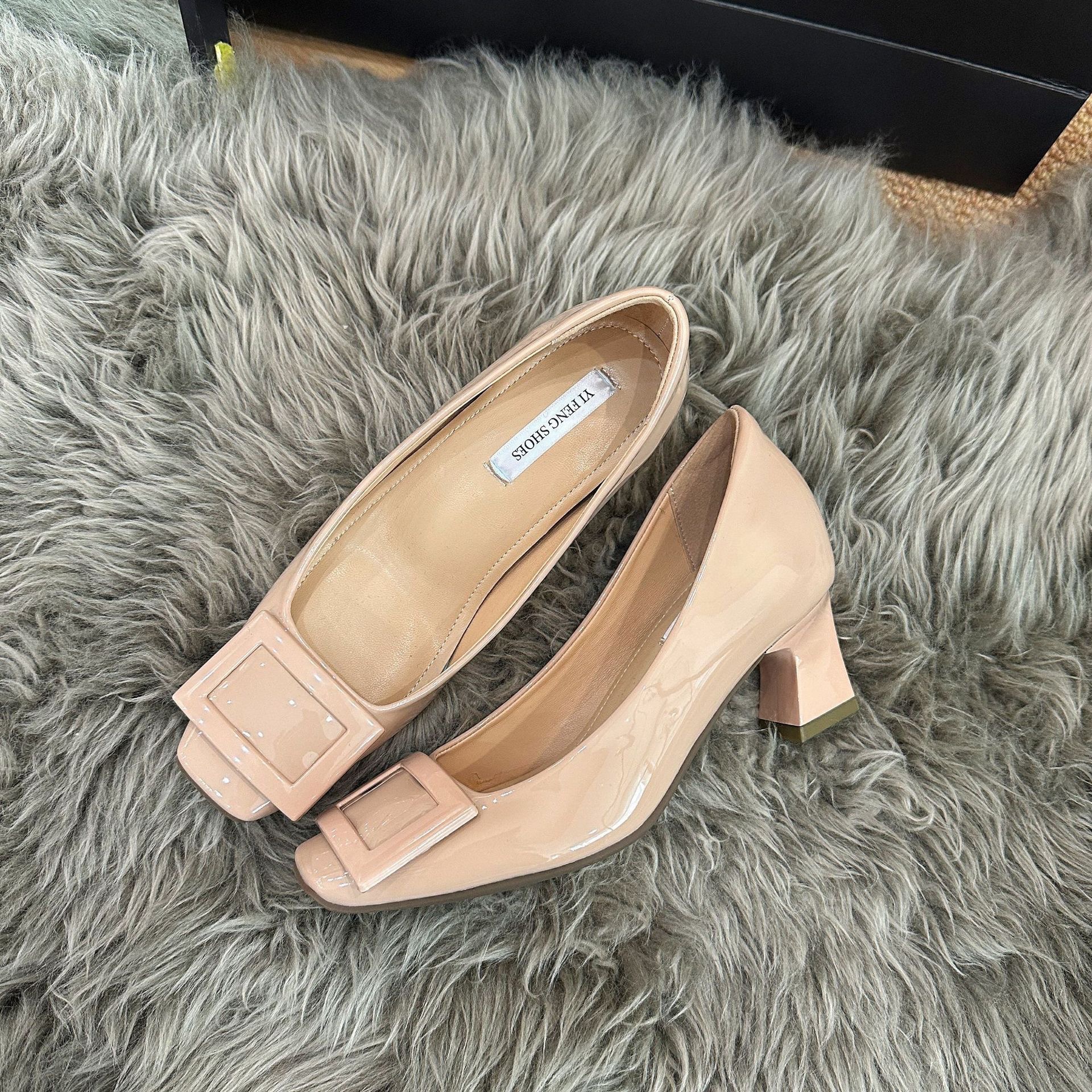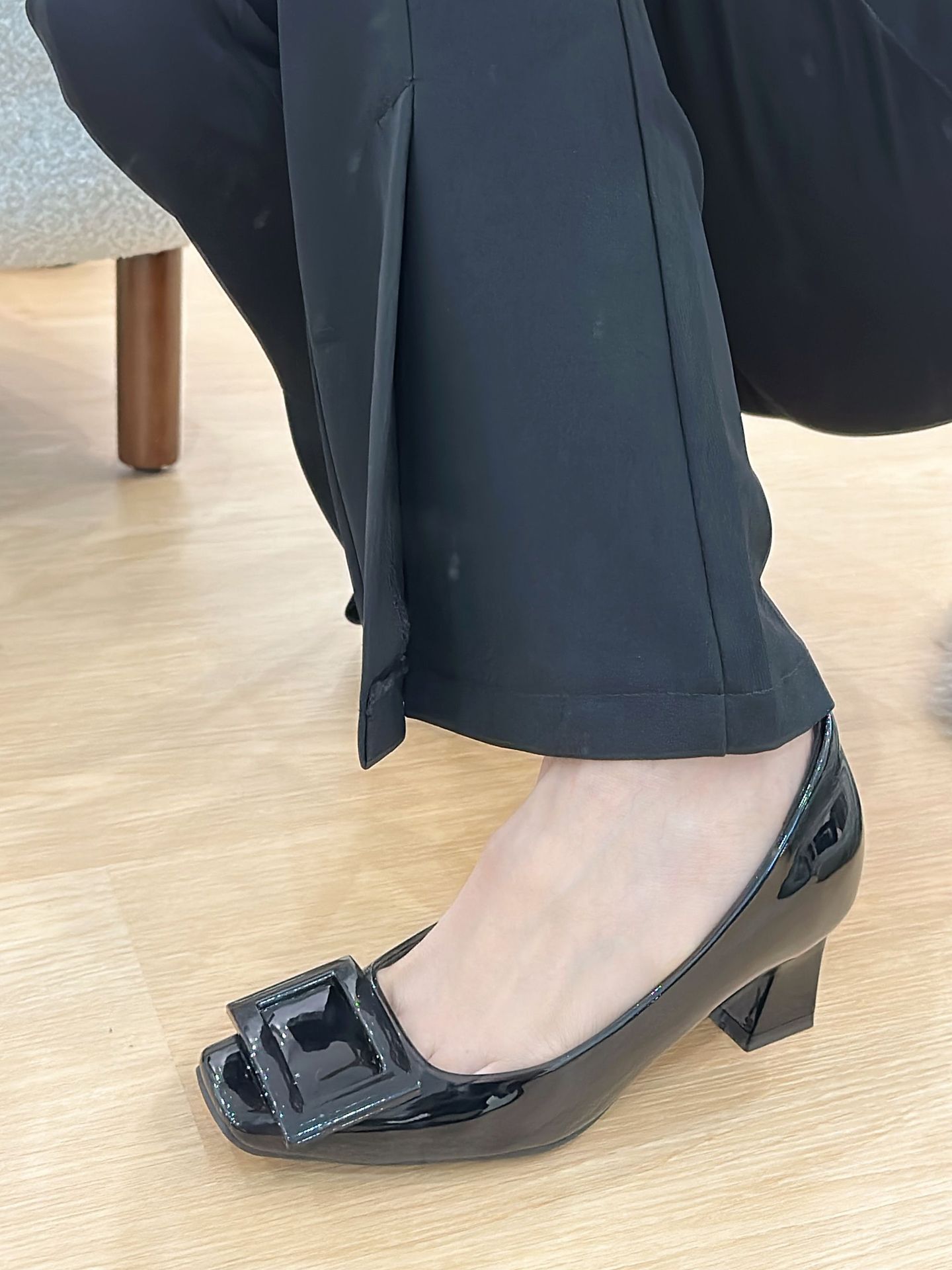 내부 높이 여성 신발 클래식 스퀘어 버클 스퀘어 헤드 얕은 입 싱글 신발 여성용 부드러운 부드러운 특허 가죽 하이힐 두꺼운 힐 신발스토어 가기