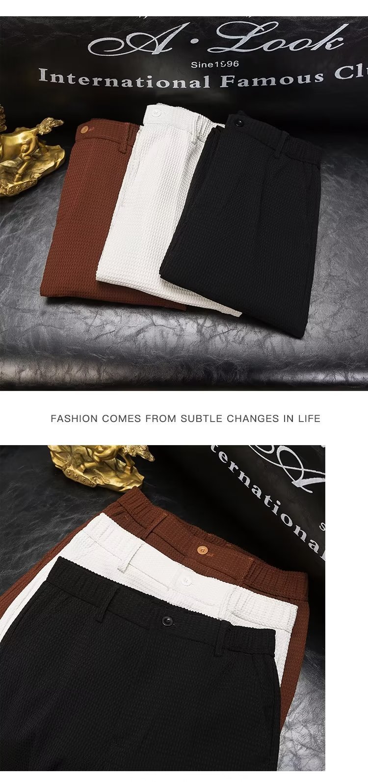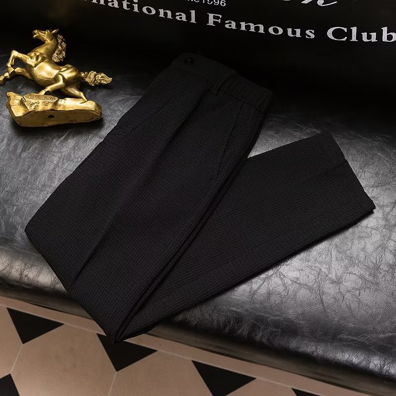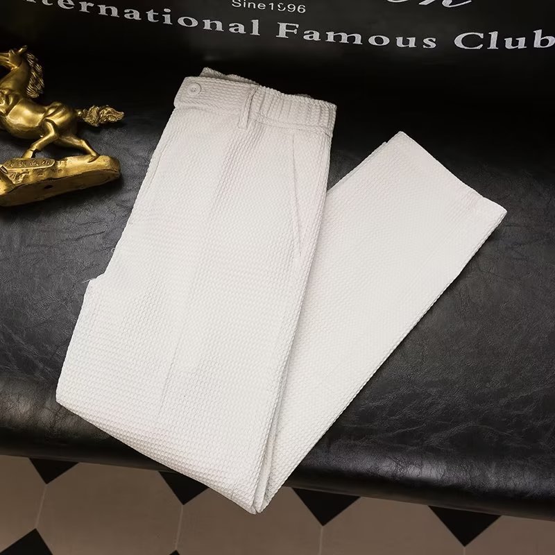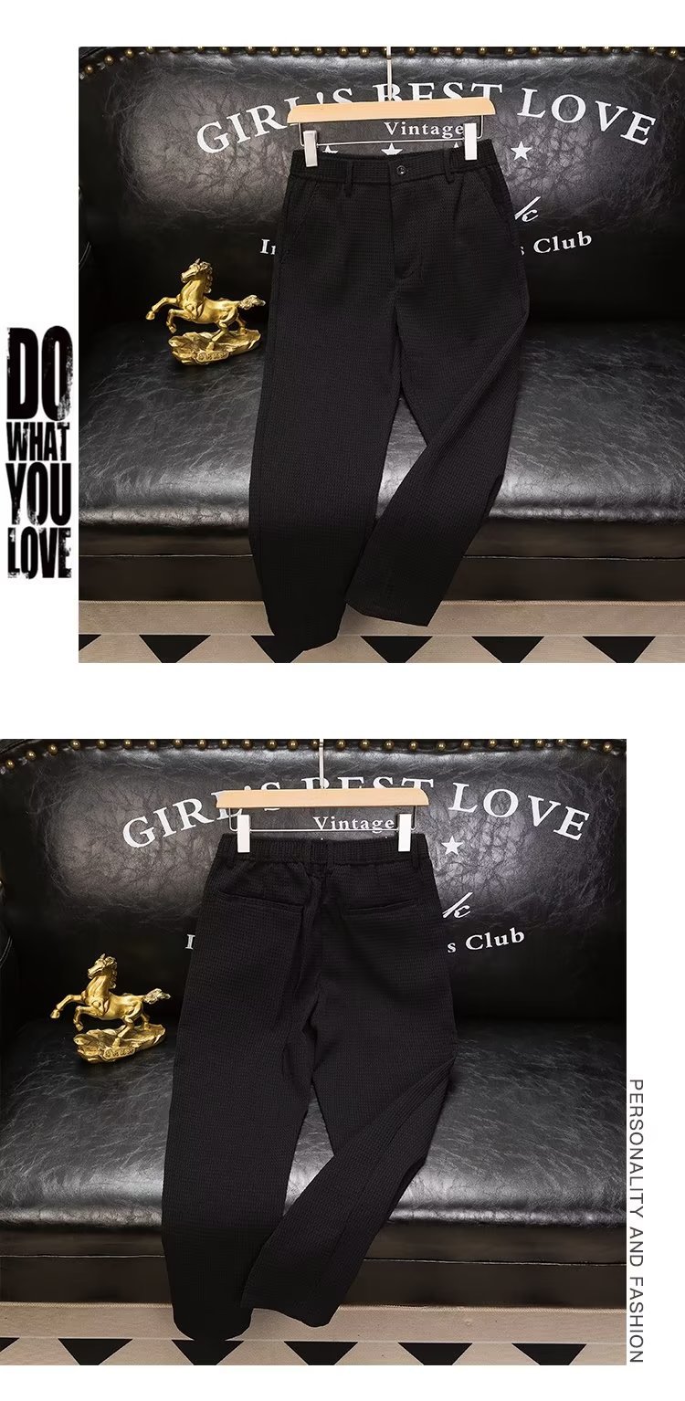 여름 남자의 새로운 와플 단색 캐주얼 바지 비즈니스 남성 허리 탄성 바지 청소년 유행 바지스토어 가기
