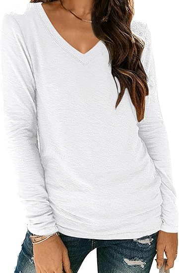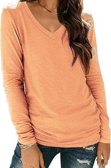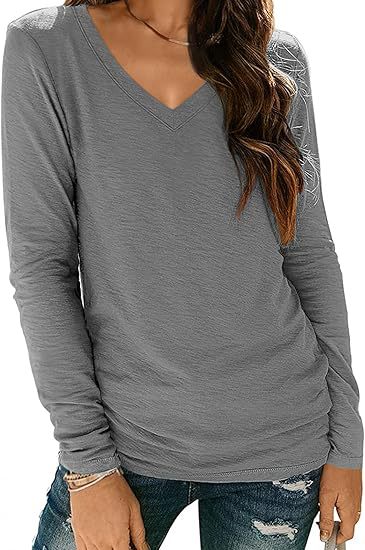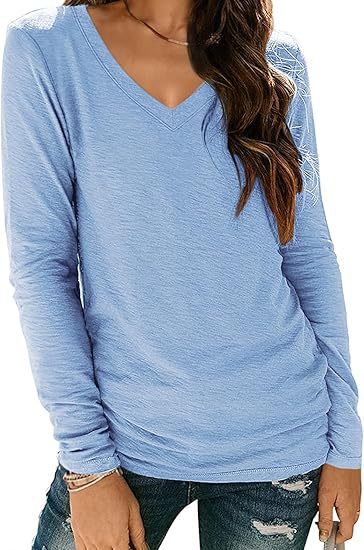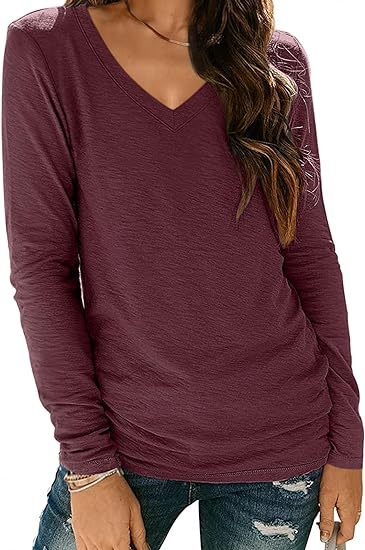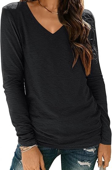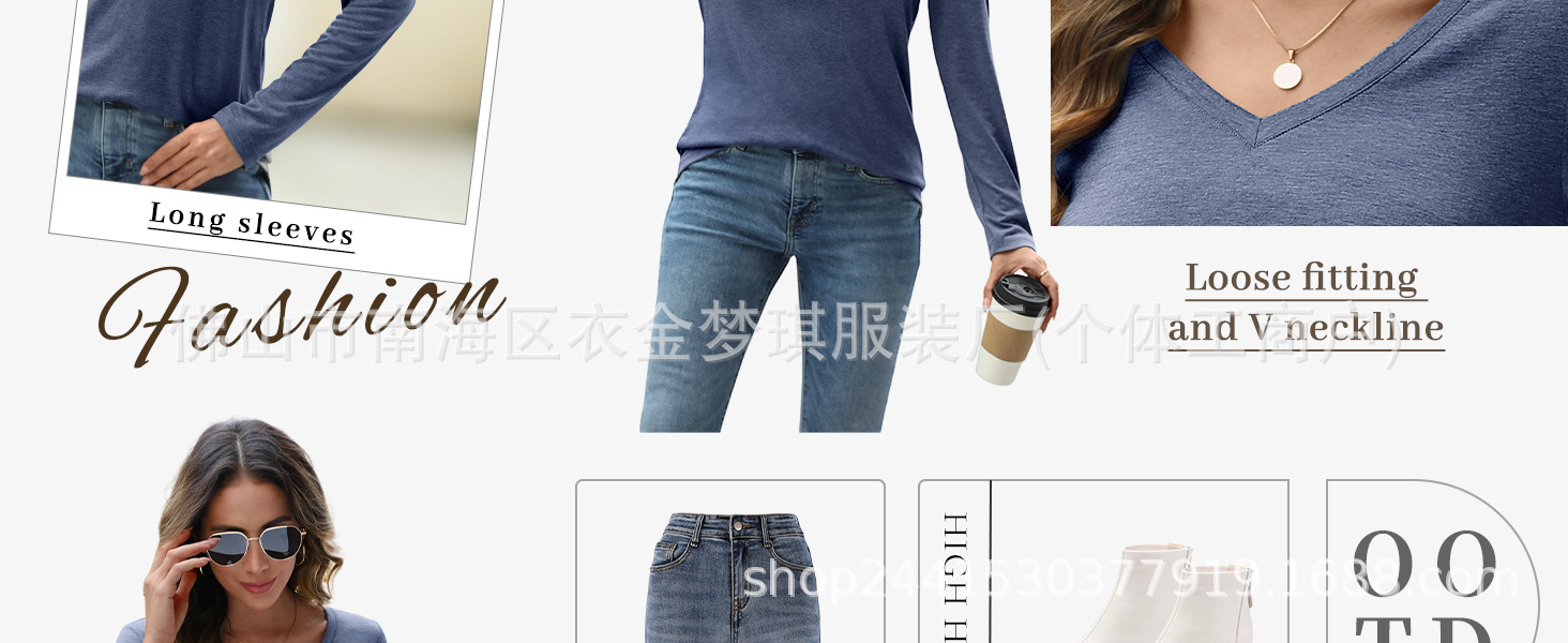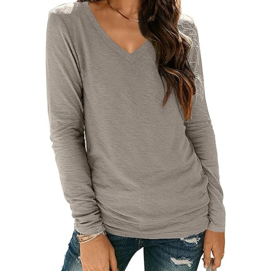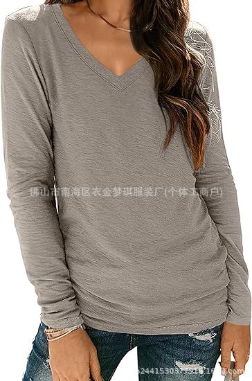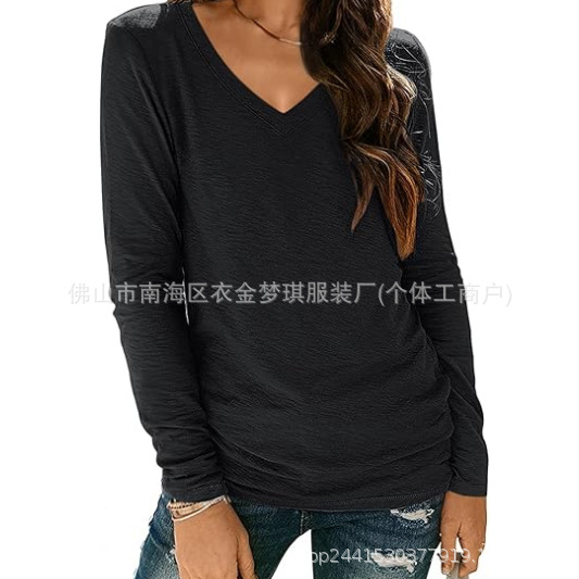 Amazon 2024 유럽과 미국 의류 새로운 v 넥 긴팔 여성 티셔츠 대외 무역 셔츠 크로스 보더 솔리드 컬러 탑 티셔츠스토어 가기