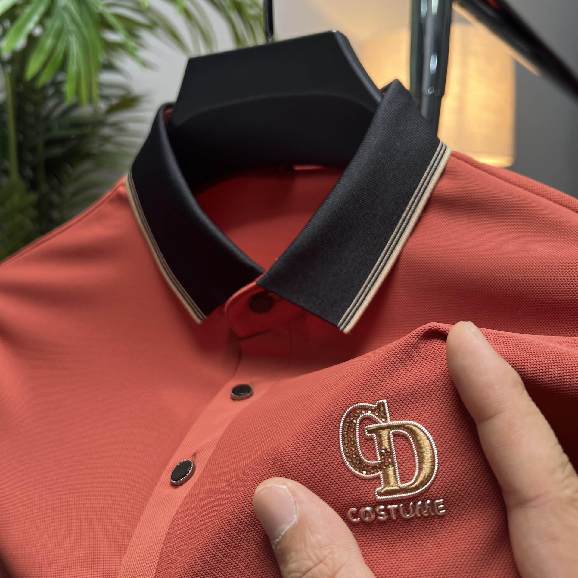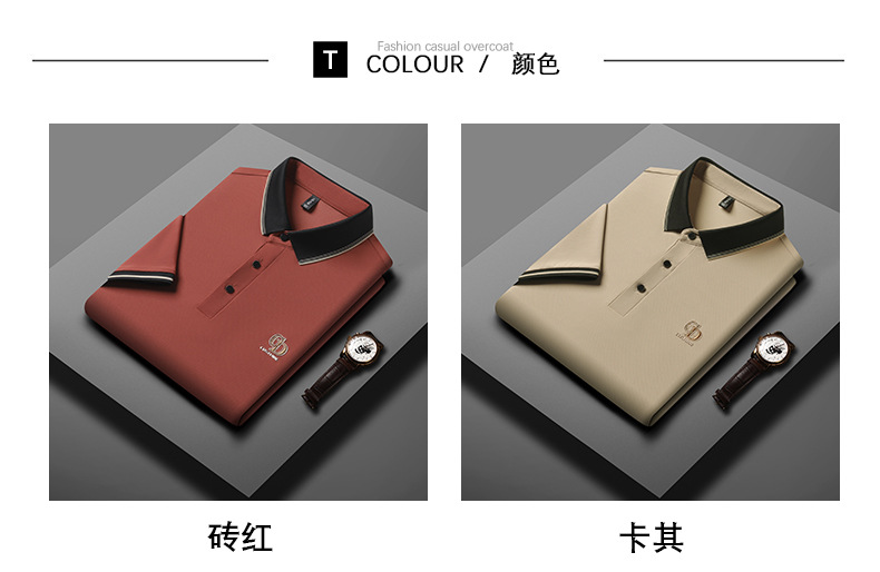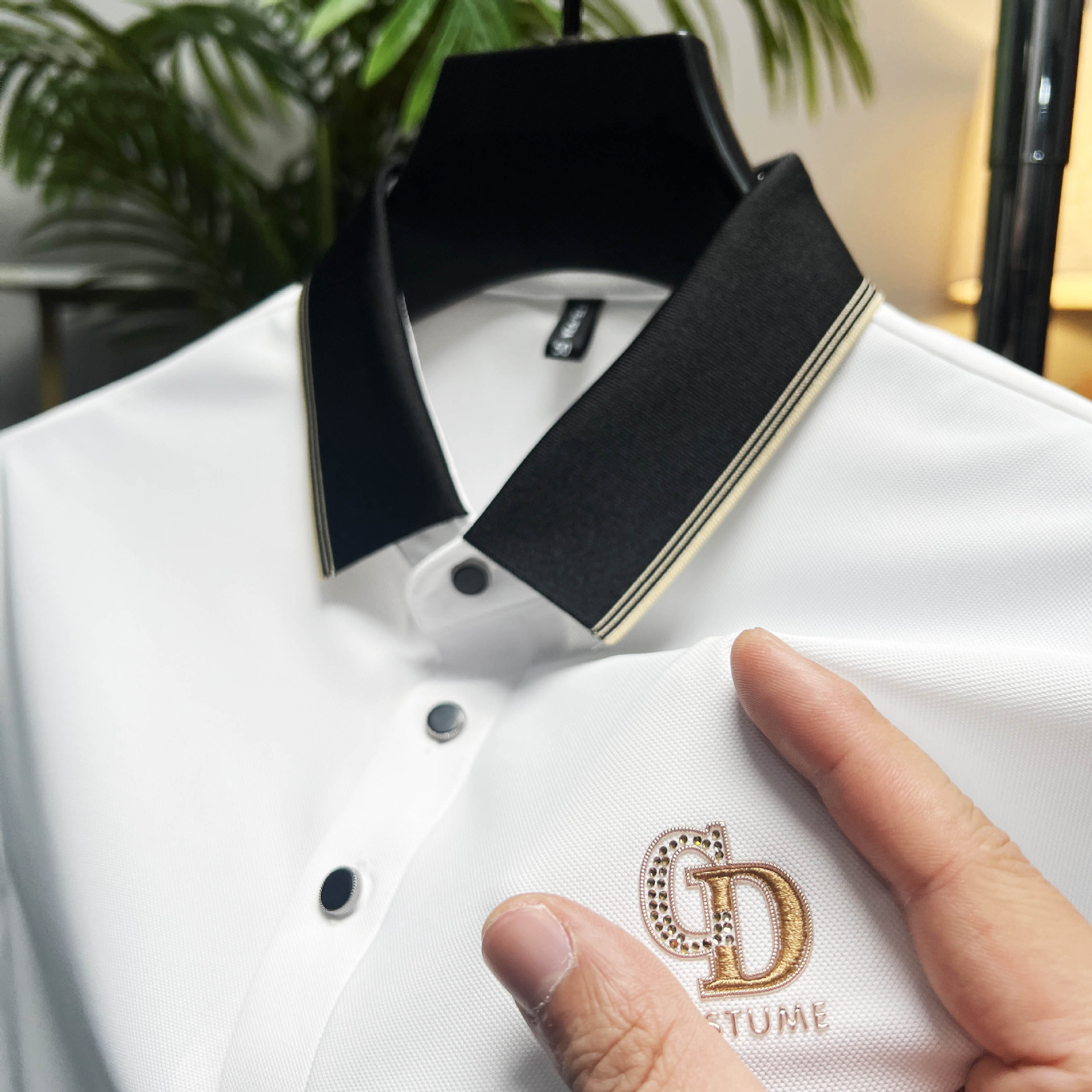 남자 아이스 실크 반팔 폴로 셔츠 2023 여름 새로운 도착 비즈니스 캐주얼 올 매치 티셔츠 남성용 화이트 옷깃 탑스토어 가기