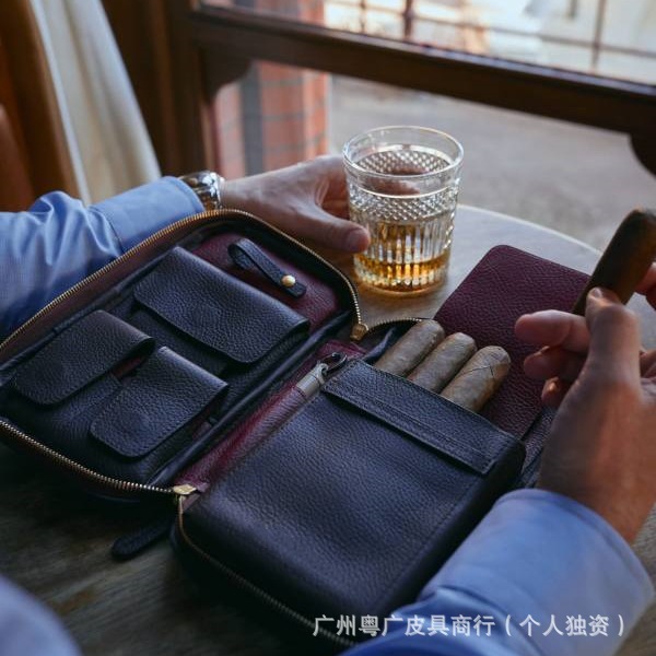 유럽과 미국의 새로운 색상 매칭 질감 남성 시가 가방 정품 가죽 휴대용 비즈니스 시가 모이스처 라이저 여행 시가 상자