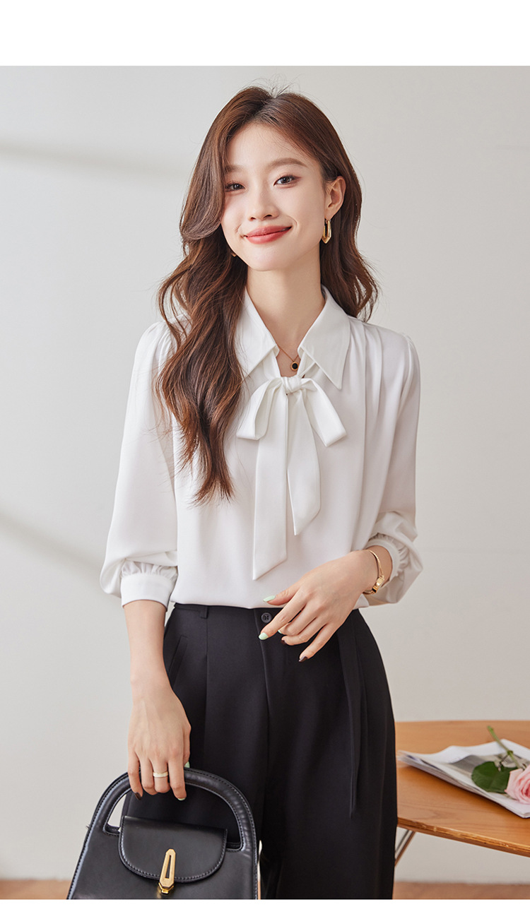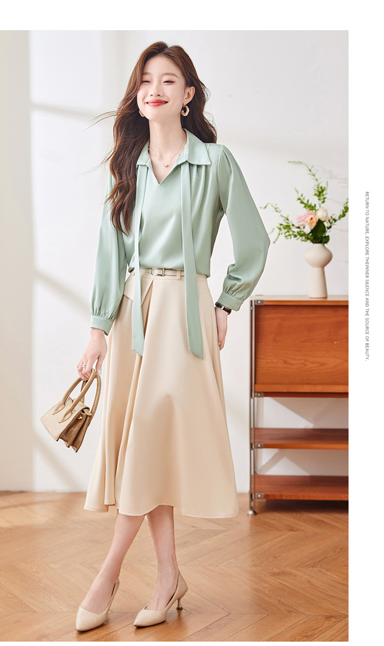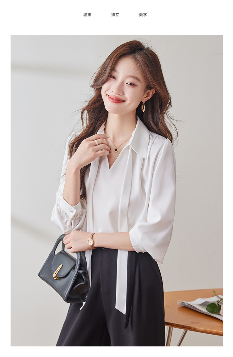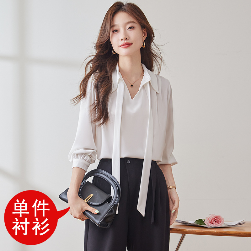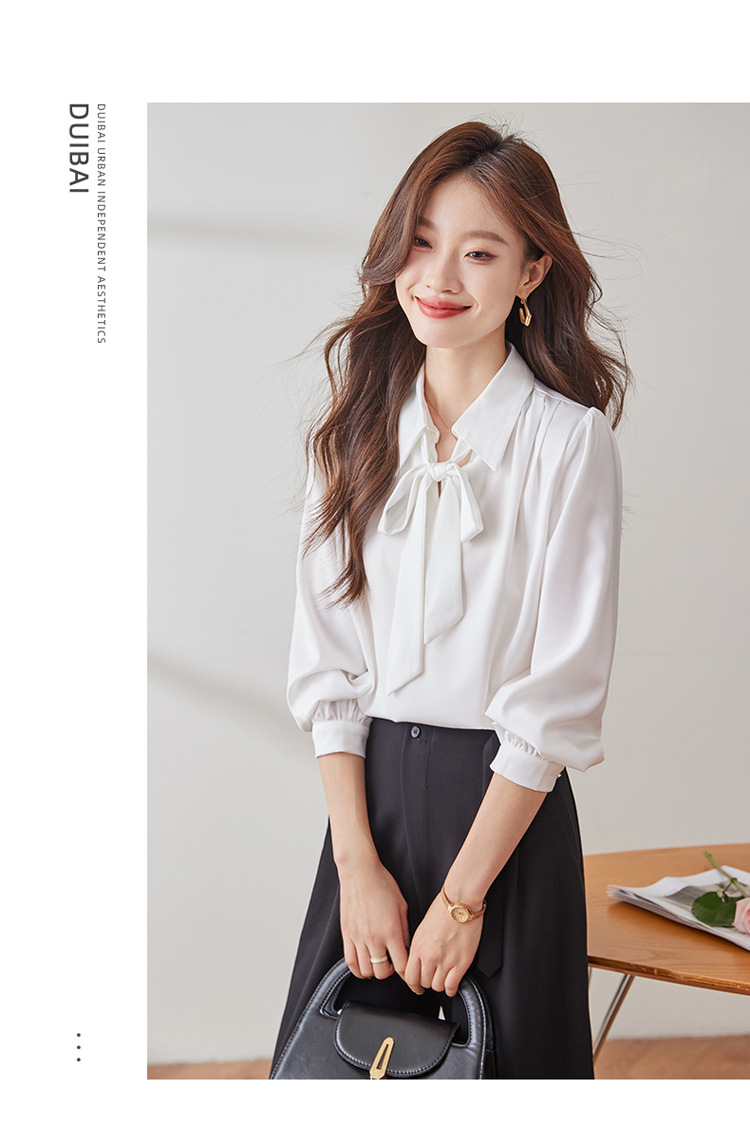 2025 가을 신상 패셔너블하고 우아한 리본 디자인의 독특한 긴팔 새틴 드레이프 여성용 아름다운 상의스토어 가기