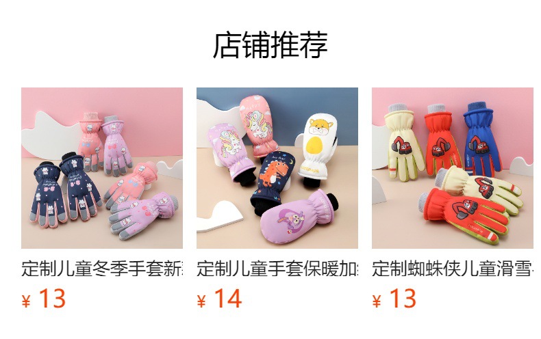 어린이 겨울 장갑 새로운 야외 방수 방풍 기모 두꺼운 따뜻한 만화 남녀 스키 장갑 도매스토어 가기