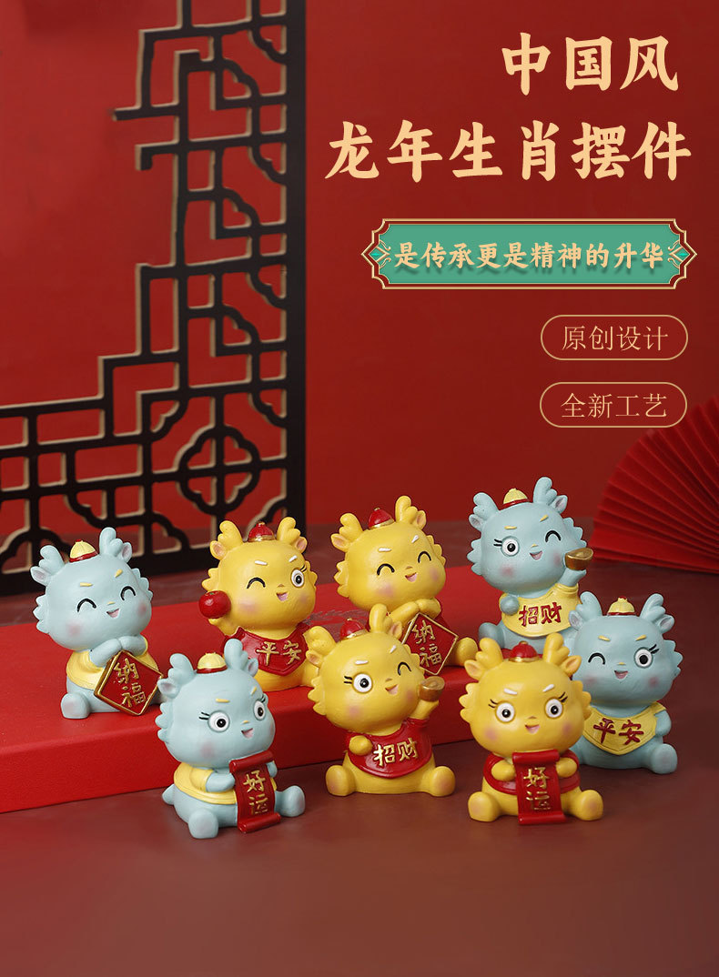 용의 해 중국 스타일 귀여운 드래곤 홈 장식품 유행 놀이 인형 손 사무실 데스크탑 장식 새해 선물스토어 가기