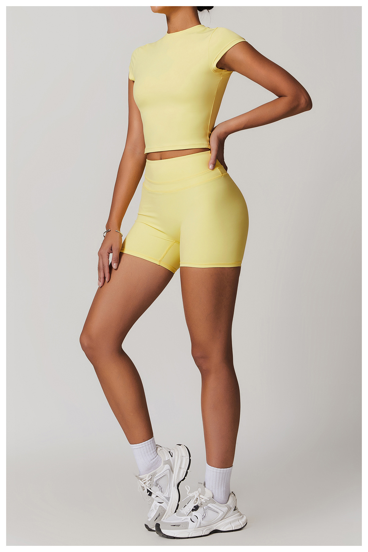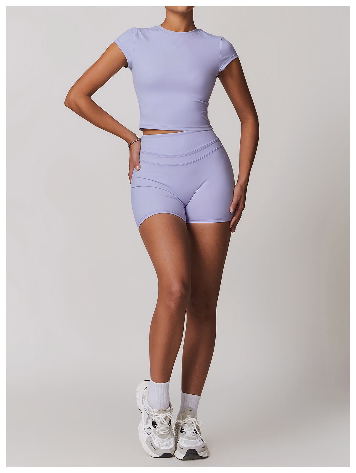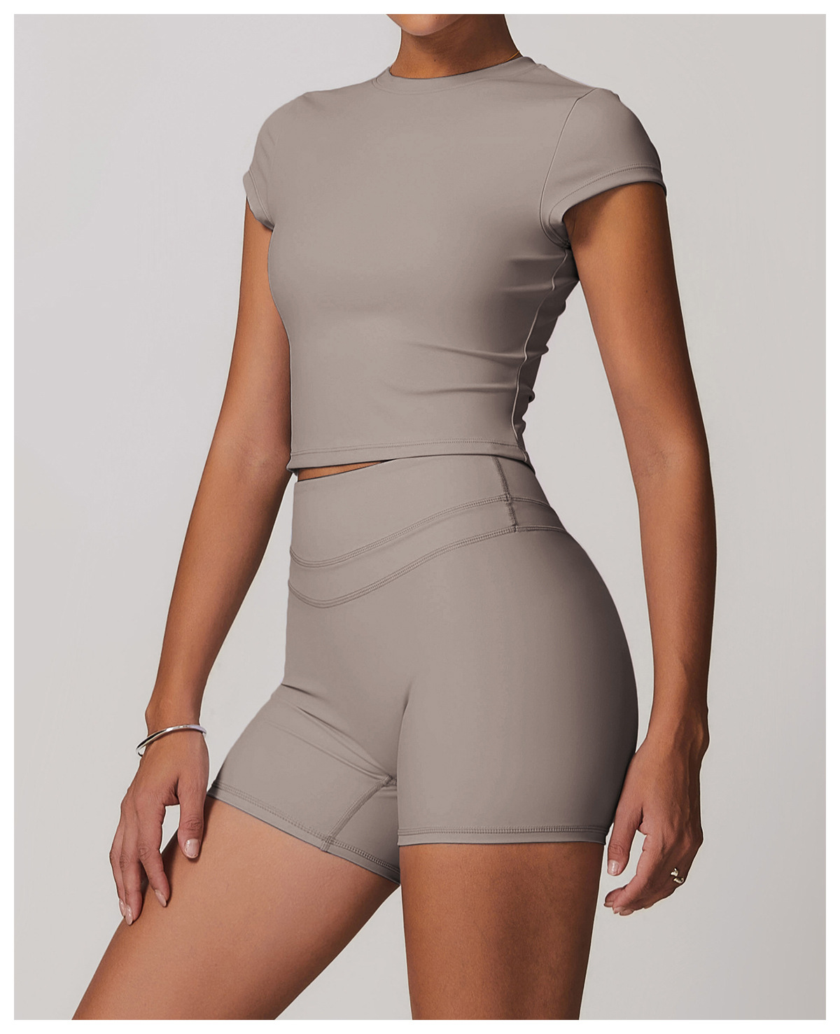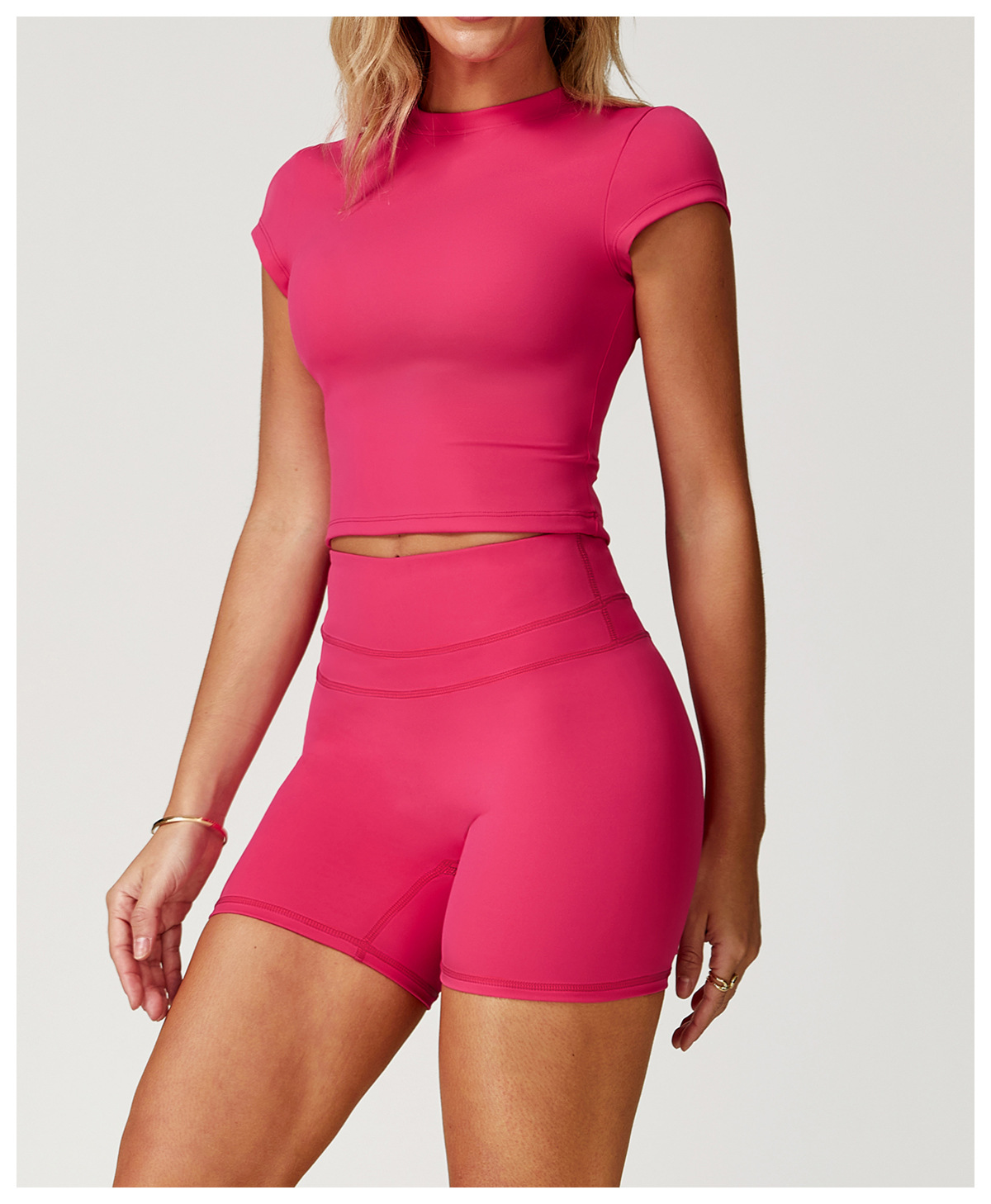 Zechuang 유럽과 미국의 스포츠 요가 의류 여성용 스크럽 타이트 백 요가 짧은 소매 러닝 피트니스 티셔츠 탑 8863