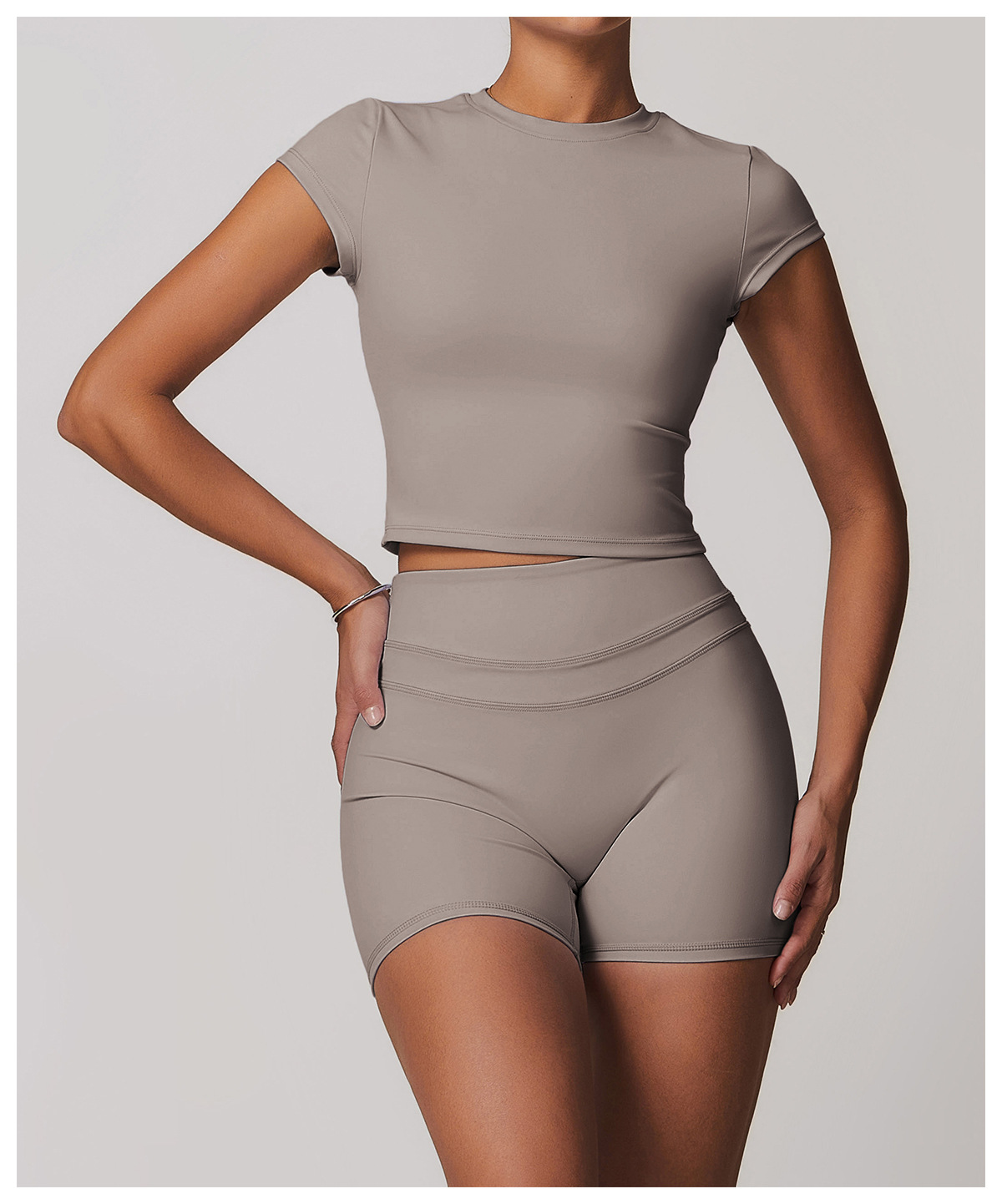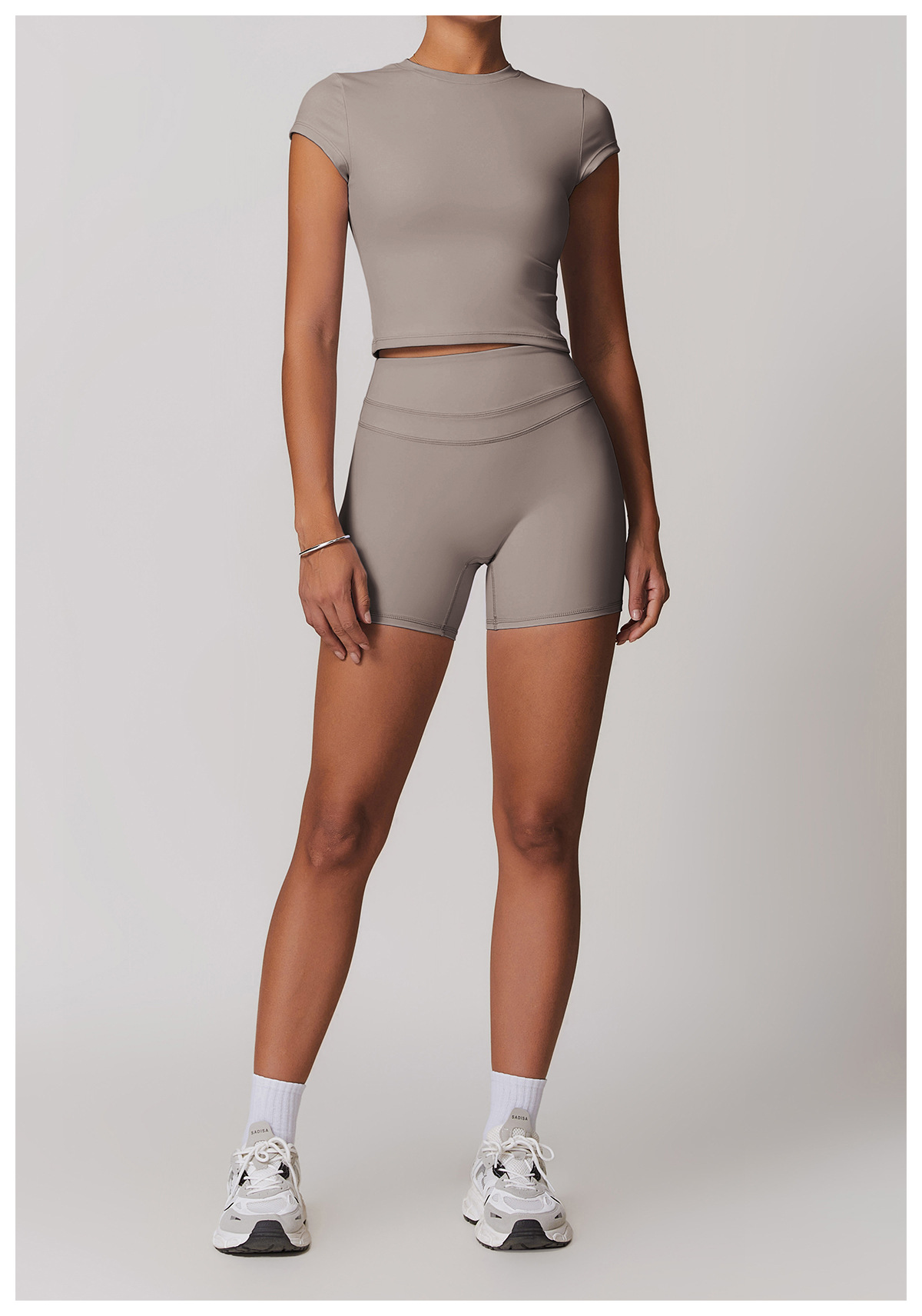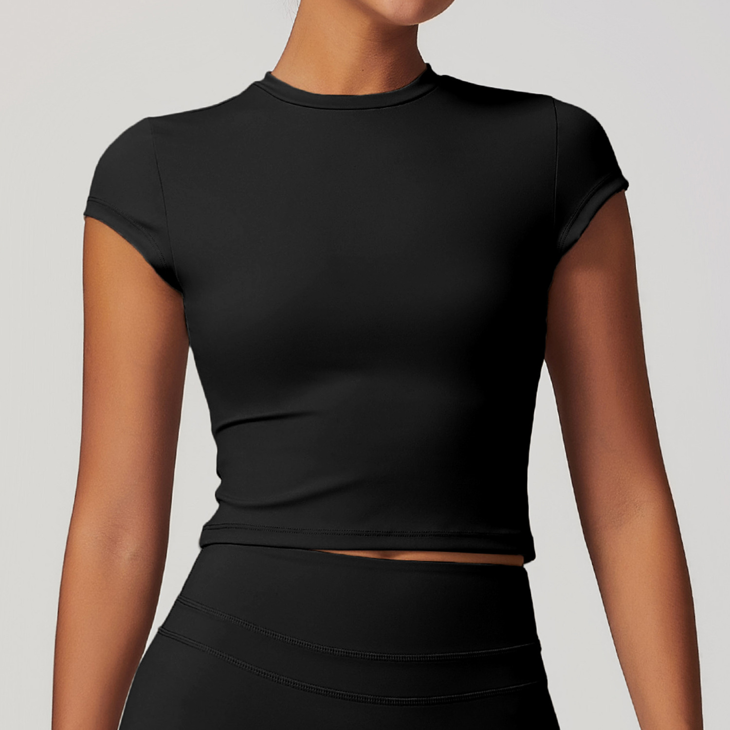 Zechuang 유럽과 미국의 스포츠 요가 의류 여성용 스크럽 타이트 백 요가 짧은 소매 러닝 피트니스 티셔츠 탑 8863