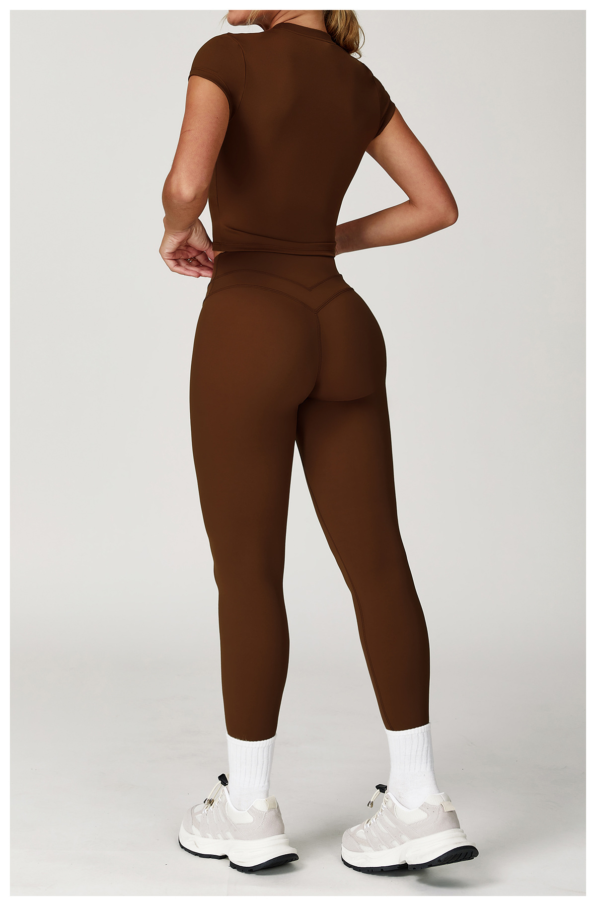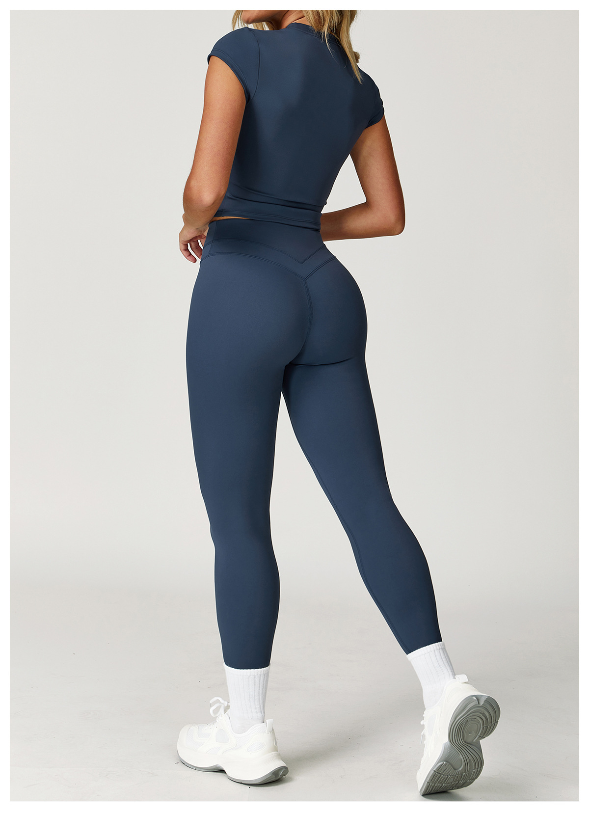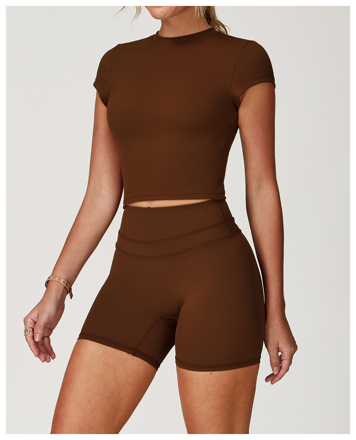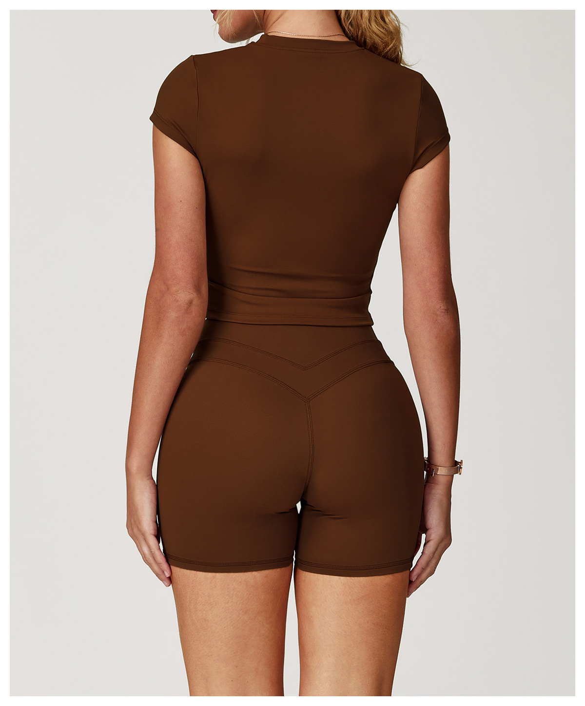 Zechuang 유럽과 미국의 스포츠 요가 의류 여성용 스크럽 타이트 백 요가 짧은 소매 러닝 피트니스 티셔츠 탑 8863