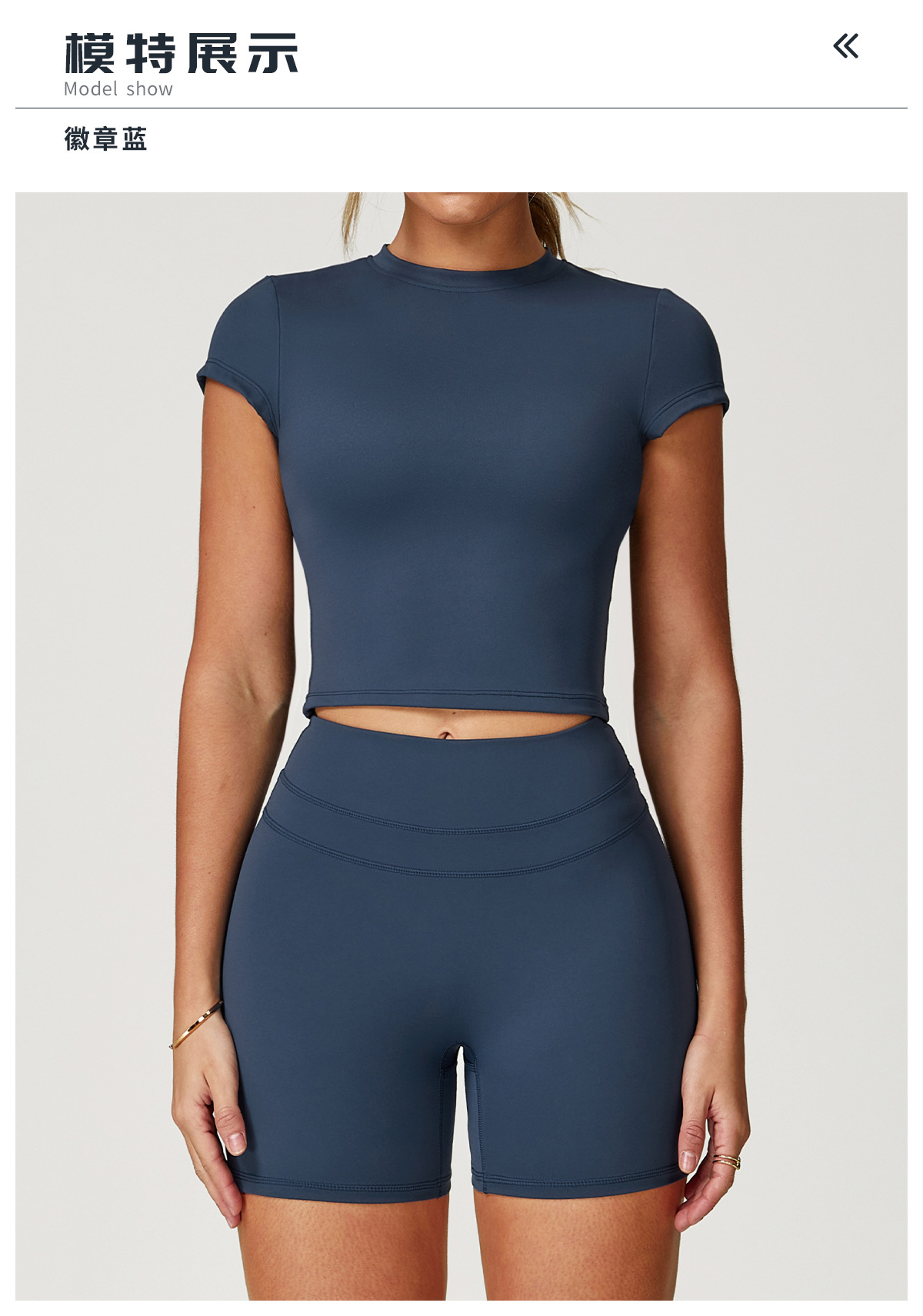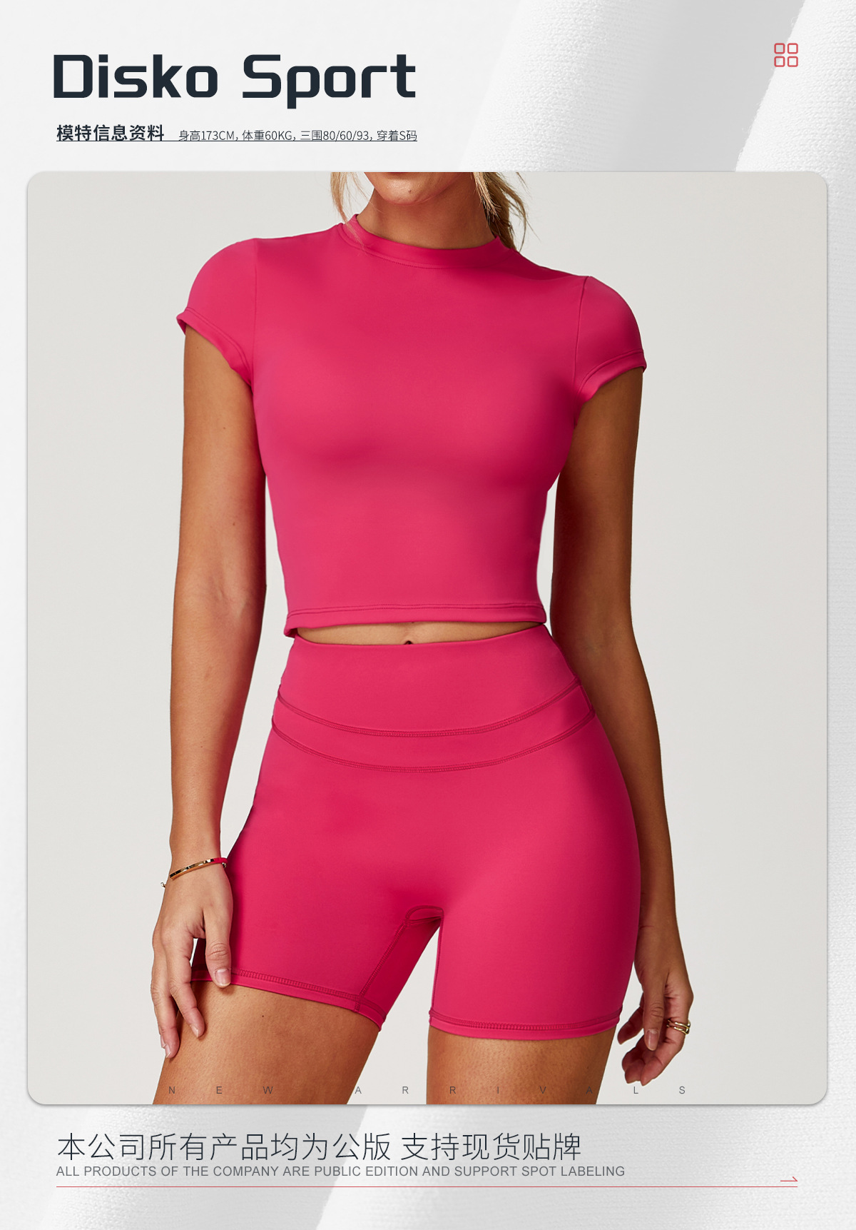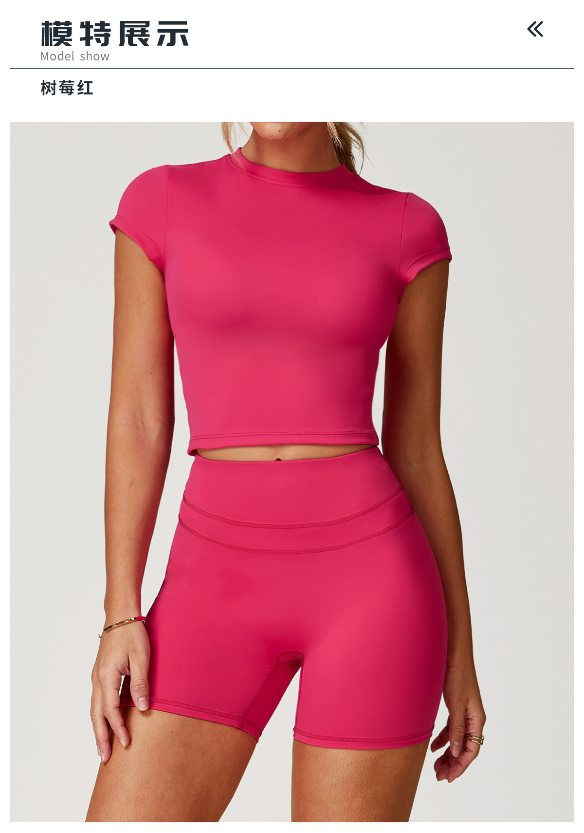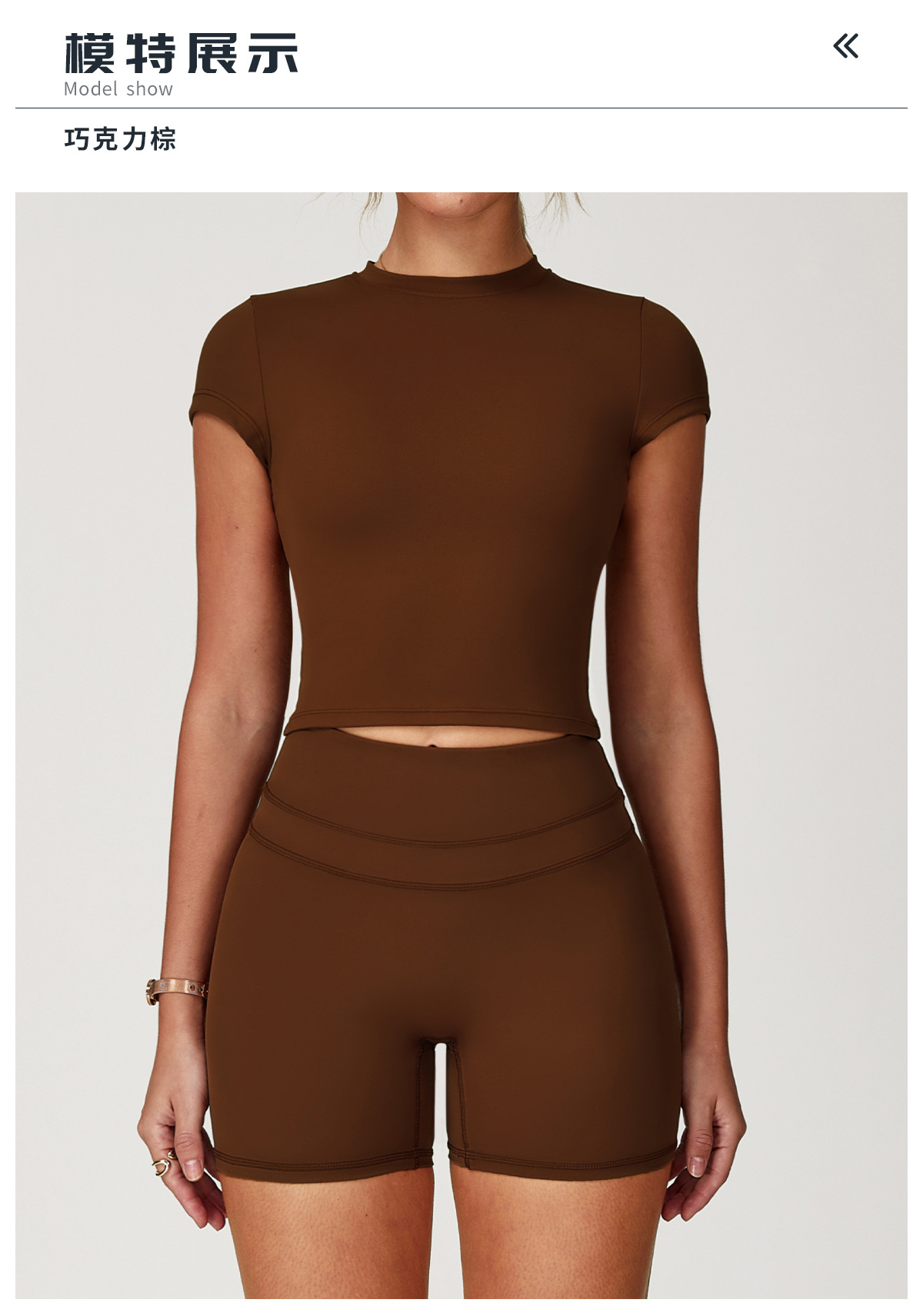 Zechuang 유럽과 미국의 스포츠 요가 의류 여성용 스크럽 타이트 백 요가 짧은 소매 러닝 피트니스 티셔츠 탑 8863스토어 가기