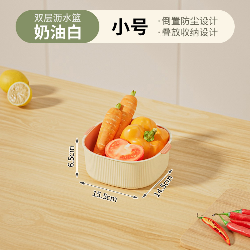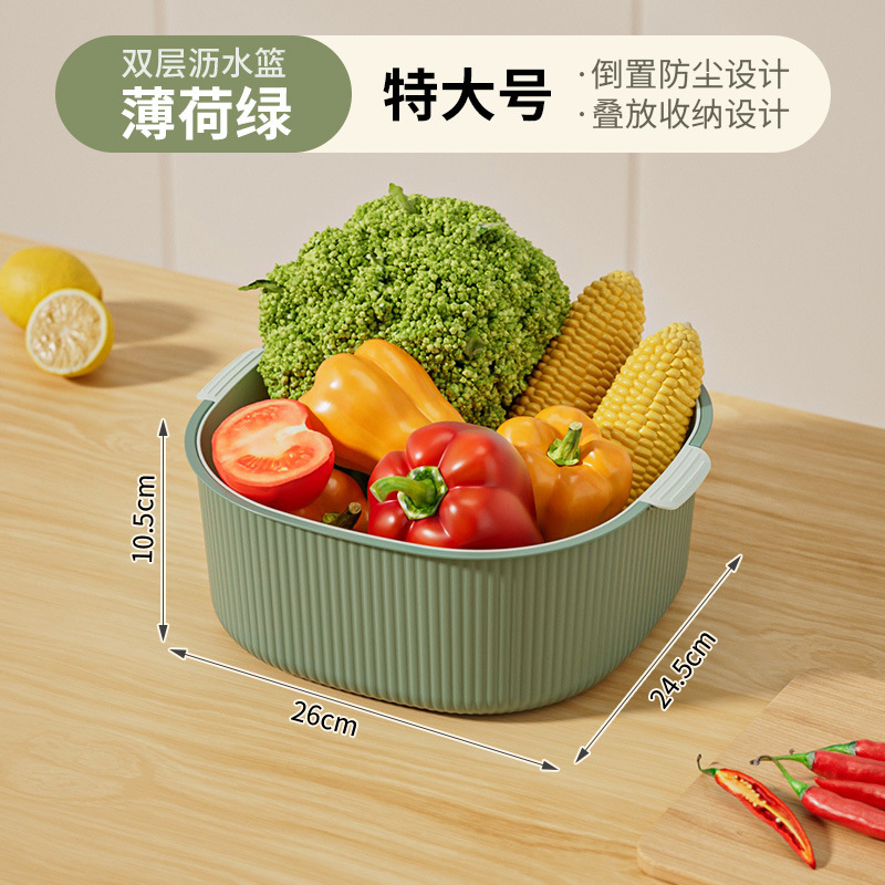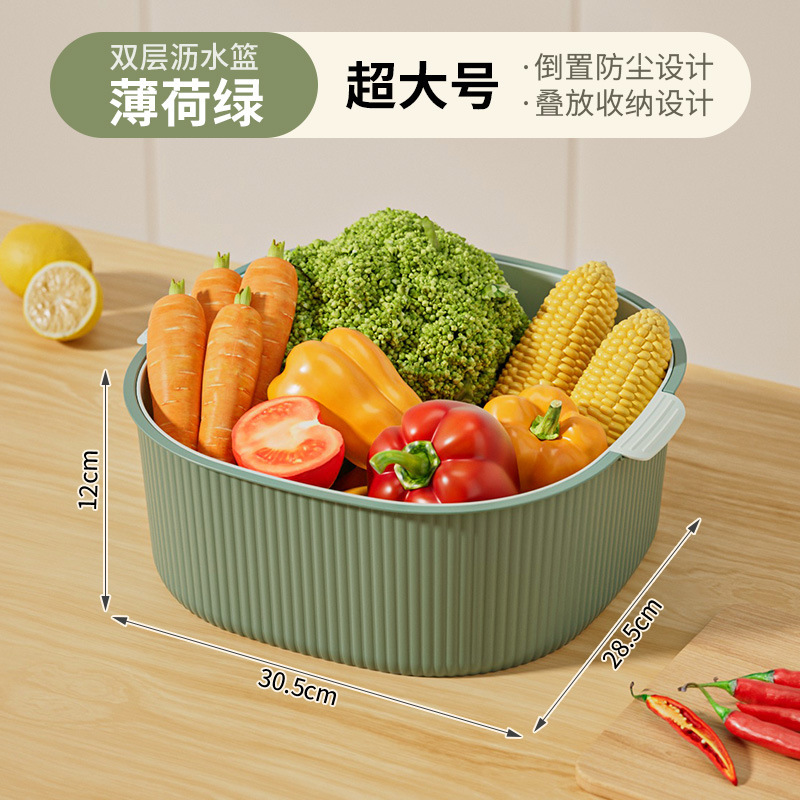 2 층 야채 세척 분지 배수 바구니 주방 대형 라운드 야채 세척 바구니 가정용 쌀 세척 분지 채소 바구니 과일 세척 바구니
