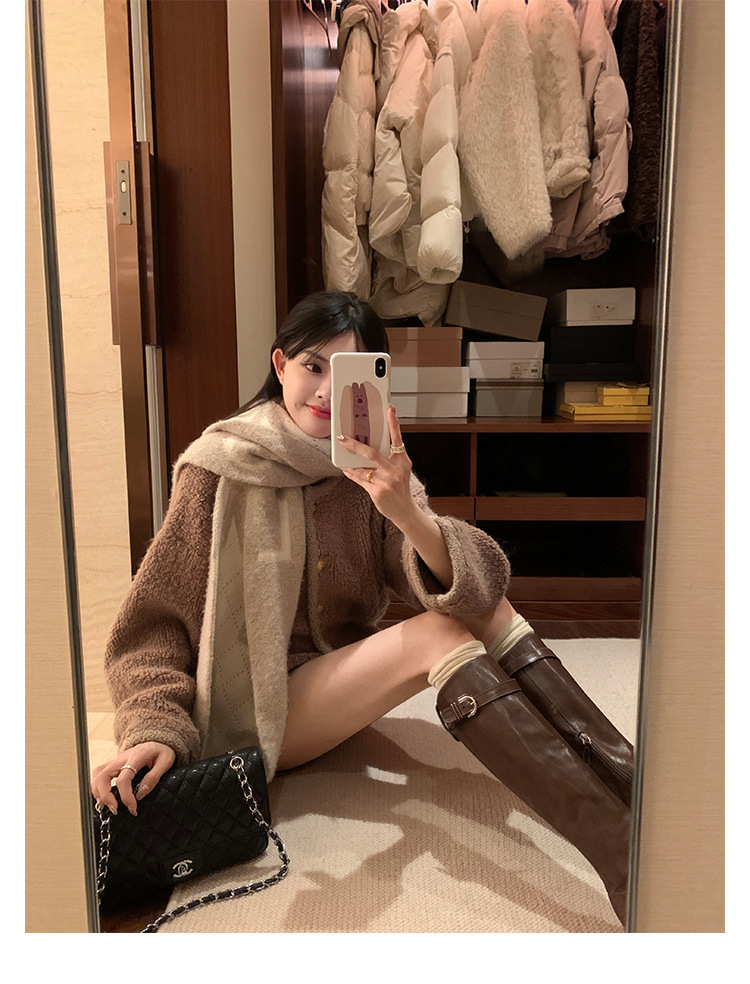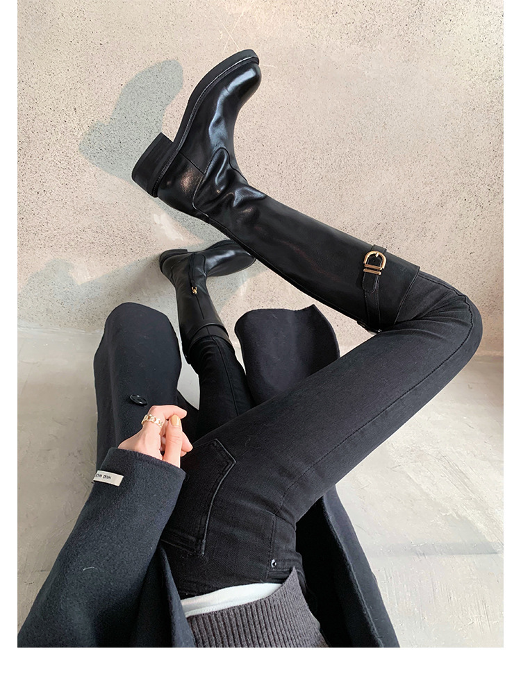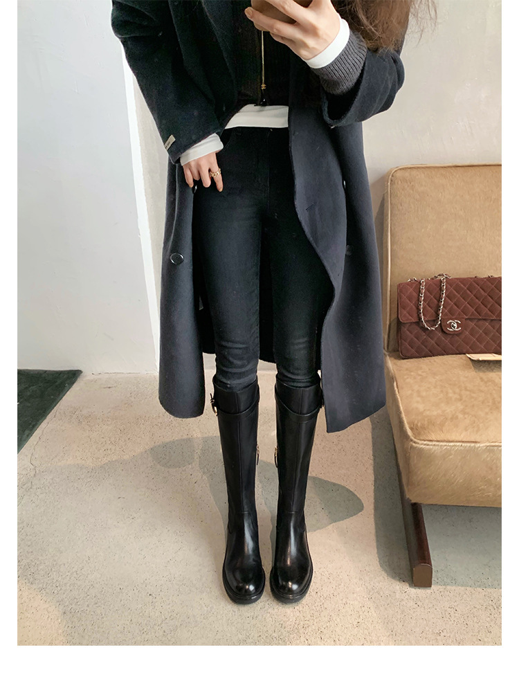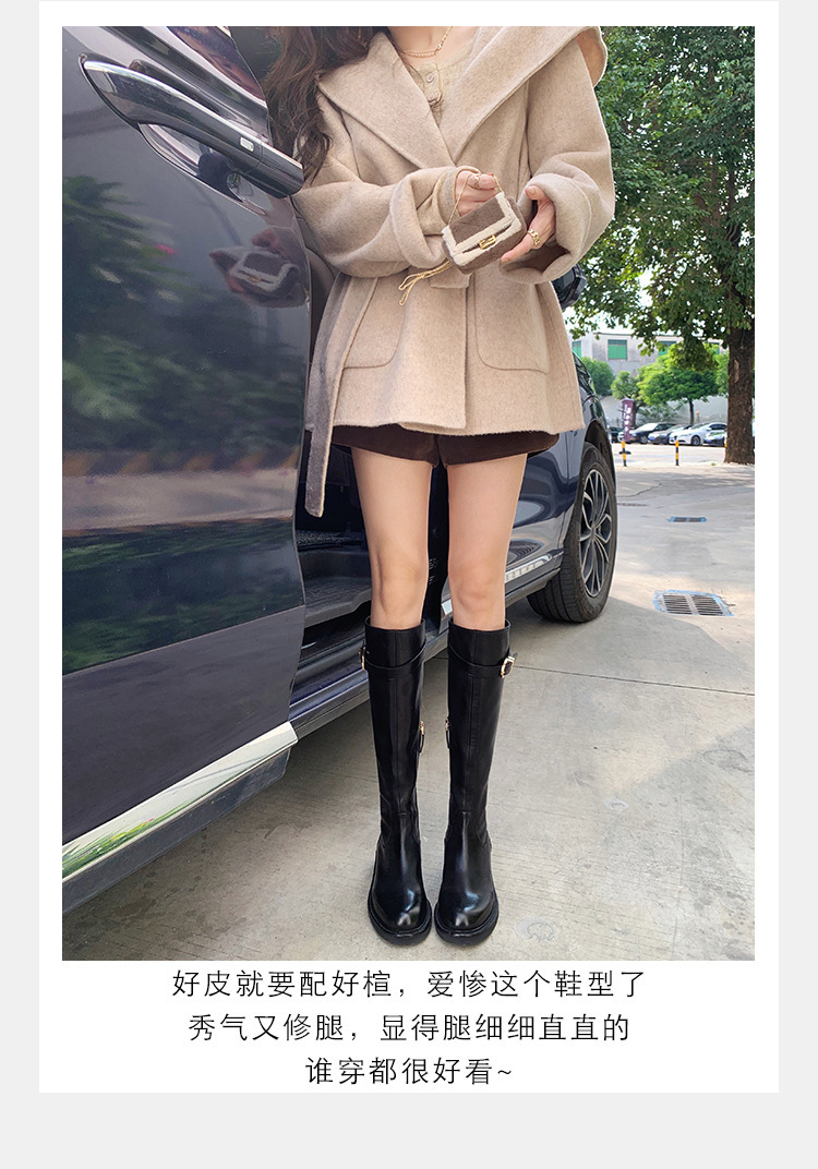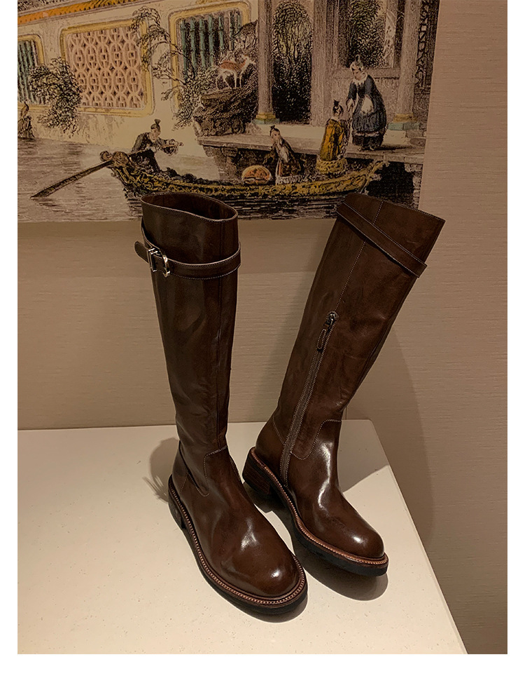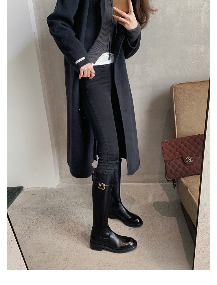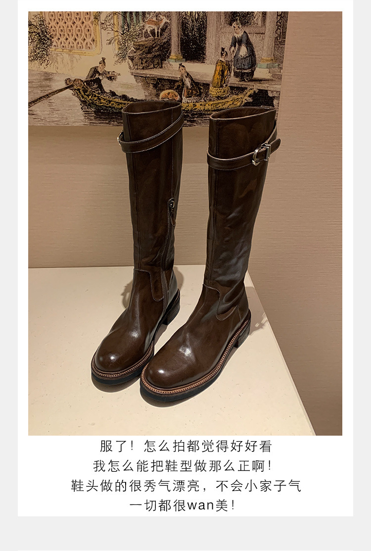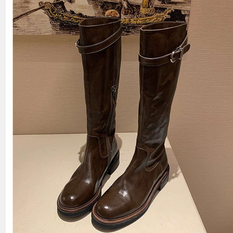 두꺼운 밑창 가을과 겨울 높은 부츠 말레 스킨 나이트 부츠 여성의 둥근 머리 세척 긴 튜브 새로운 여성 벨트 버클 포도 엄마 두꺼운 발 뒤꿈치스토어 가기