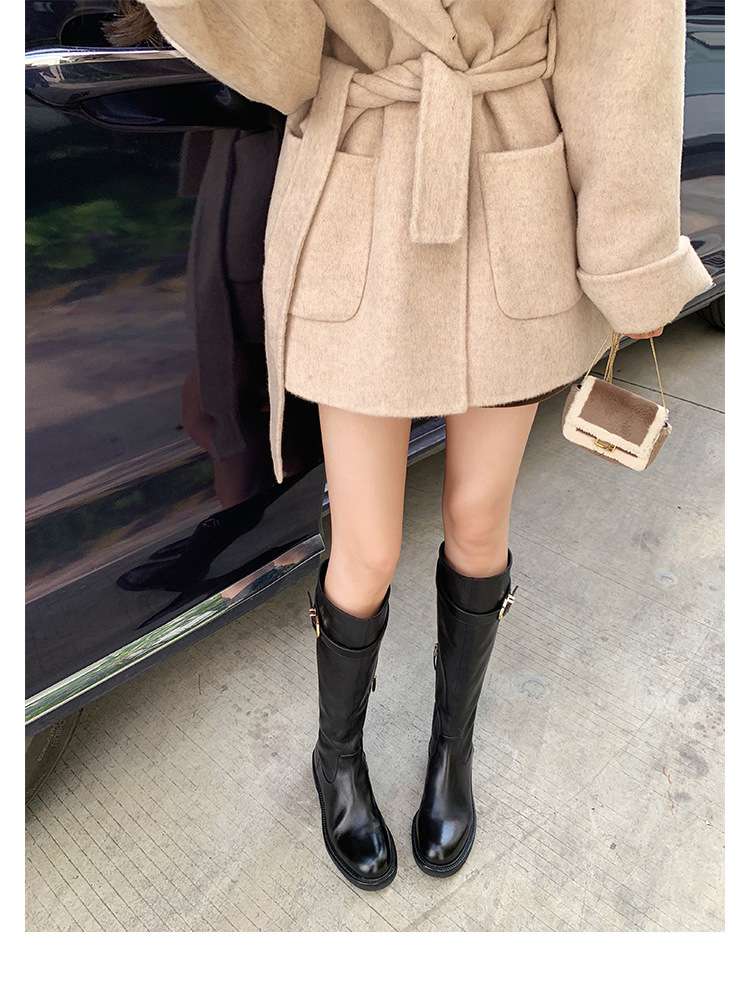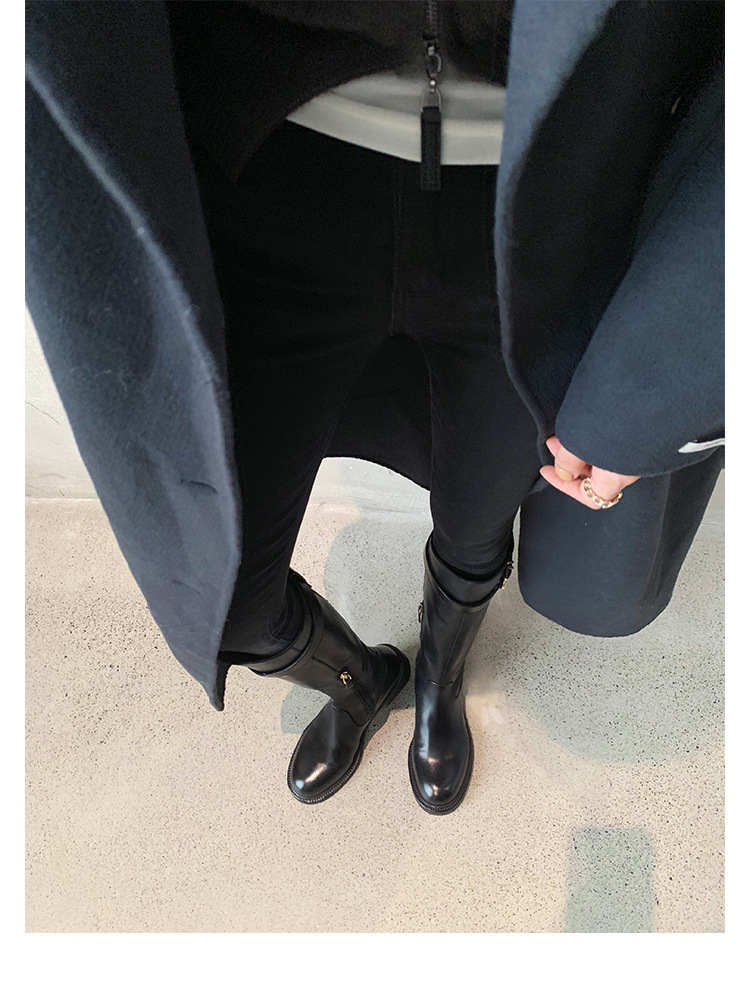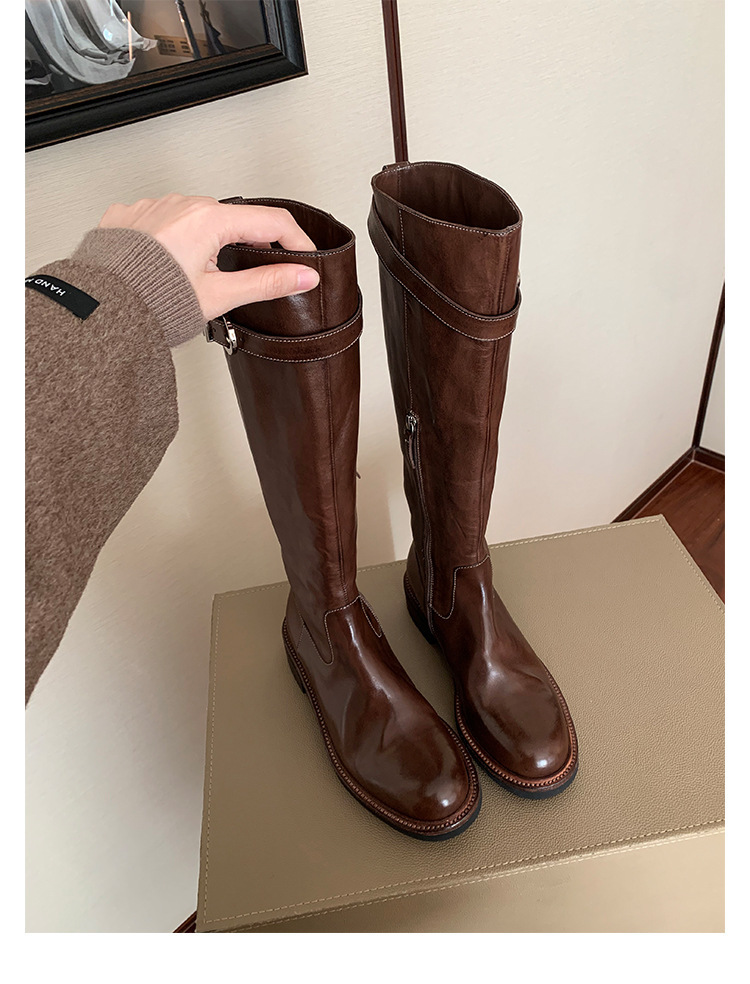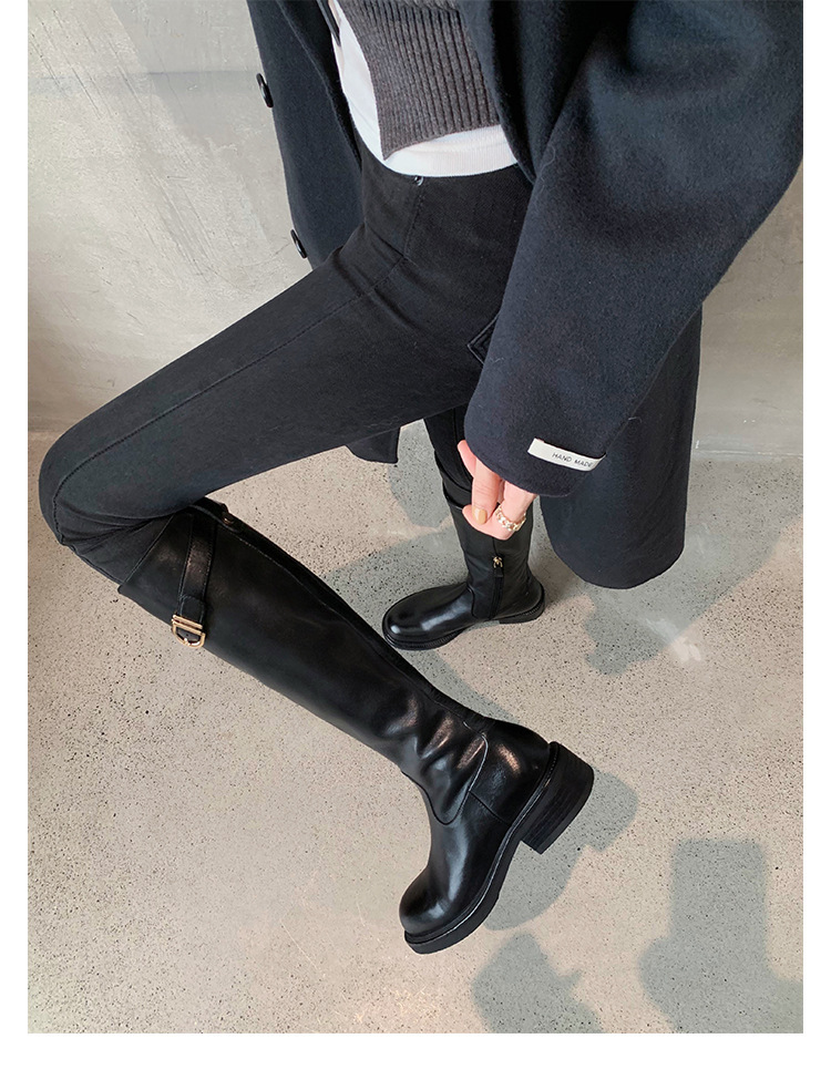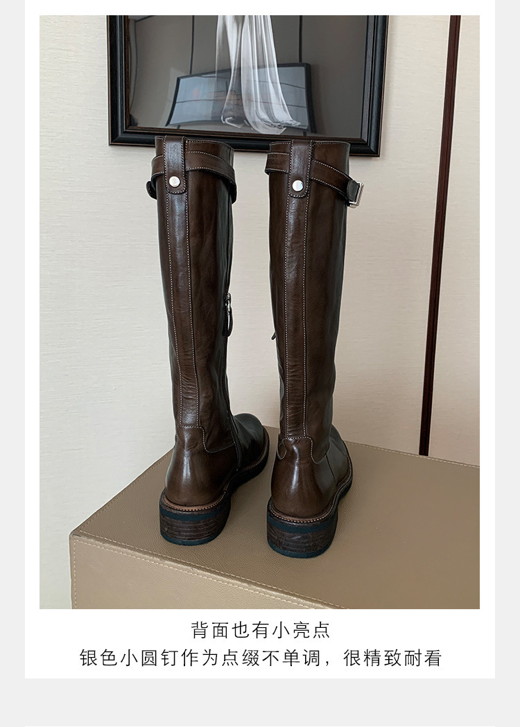 두꺼운 밑창 가을과 겨울 높은 부츠 말레 스킨 나이트 부츠 여성의 둥근 머리 세척 긴 튜브 새로운 여성 벨트 버클 포도 엄마 두꺼운 발 뒤꿈치