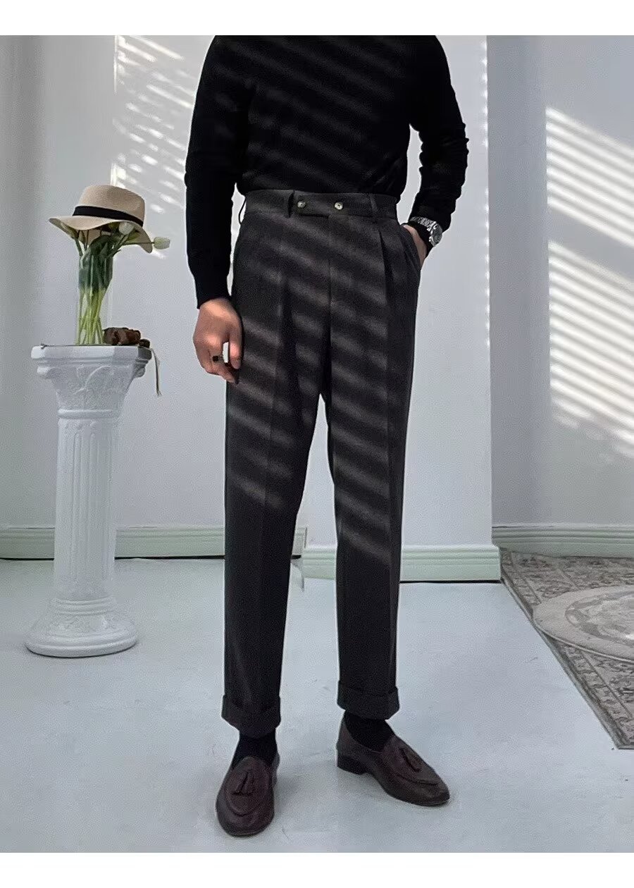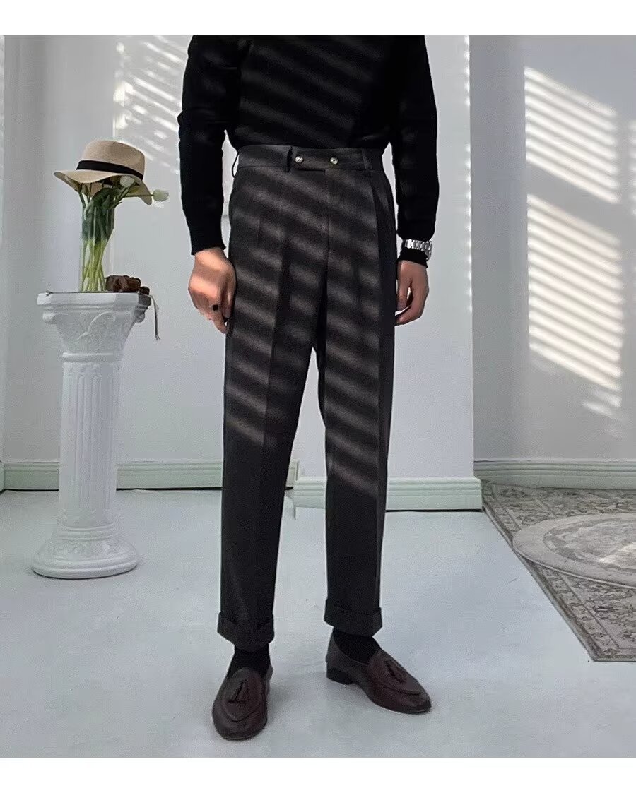 British Retro Naples Hollywood Business High Waist Dapdown 캐주얼 바지 비 다림질 슬림 핏 바지 통근 남성