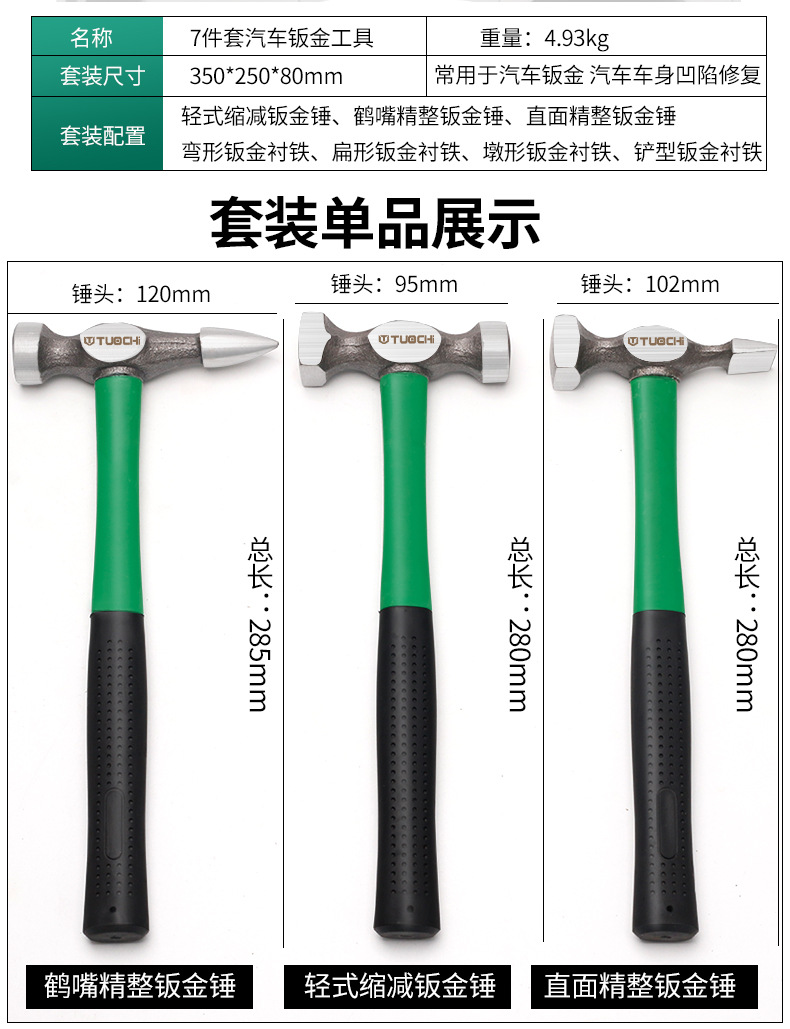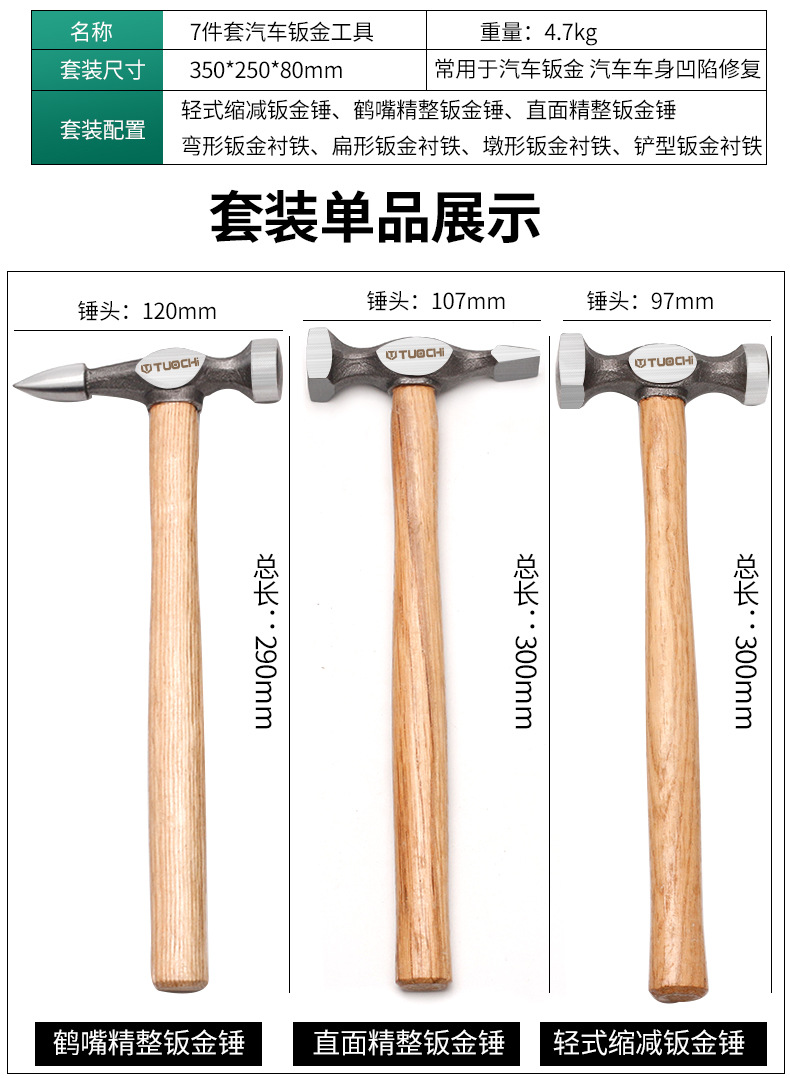 판금 망치 세트 자동차 시트 금속 망치 라이닝 철 심 철 다기능 자동차 시트 금속 오목한 표면 수리 시트 금속 도구스토어 가기