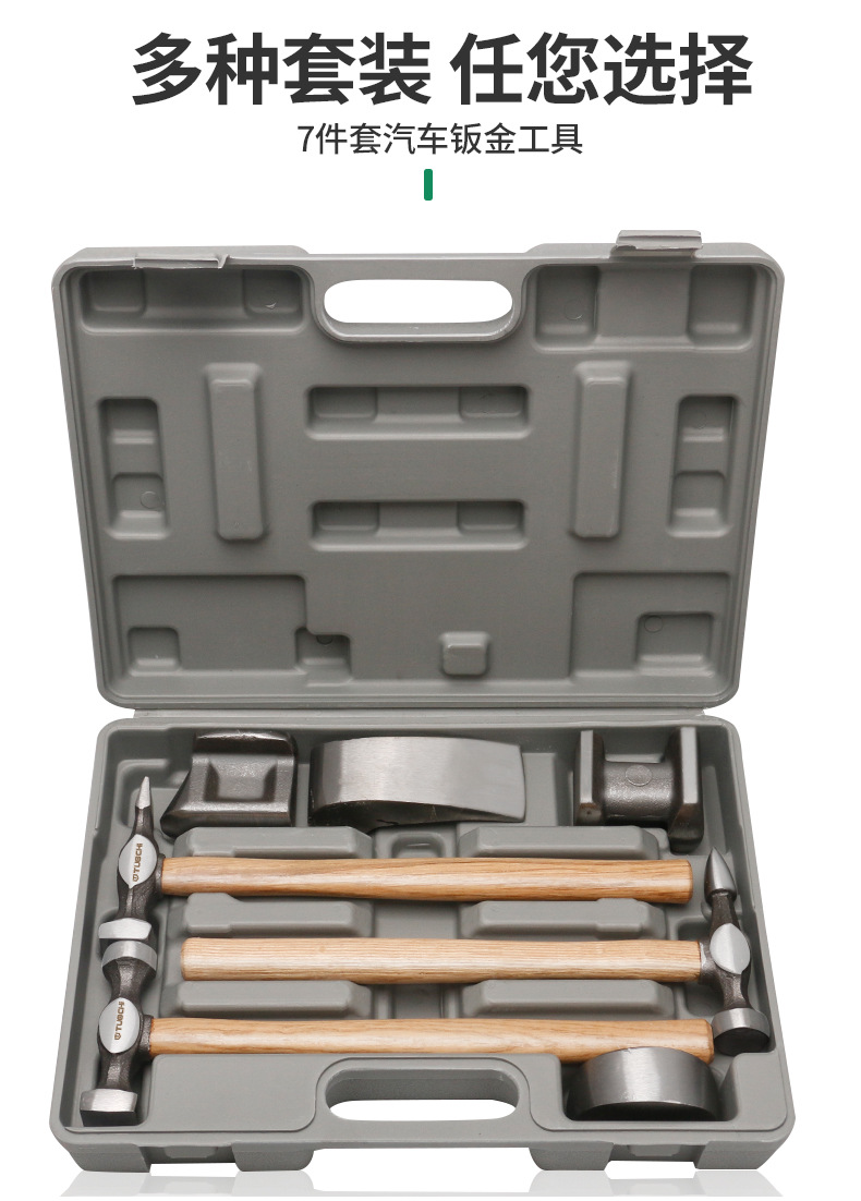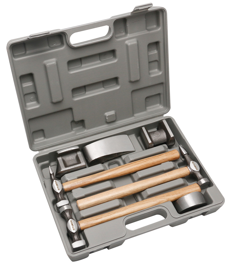 • (나무 손잡이) 7피스 판금 해머 그레이 박스 세트