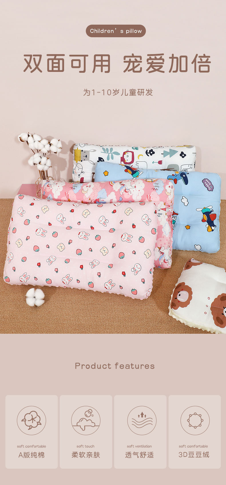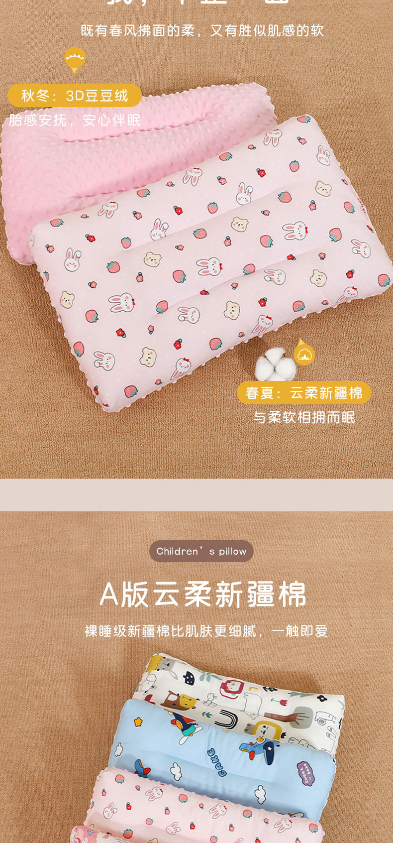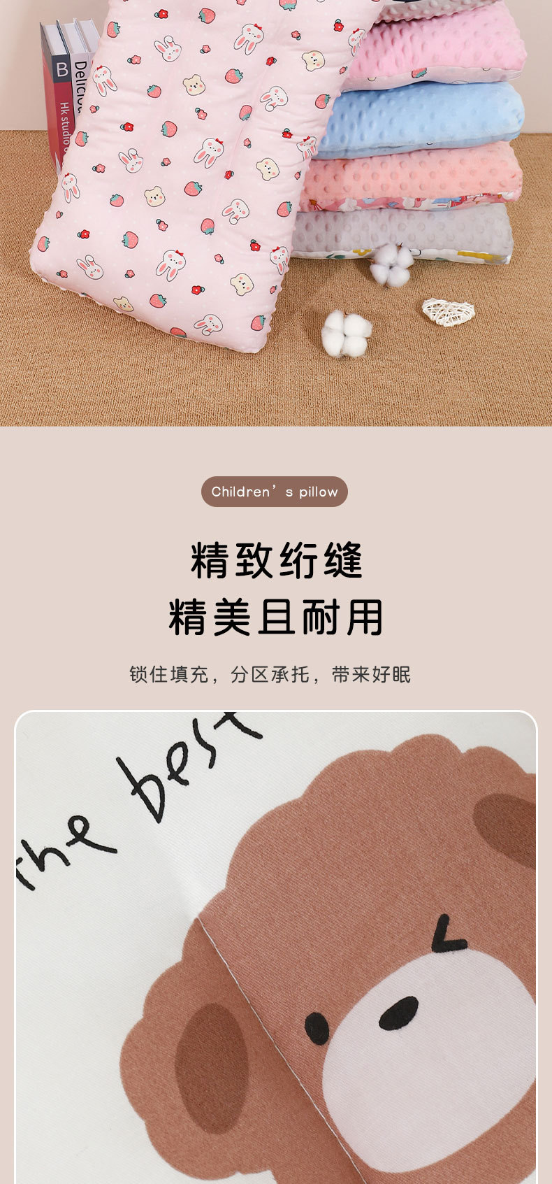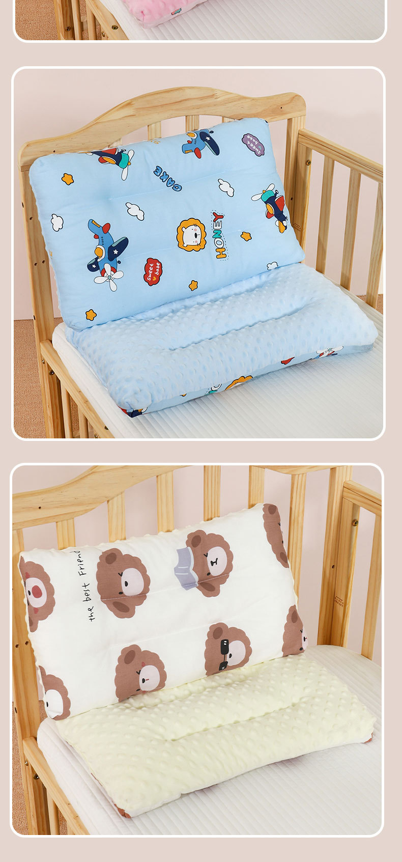 어린이 베개 클래스 통기성 땀 흡수 아기 베개 수건 완두콩 암밍 베개 학생 베개 만화 낮잠 베개 사계절