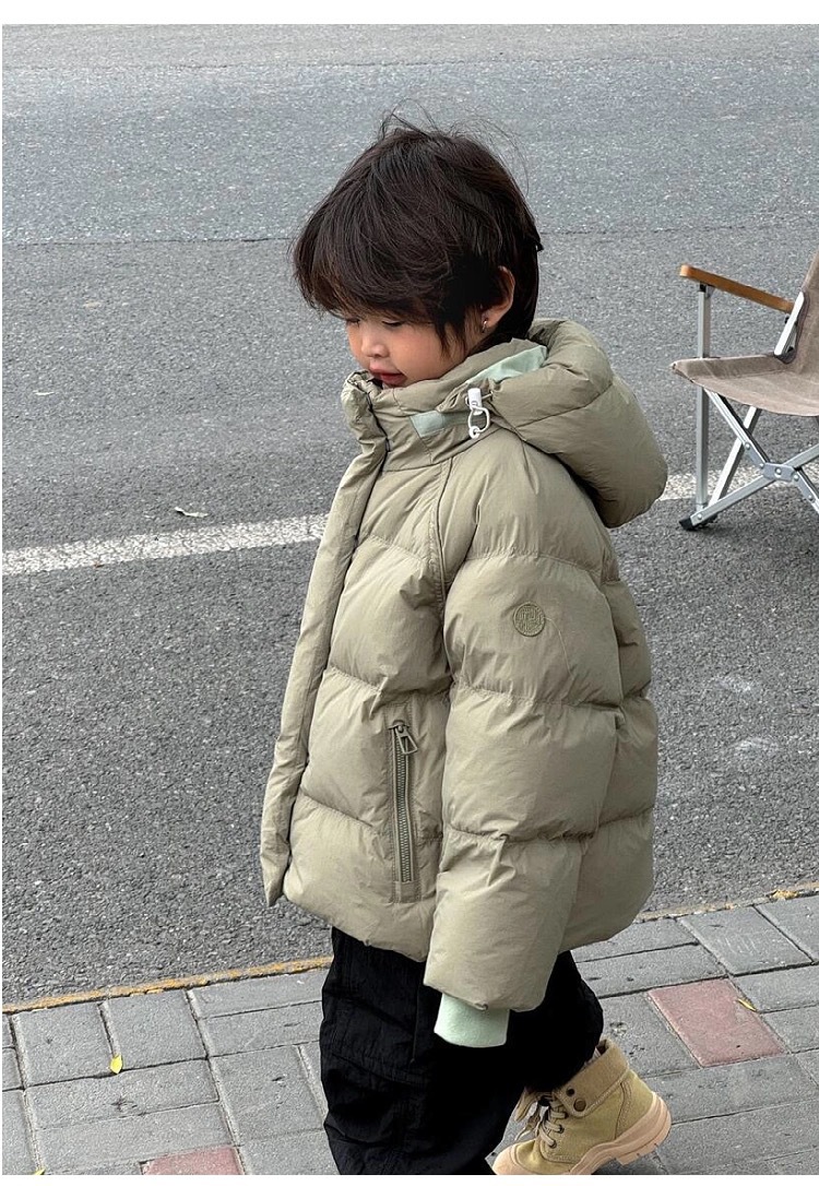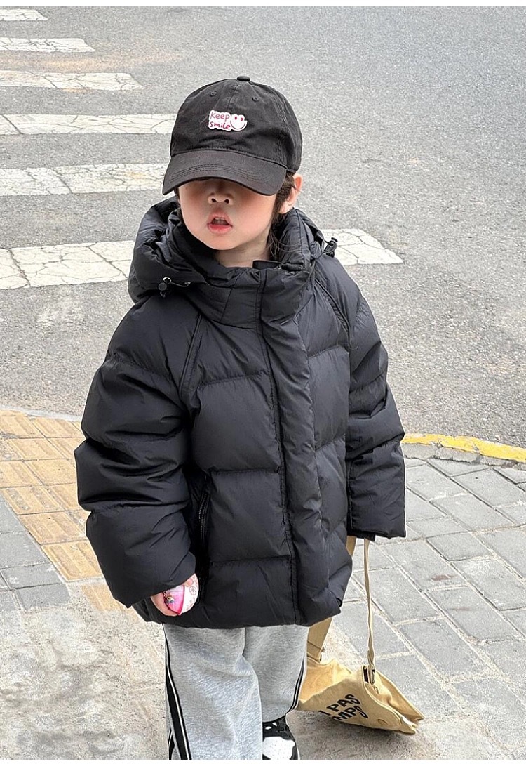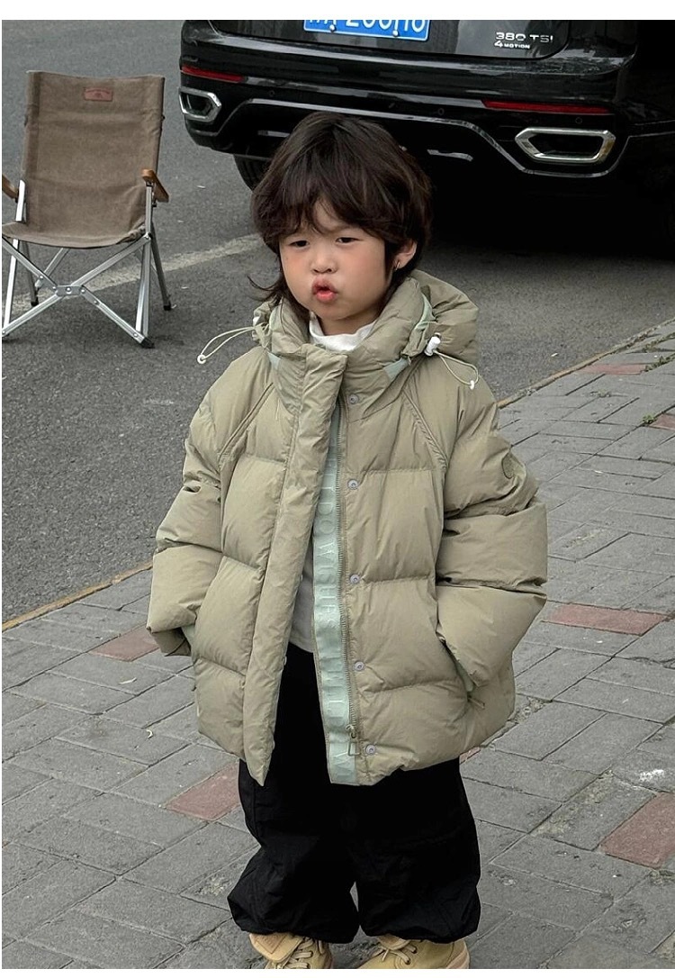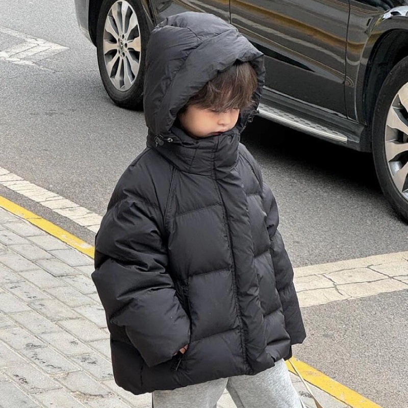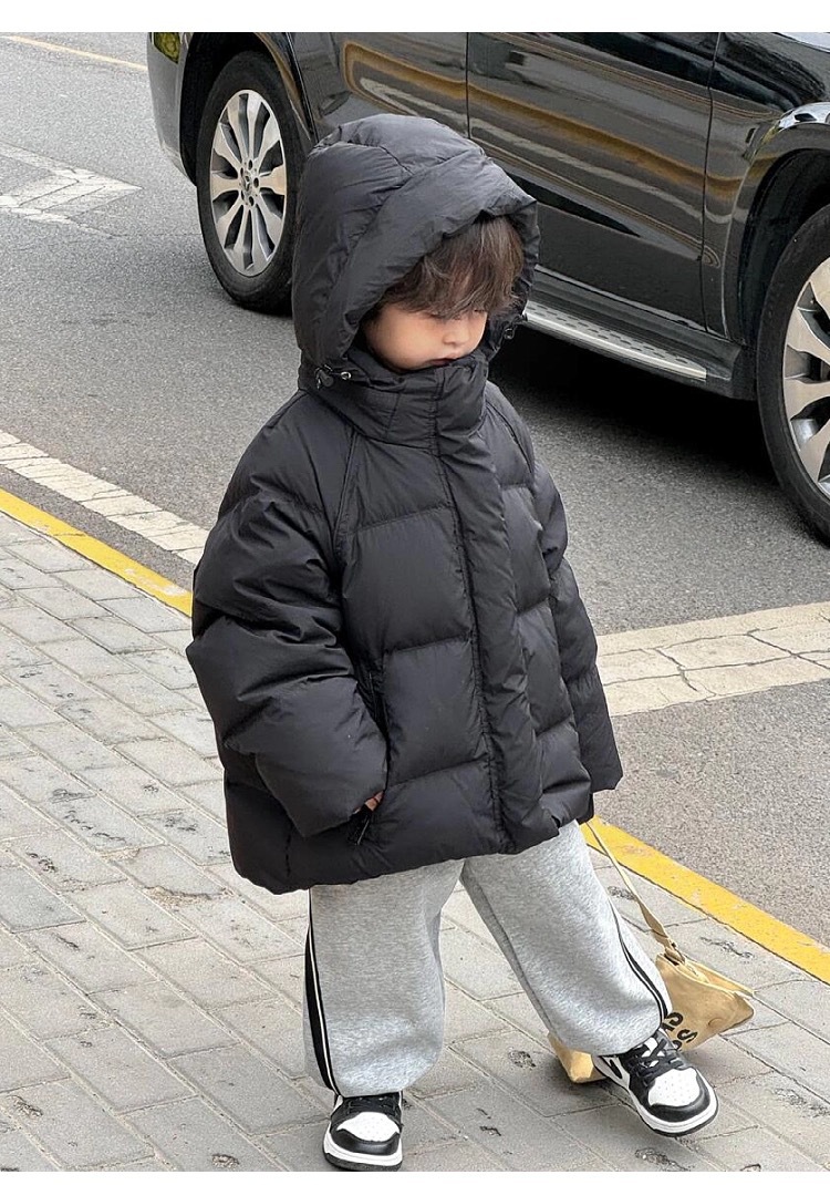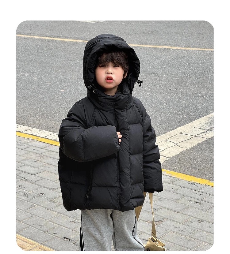 한국 여자 흰 오리 다운 재킷 따뜻한 2024 겨울 옷 어린이 후드 자켓 소년 짧은 두꺼운 옷스토어 가기
