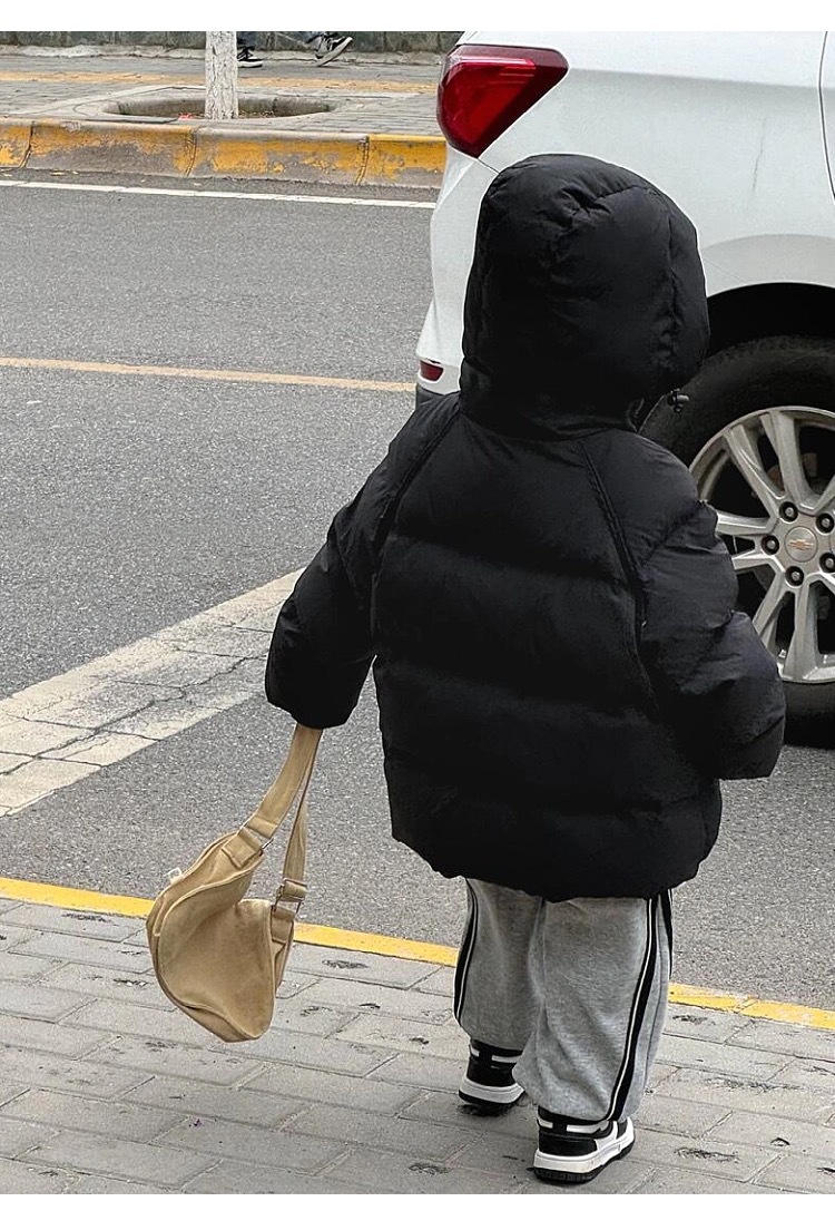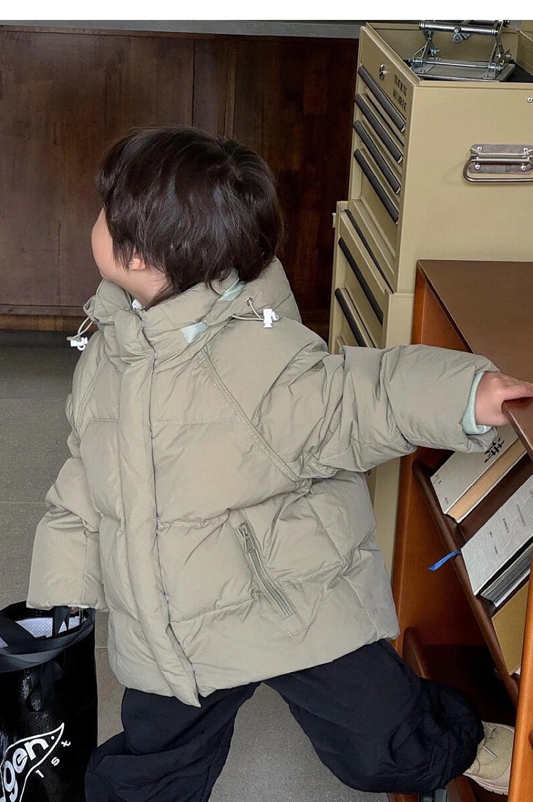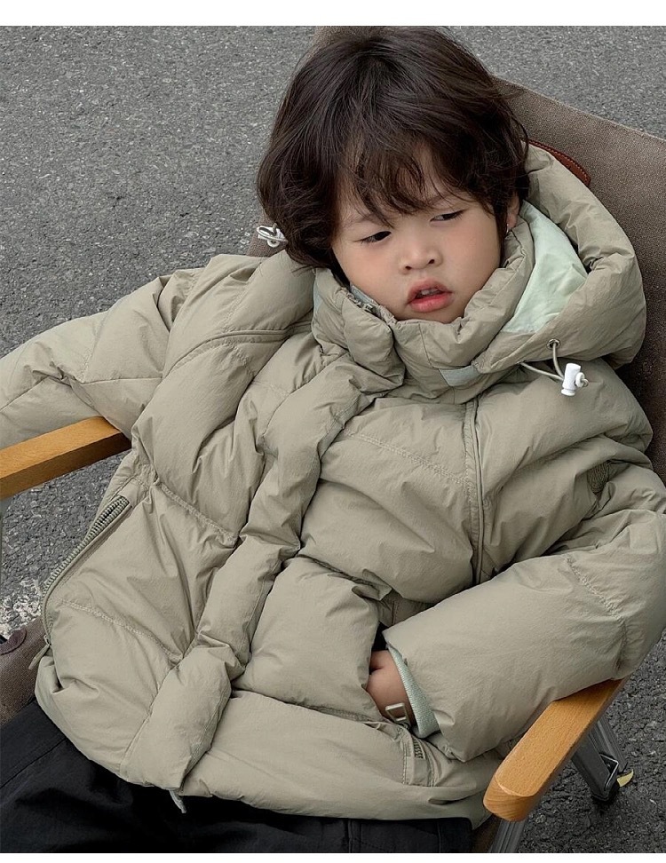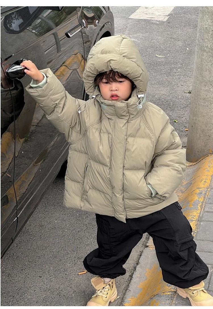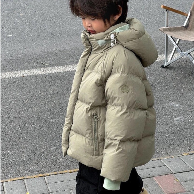 한국 여자 흰 오리 다운 재킷 따뜻한 2024 겨울 옷 어린이 후드 자켓 소년 짧은 두꺼운 옷스토어 가기