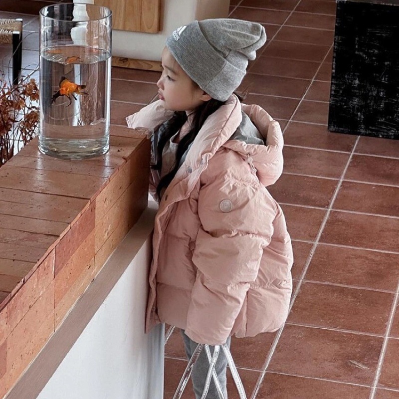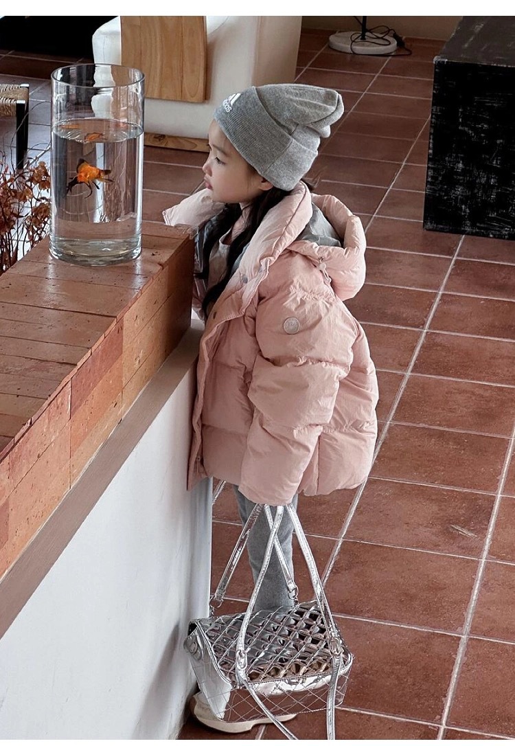 한국 여자 흰 오리 다운 재킷 따뜻한 2024 겨울 옷 어린이 후드 자켓 소년 짧은 두꺼운 옷
