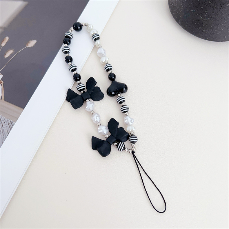 비행 나비 나비 보석 새로운 흑백 휴대 전화 체인 구슬 휴대 전화 끈 사랑 상자 활 휴대 전화 쉘 교수형 체인스토어 가기