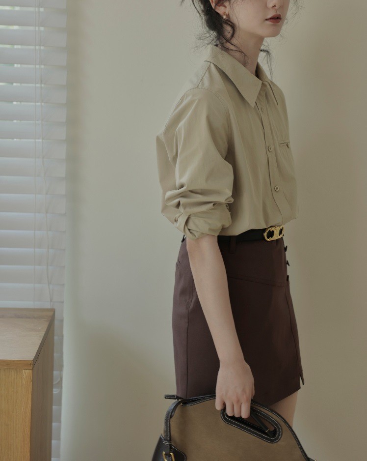 Sologther 고밀도 순수 코튼 캐주얼 긴팔 셔츠 2025 봄, 가을 여성을위한 새로운 느슨한 기질 셔츠스토어 가기