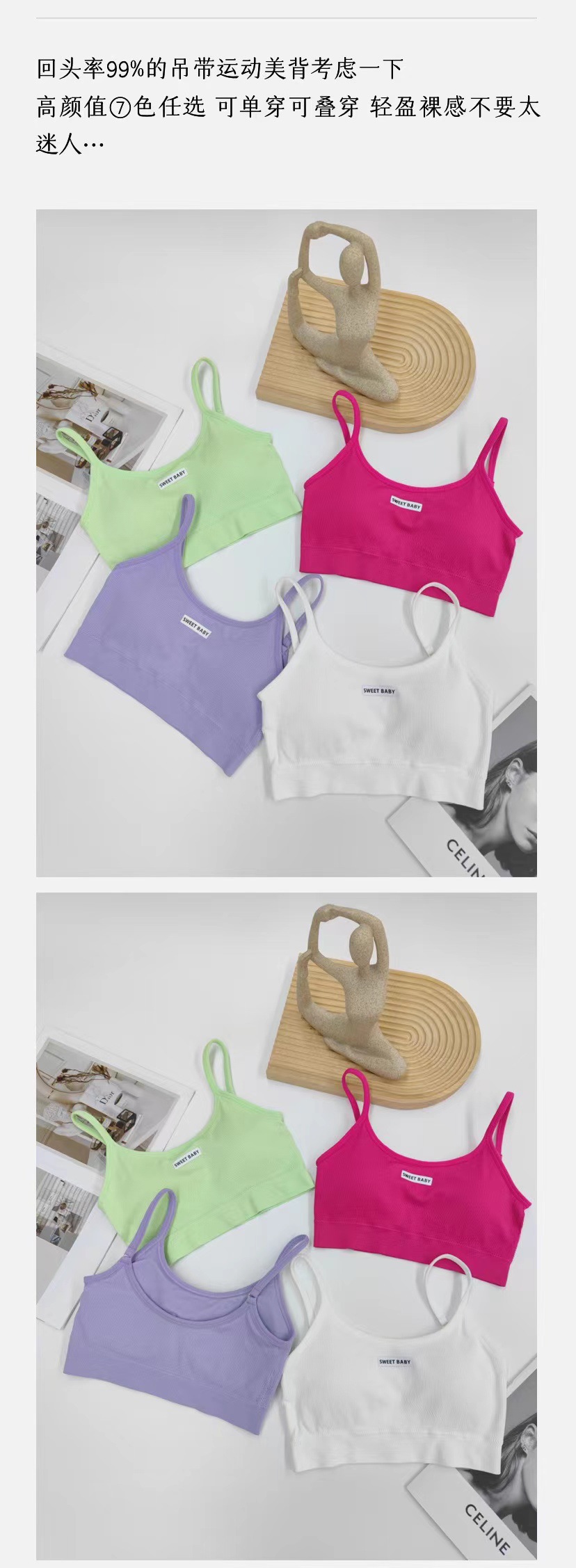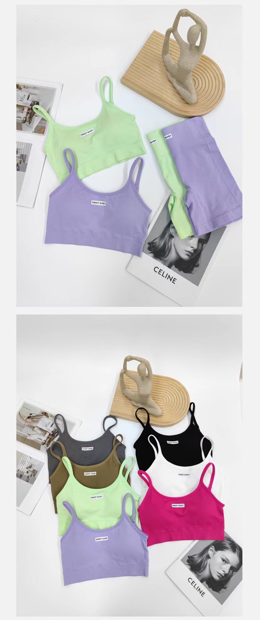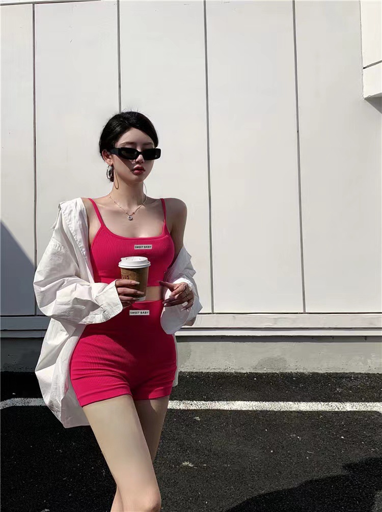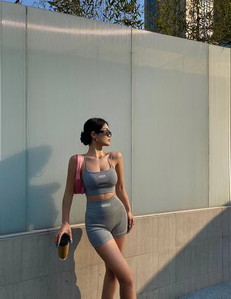 한국식 스트랩리스 걸스 하트 인즈 스파이스 걸스 슬링베이스 조끼 여자 슬림핏 스포츠 속옷 세트 올매치