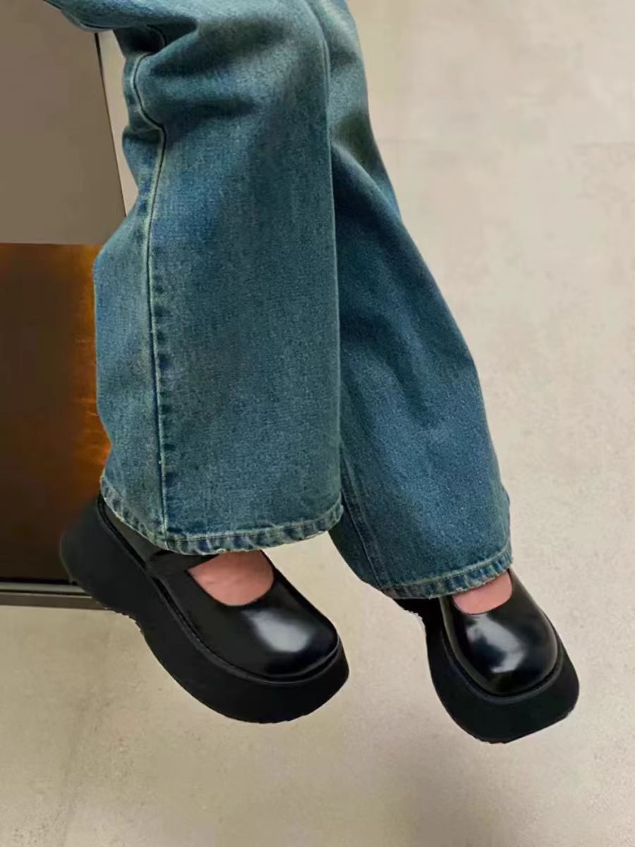 Zhao Lusi Ju Jing Yang Zi의 같은 스타일 2025 새로운 로퍼 두꺼운 밑창 작은 메리 제인 가죽 신발 여성 싱글 신발스토어 가기