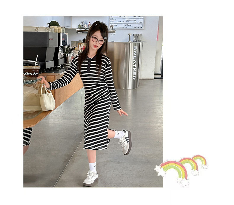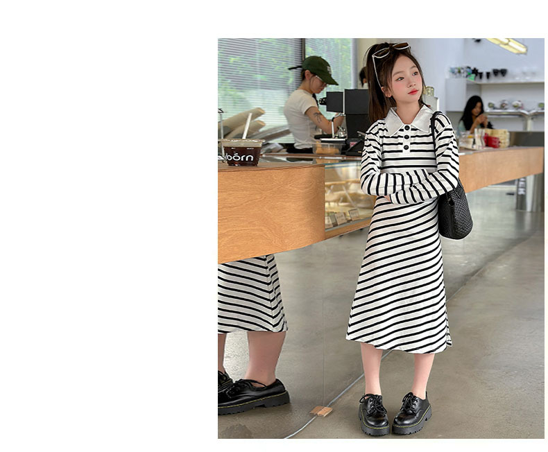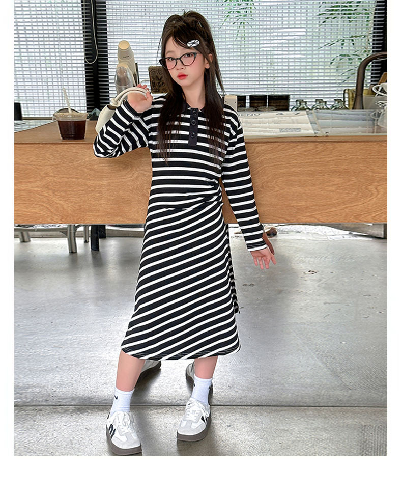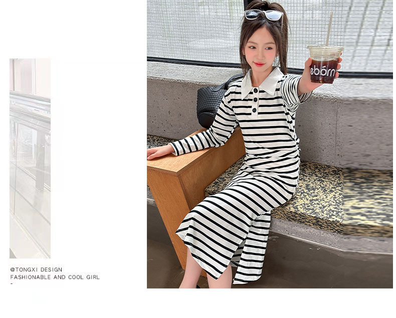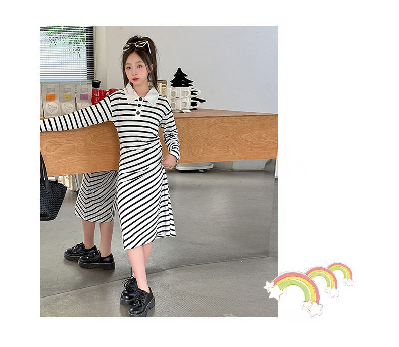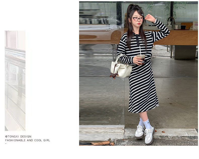 소녀의 봄과 가을 폴로 칼라 한국식 옷깃 공주 원피스 줄무늬 니트 긴팔 슬림 핏 원피스 스타일라인 원피스스토어 가기