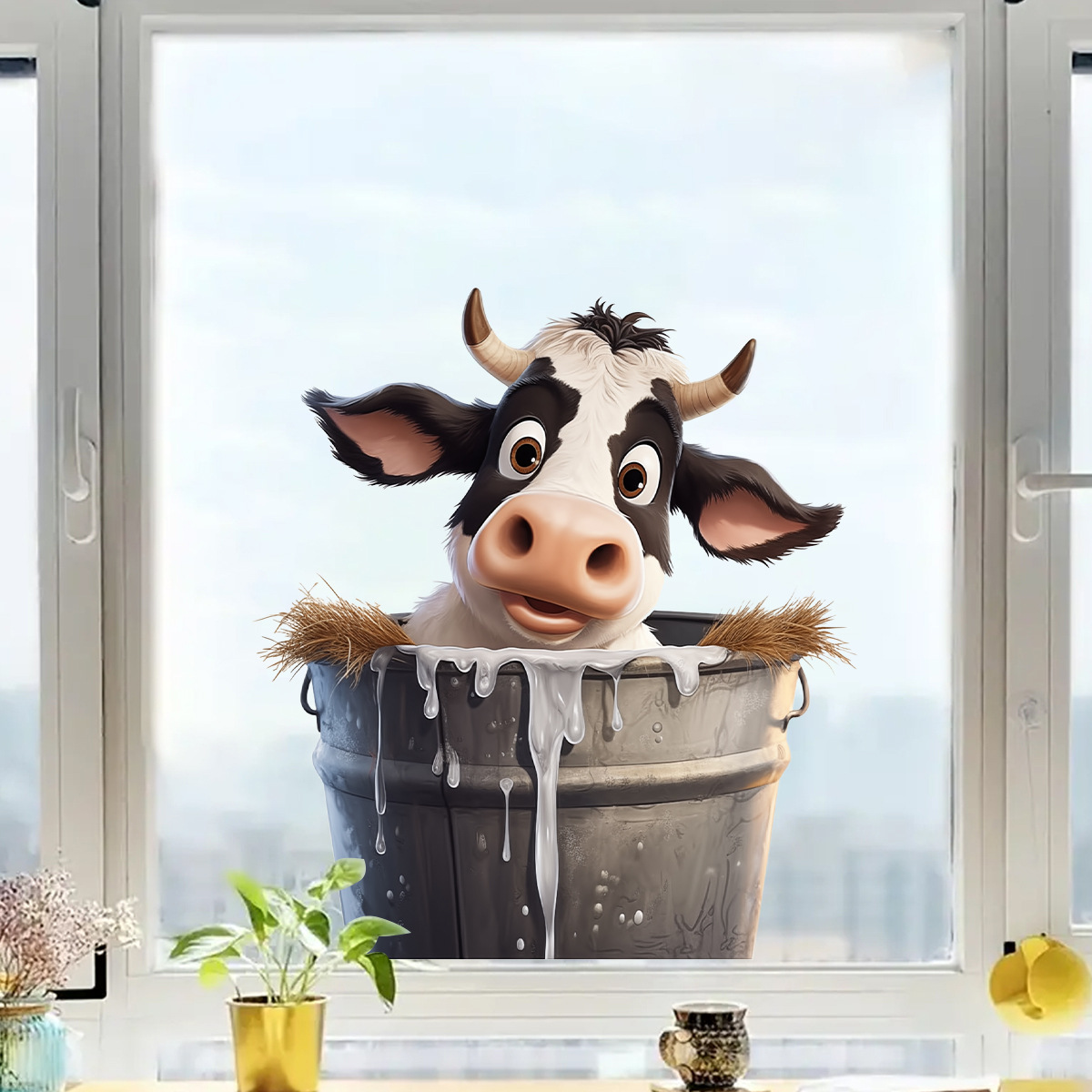 만화 귀여운 암소 사진 자기 접착 벽 스티커 양면 시각적 유리 문 및 Windows 미화 장식 스티커 BR0767C