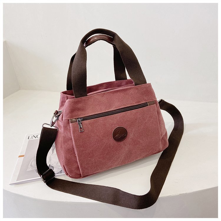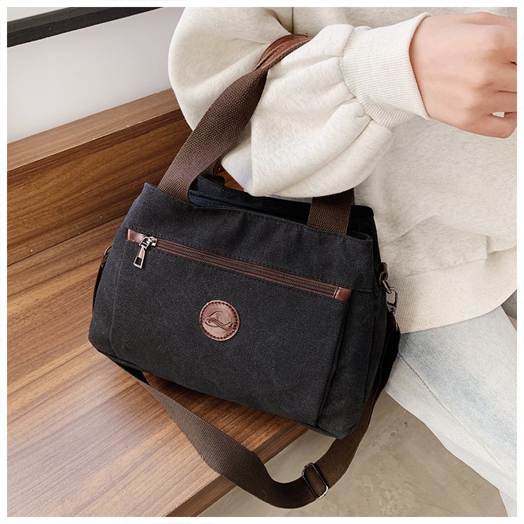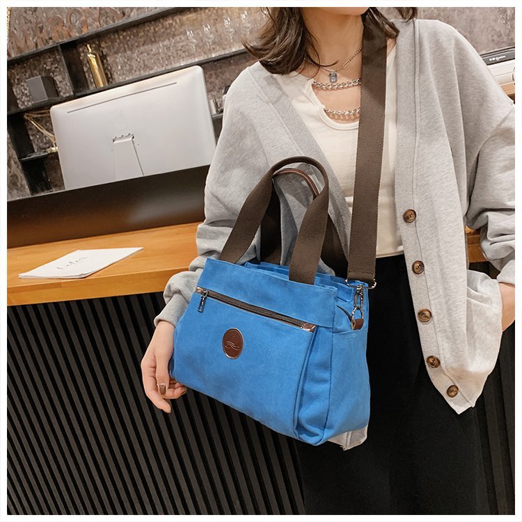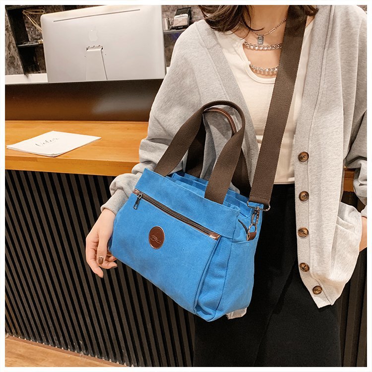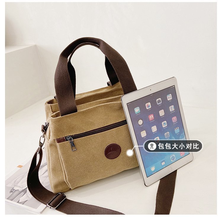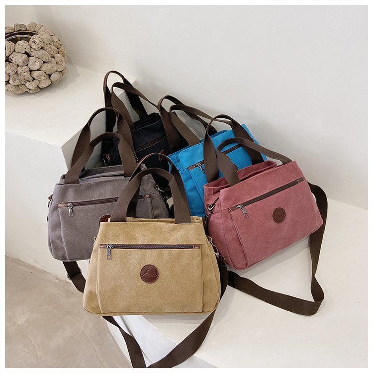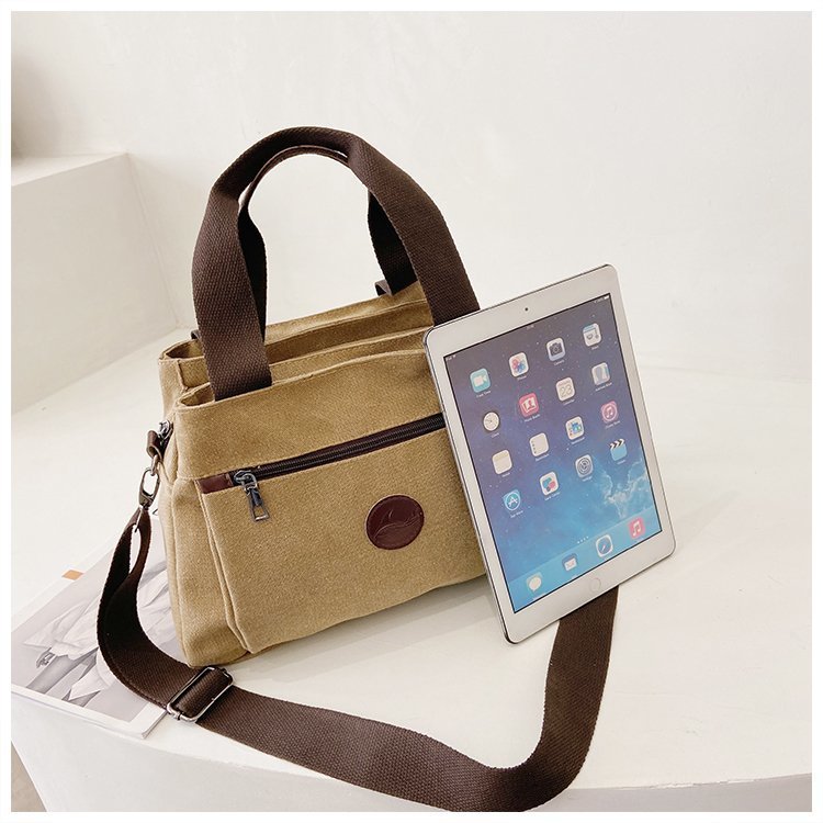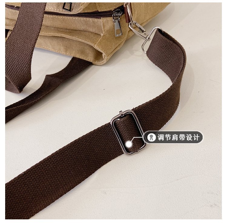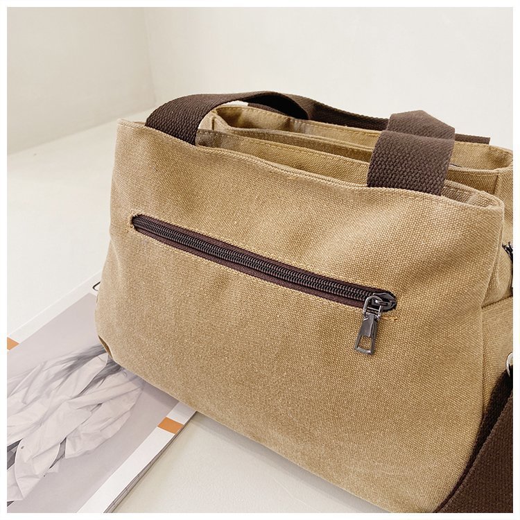 캔버스 핸드백 멀티 포켓 대용량 캔버스 가방 솔리드 컬러 캐주얼 간단한 어깨 가방 크로스 바디 가방 빈티지 여성용 가방