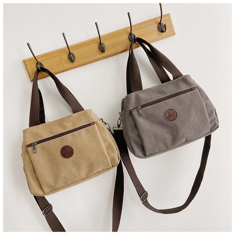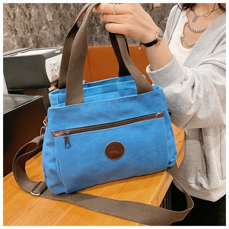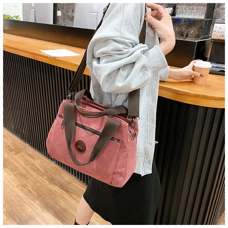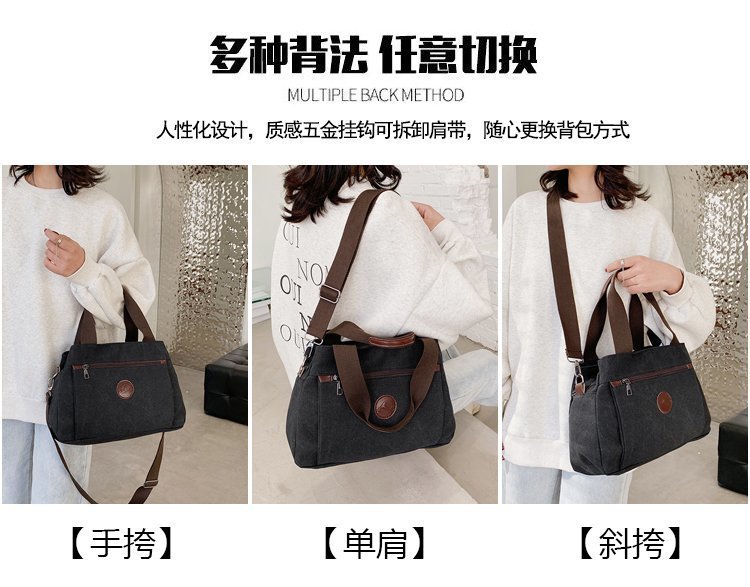 캔버스 핸드백 멀티 포켓 대용량 캔버스 가방 솔리드 컬러 캐주얼 간단한 어깨 가방 크로스 바디 가방 빈티지 여성용 가방스토어 가기