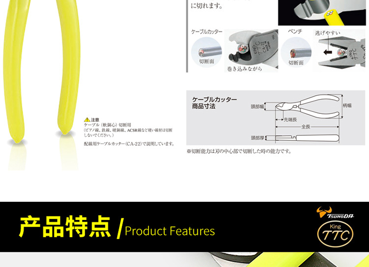 일본 수입 TTC Kakota CA-22 와이어 스트리핑 커터 와이어 가위 케이블 펜치 와이어 커터 산업 등급 6 인치스토어 가기