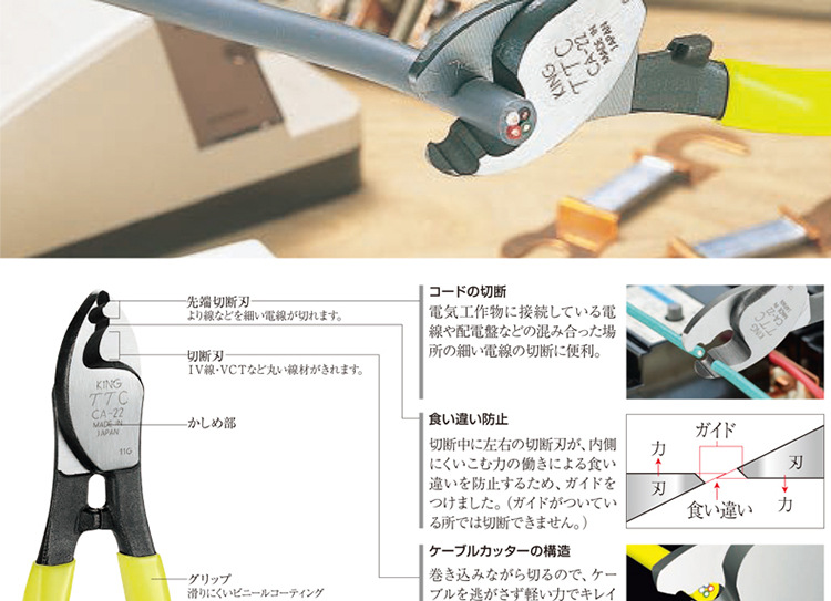 일본 수입 TTC Kakota CA-22 와이어 스트리핑 커터 와이어 가위 케이블 펜치 와이어 커터 산업 등급 6 인치