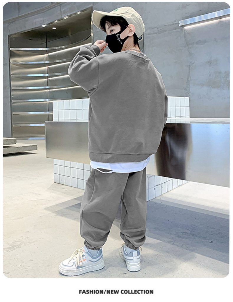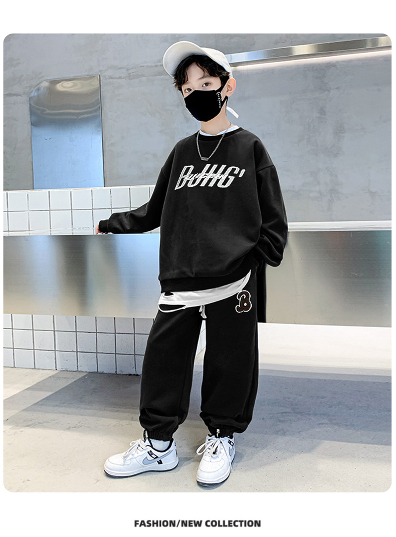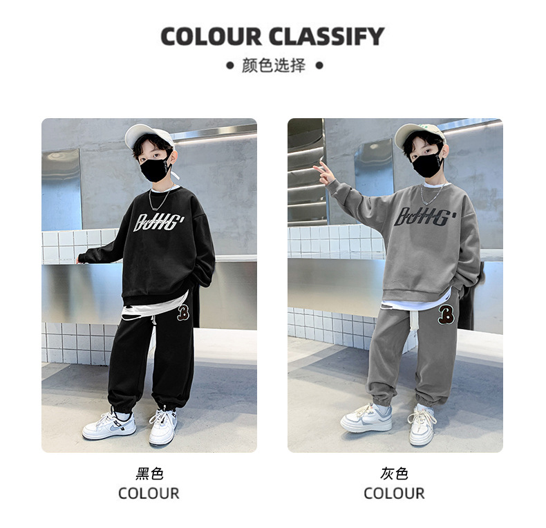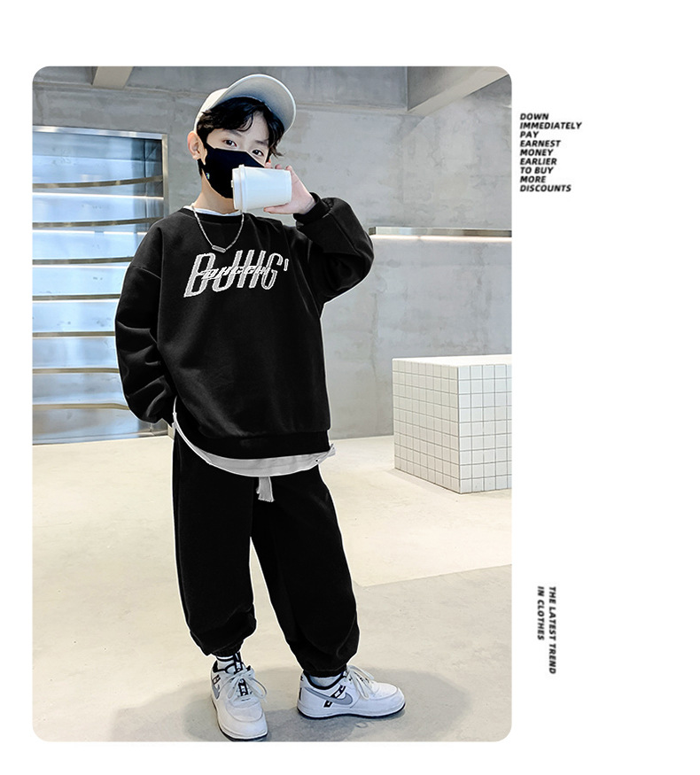 남학생 세트 봄과 가을 2024 새 소년 세트 봄과 가을 소년 스웨트 셔츠 유행 세트 후드 스웨트 셔츠스토어 가기