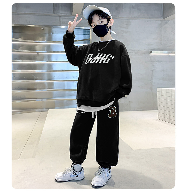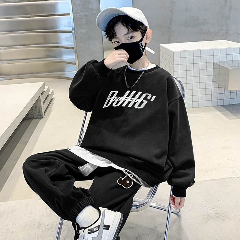 남학생 세트 봄과 가을 2024 새 소년 세트 봄과 가을 소년 스웨트 셔츠 유행 세트 후드 스웨트 셔츠