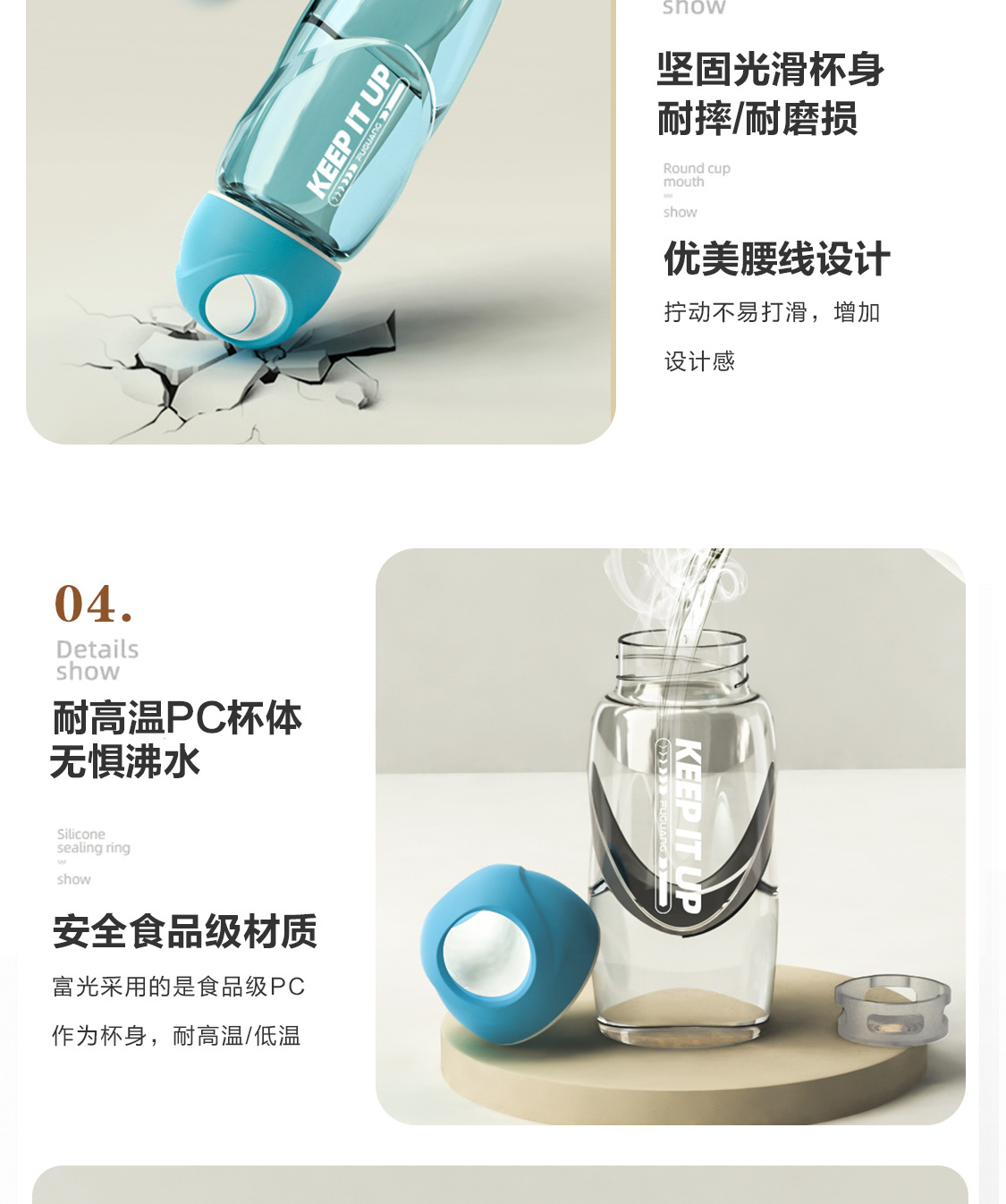 Fuguang 우주 컵 남자와 여자의 여름 낙하 방지 플라스틱 컵 휴대용 학생 티 컵 스포츠 주전자 광고 선물