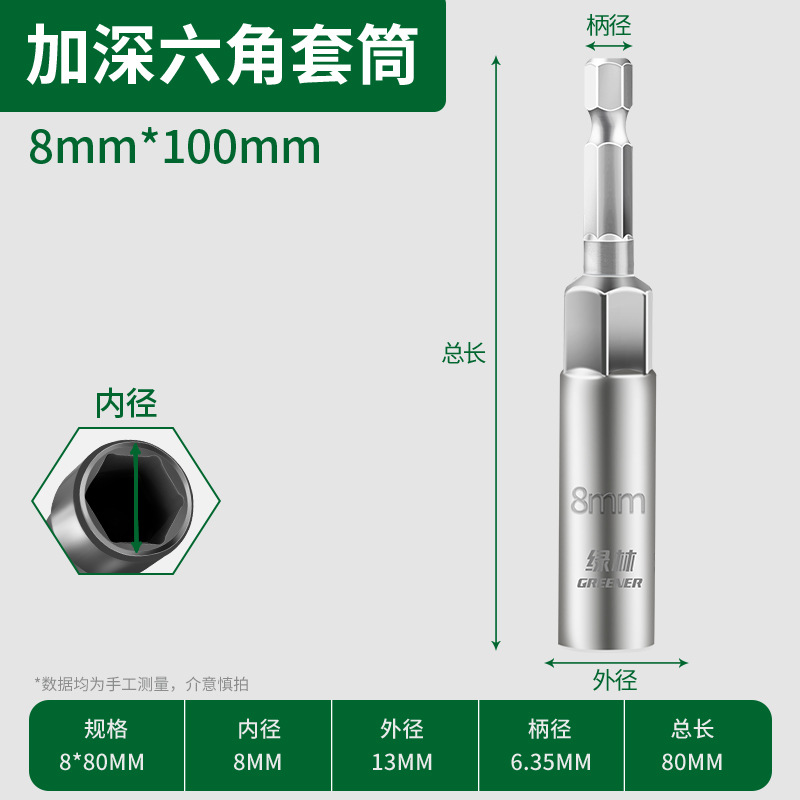 녹색 숲 80mm 양조 공기 소켓 양조 손 전기 드릴 소매 헤드 육각형 소켓 헤드 전기 렌치 바람 소매스토어 가기