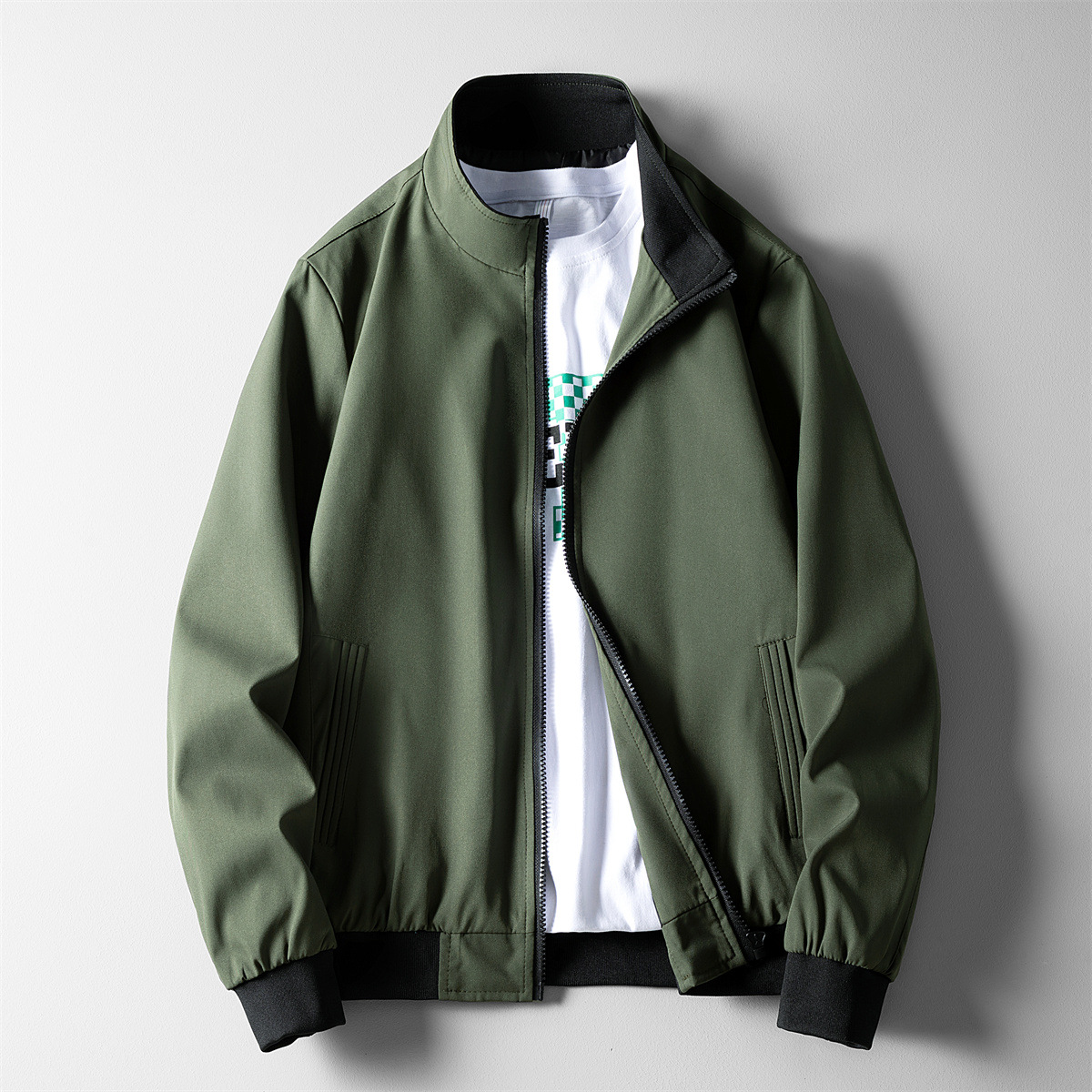 남성용 자켓 2025 봄/가을 신상 비즈니스 캐주얼 고급 상의 스탠드 칼라 다림질 필요 없는 임원용 자켓스토어 가기