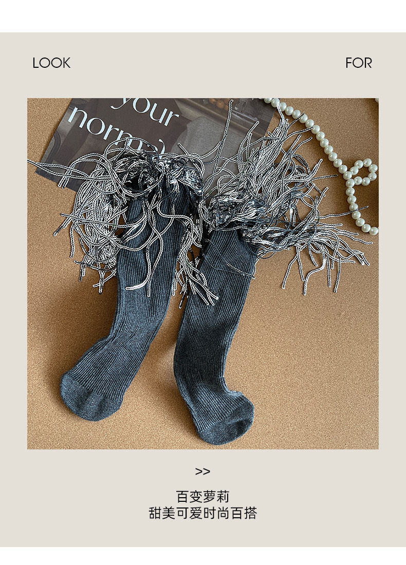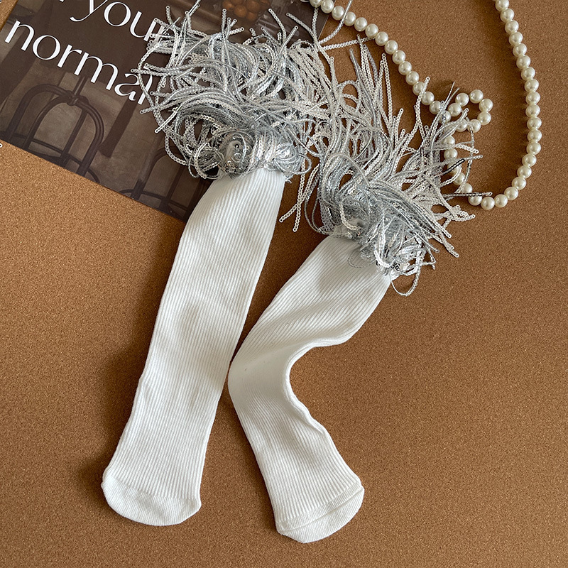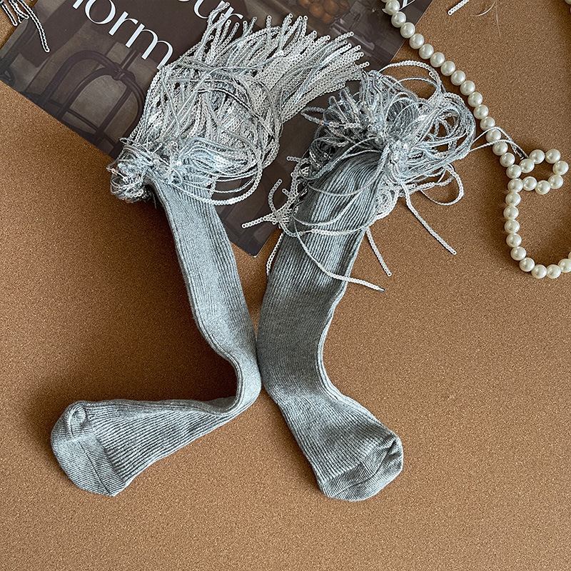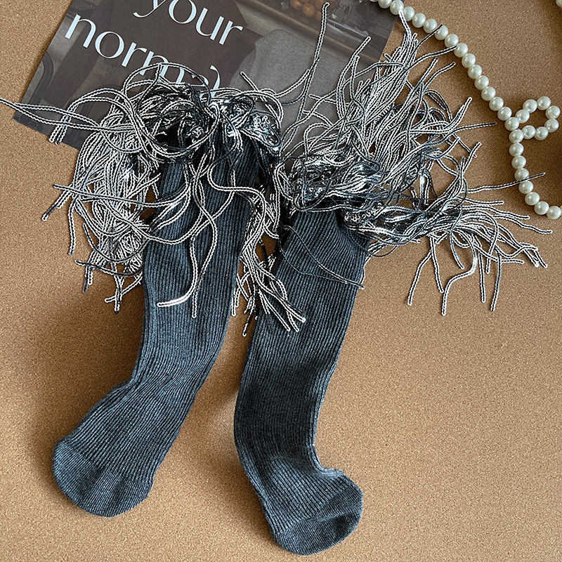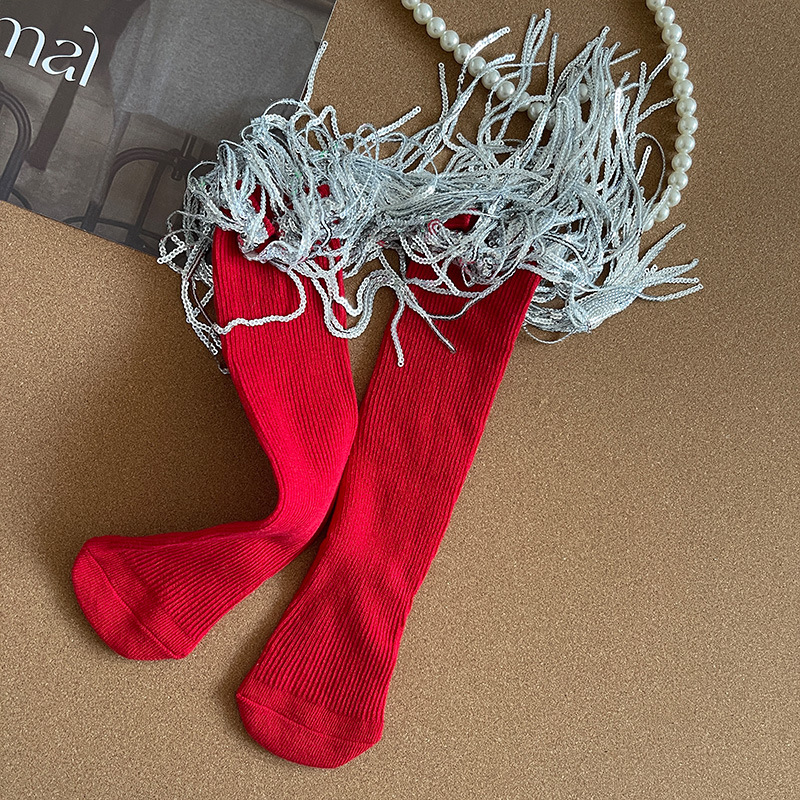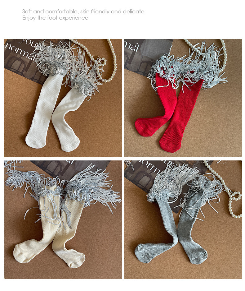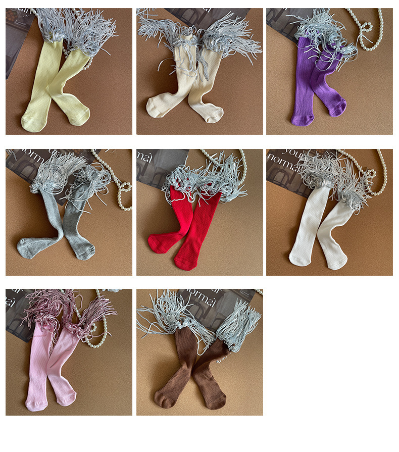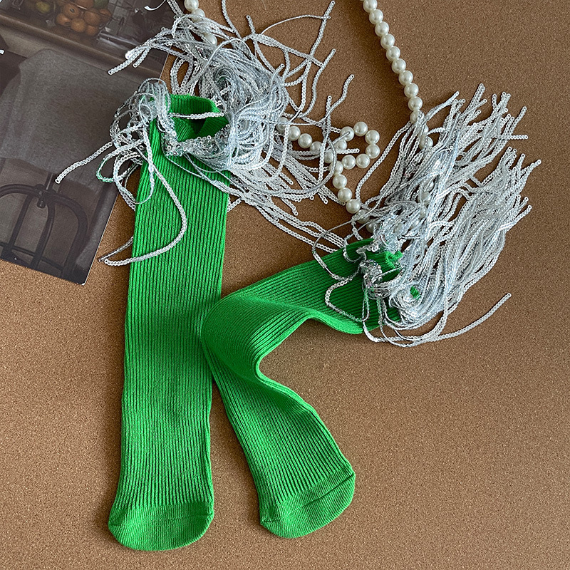 여자 양말 Ins 한국 스타일 봄과 가을 어린이 미드 튜브 양말 JK Sequins Tassel Girls 컬러 매칭 올매치 더미 양말스토어 가기