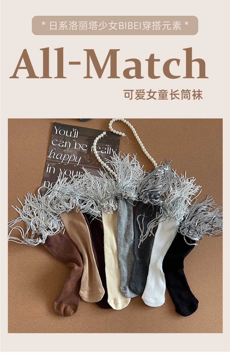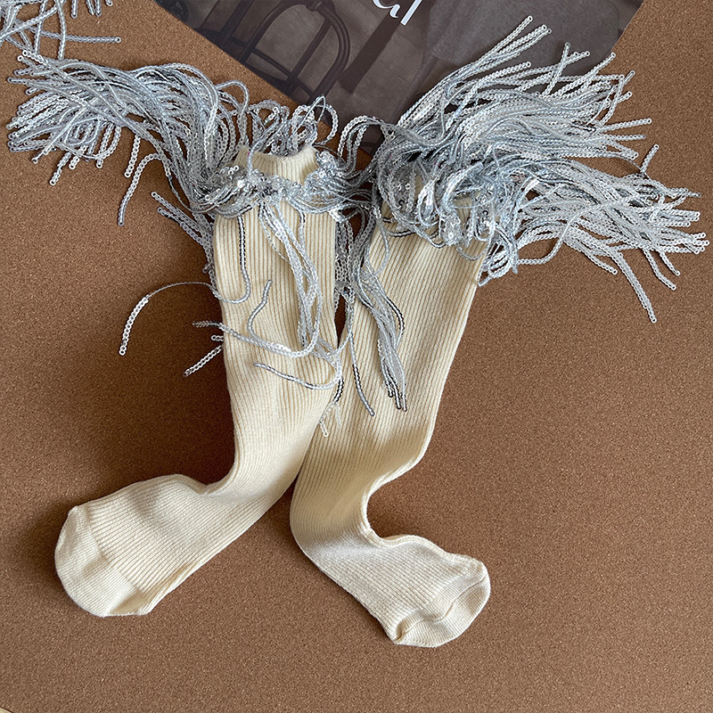 여자 양말 Ins 한국 스타일 봄과 가을 어린이 미드 튜브 양말 JK Sequins Tassel Girls 컬러 매칭 올매치 더미 양말