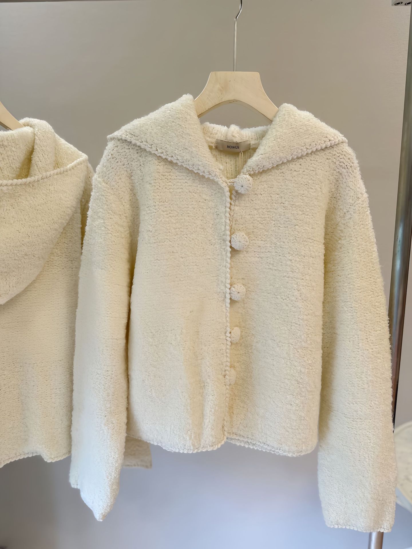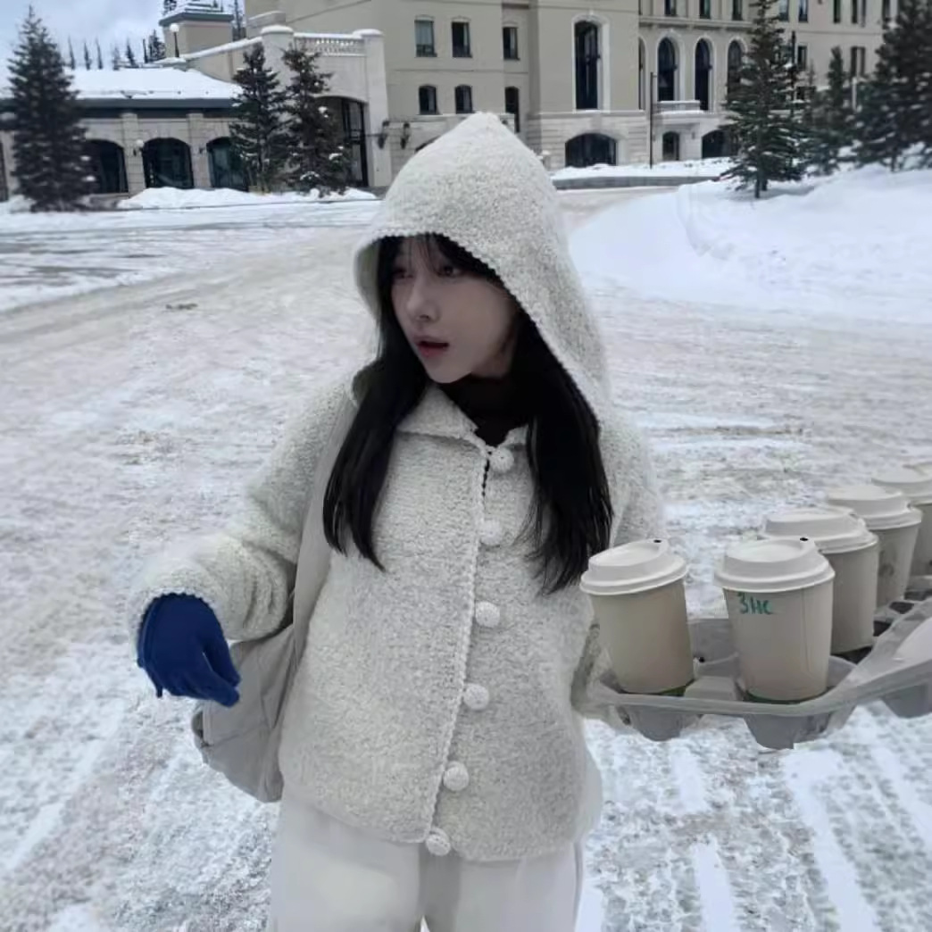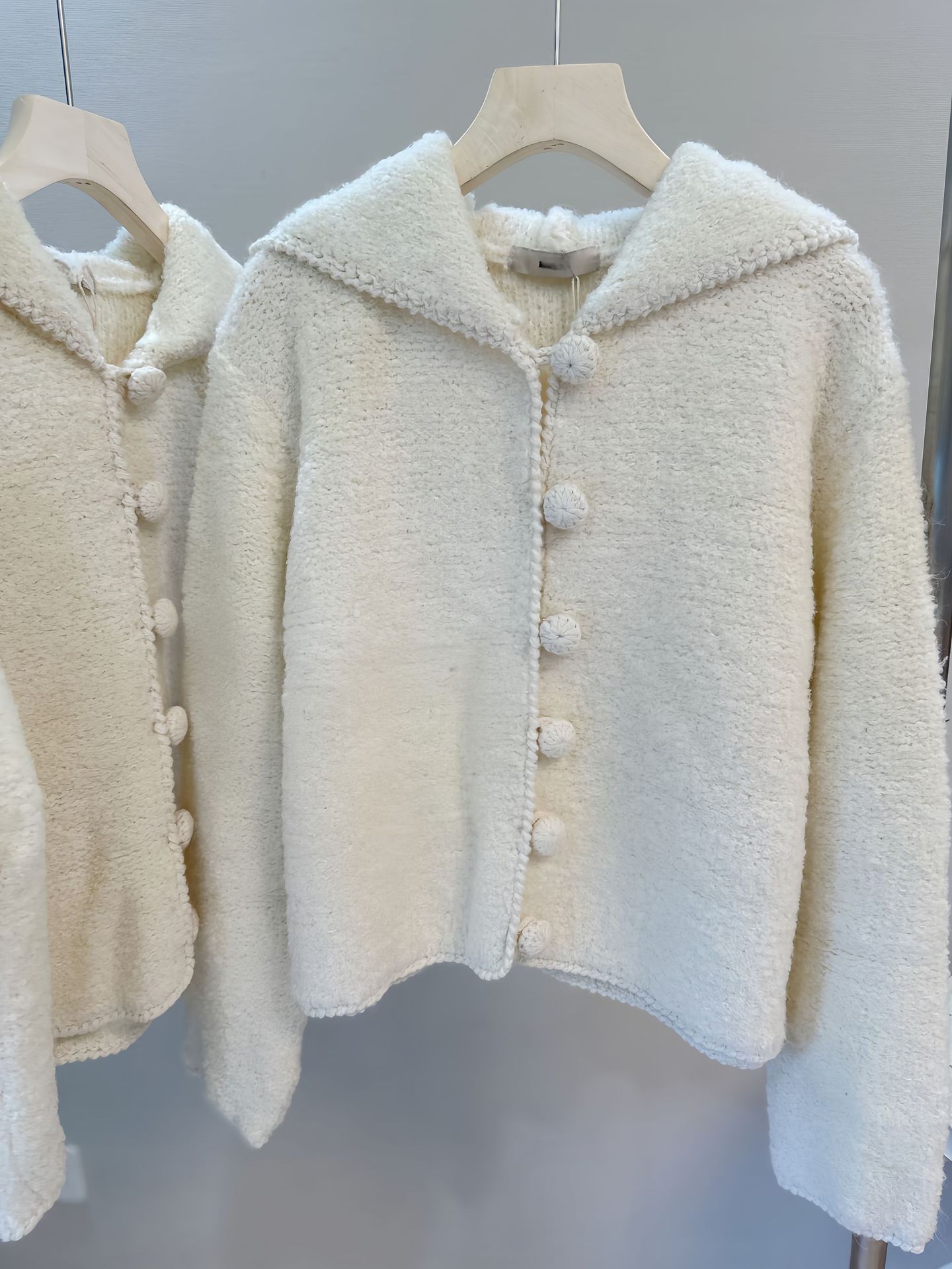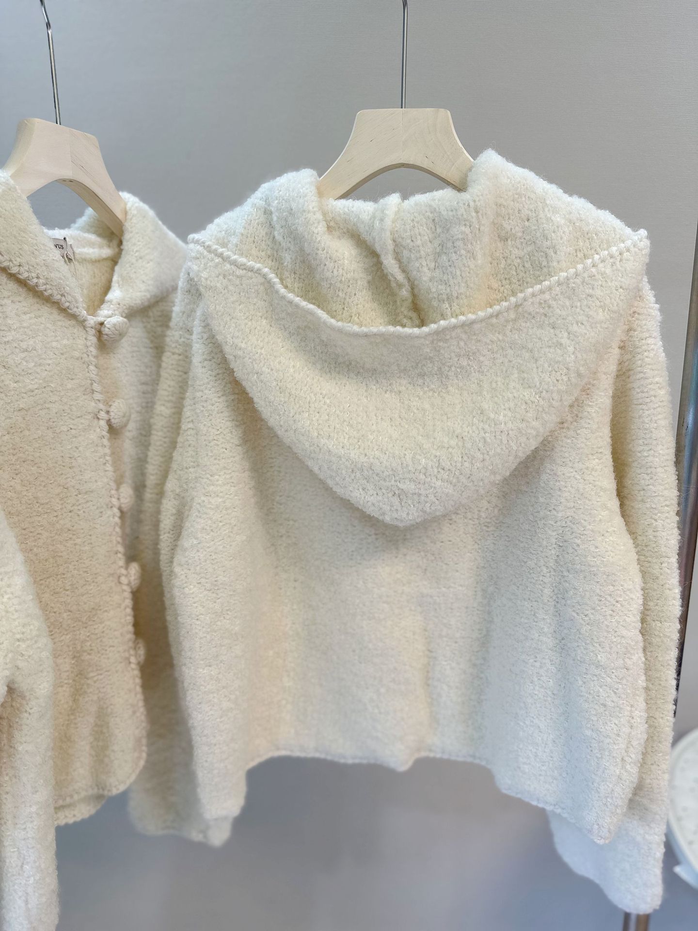 Spot 24 가을 겨울 신상품 동대문 한국식 후드 원형 원사 울 재킷 가디건 밀크 화이트 여성