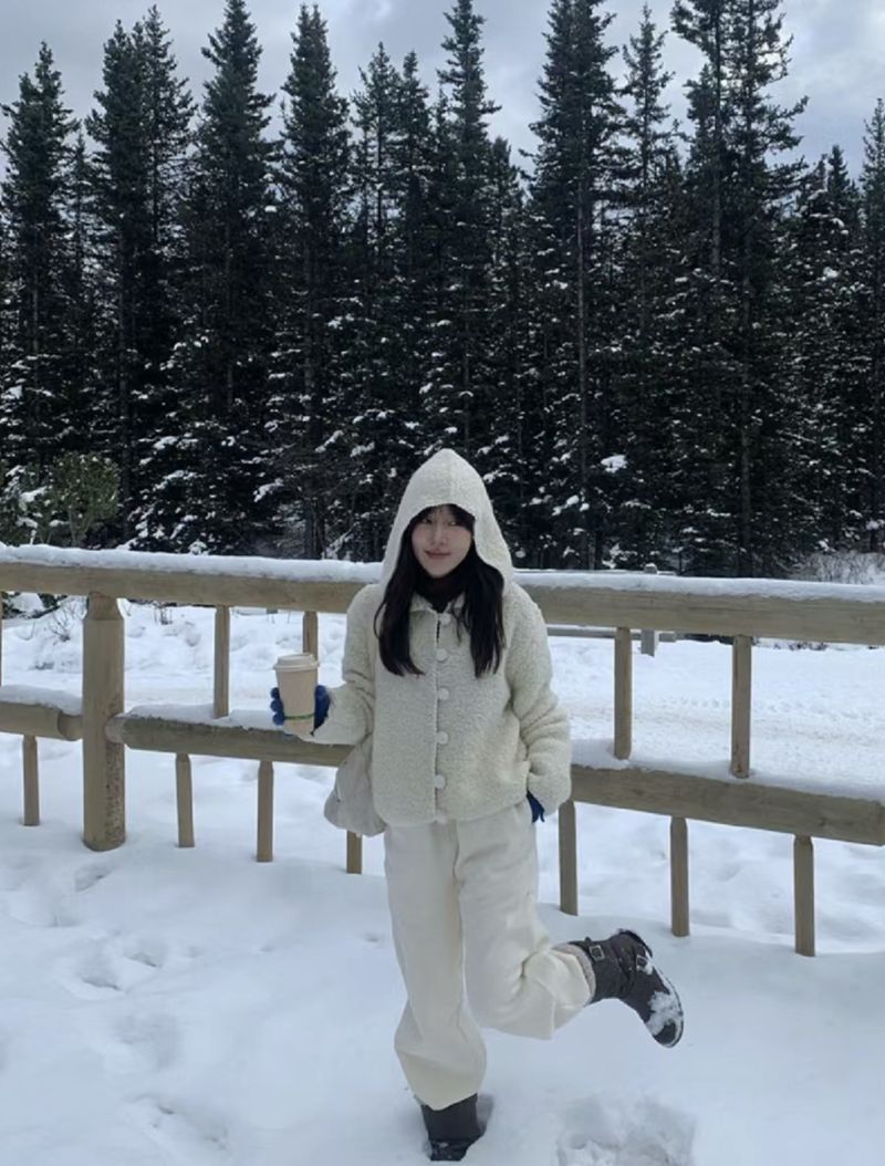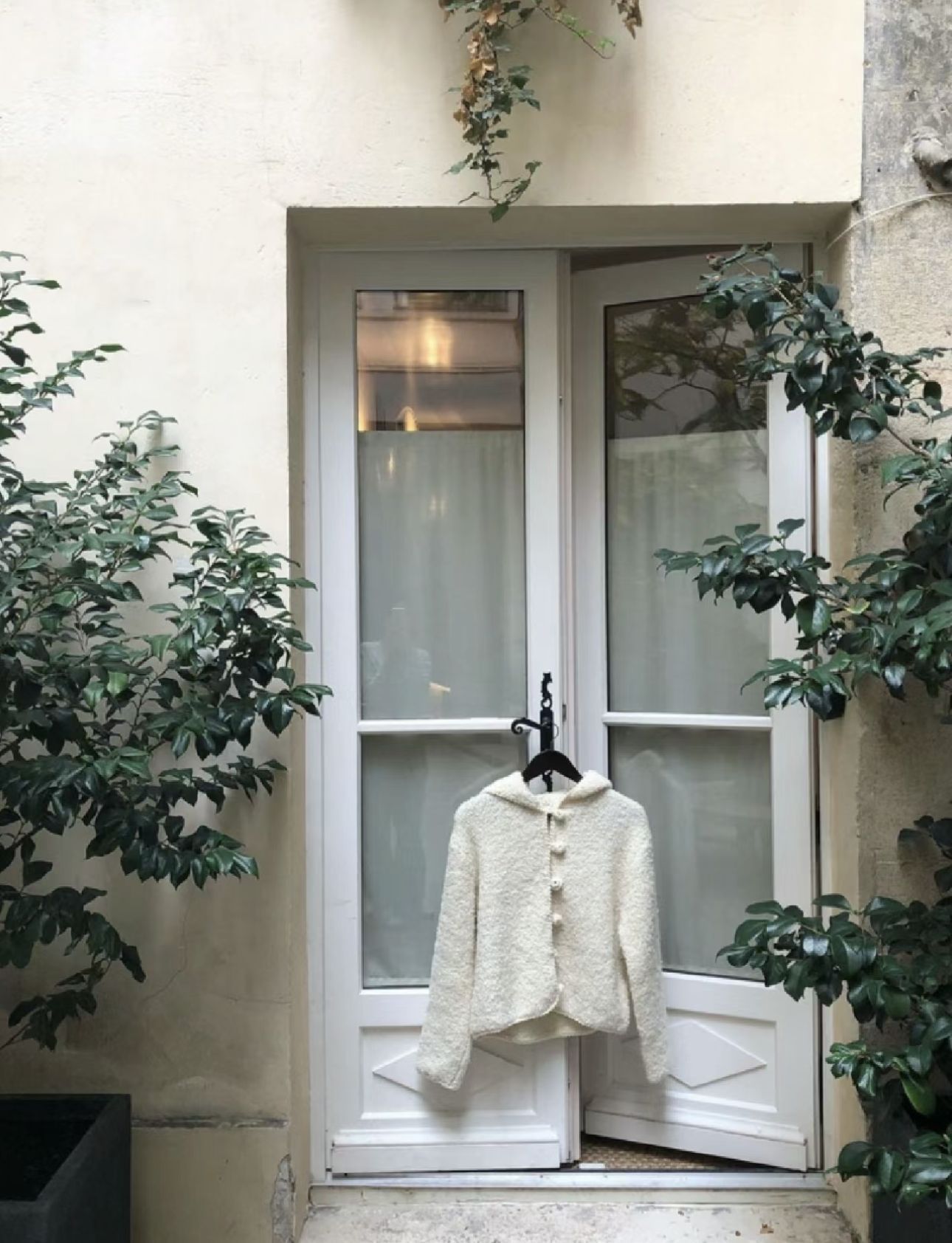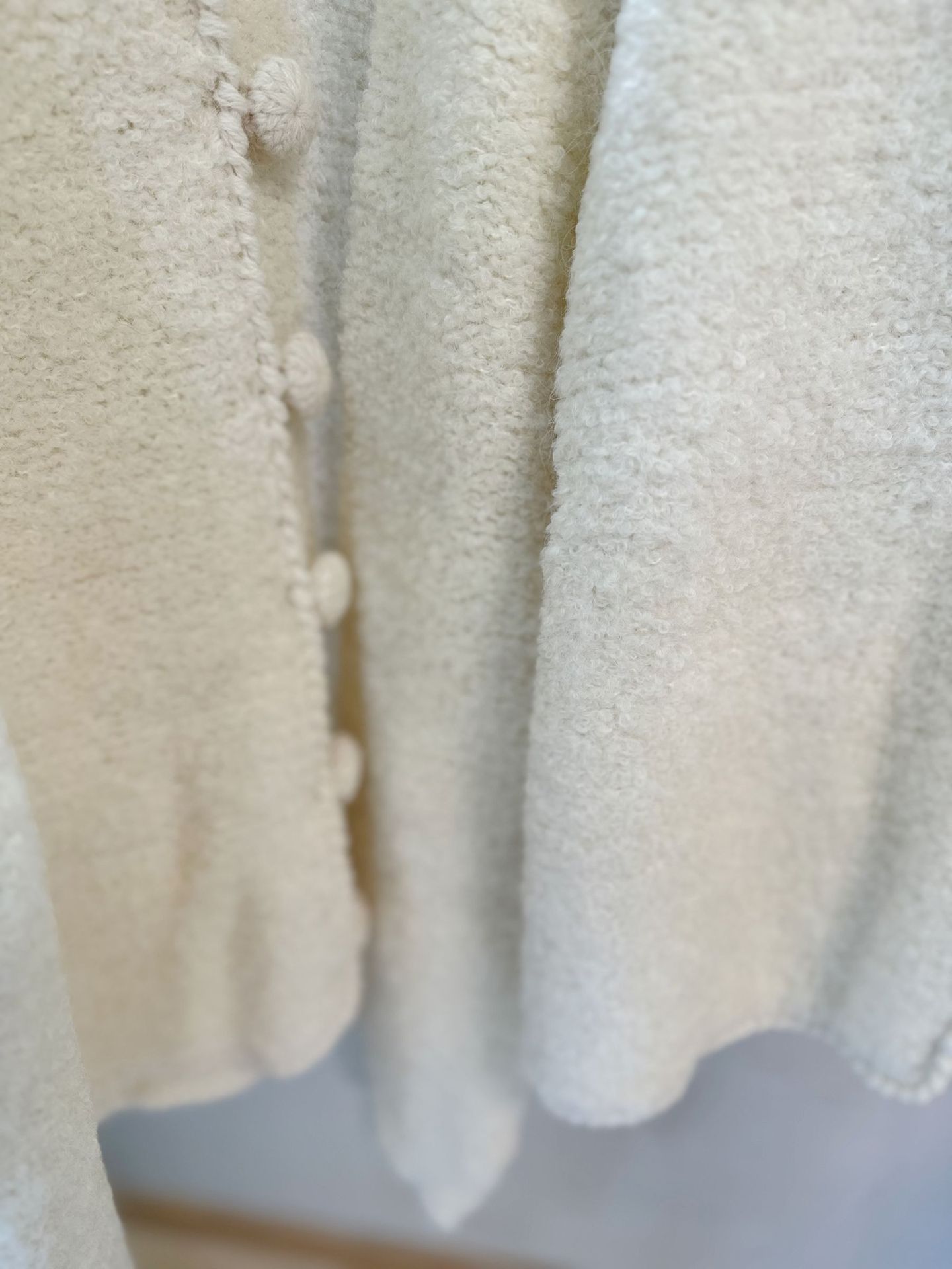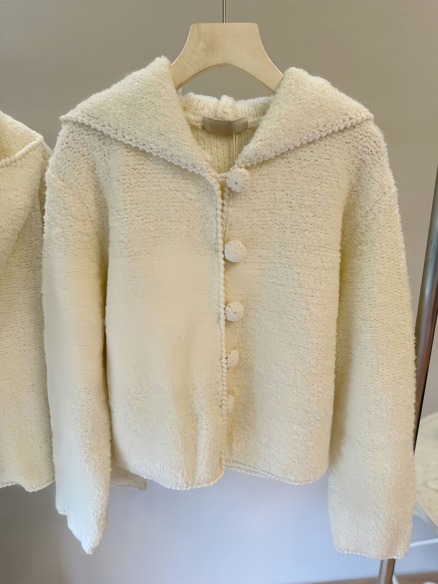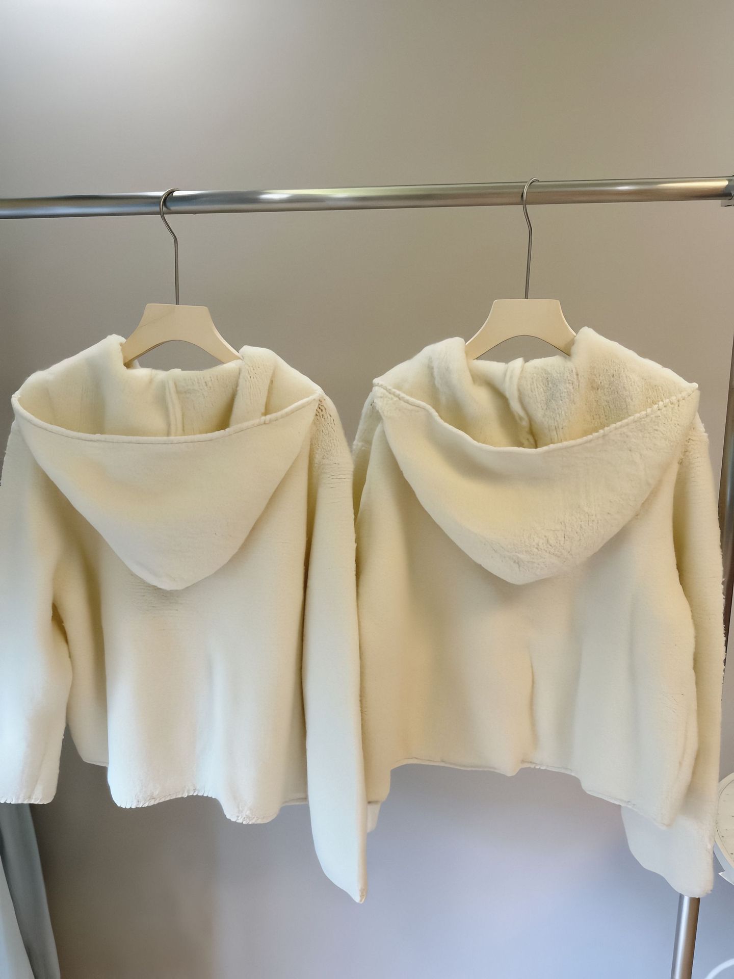 Spot 24 가을 겨울 신상품 동대문 한국식 후드 원형 원사 울 재킷 가디건 밀크 화이트 여성