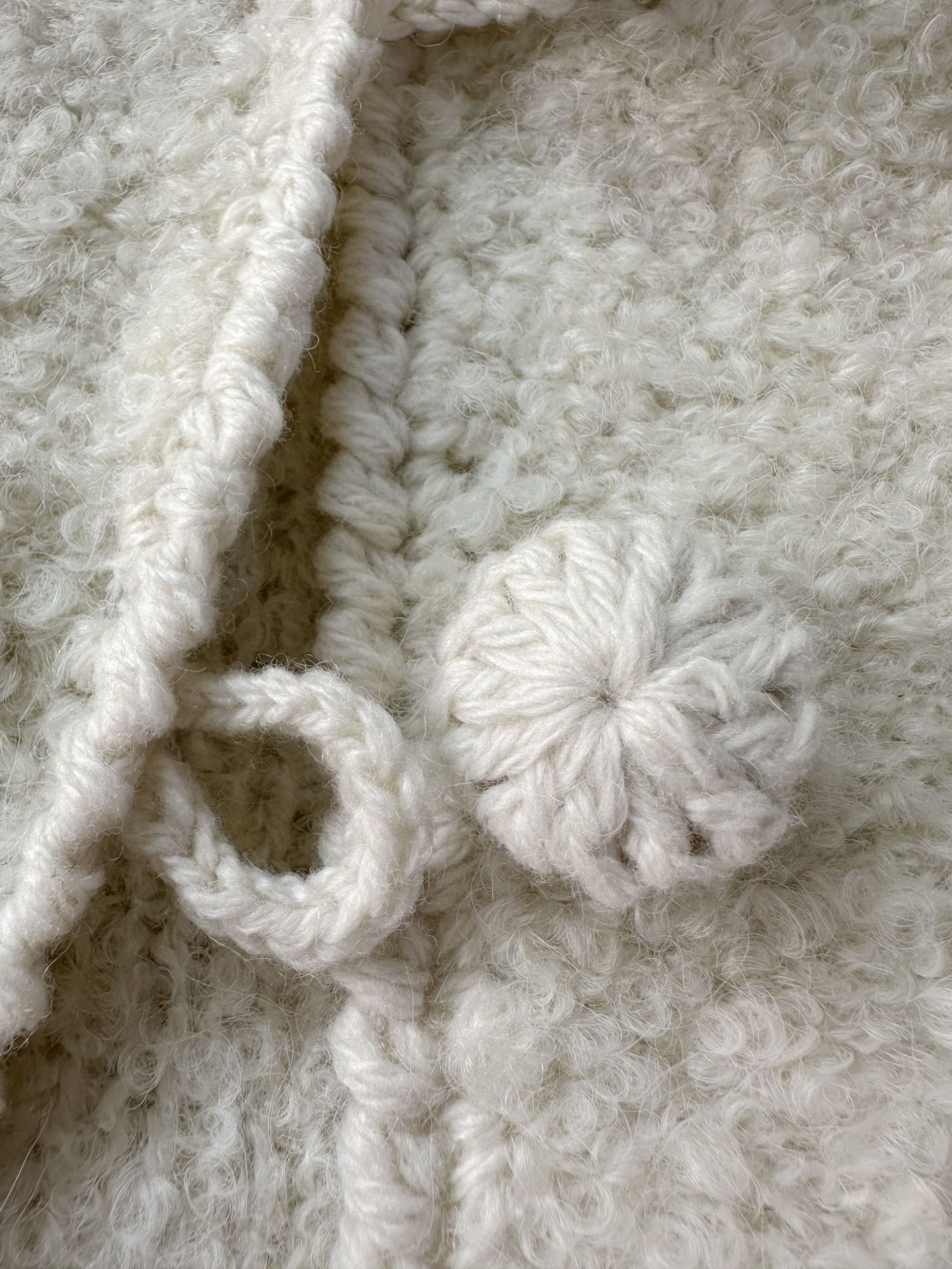 纽扣和纽扣结大身整体花边都是纯手工的!