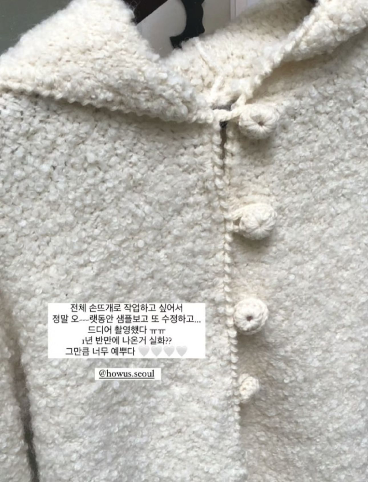 Spot 24 가을 겨울 신상품 동대문 한국식 후드 원형 원사 울 재킷 가디건 밀크 화이트 여성스토어 가기