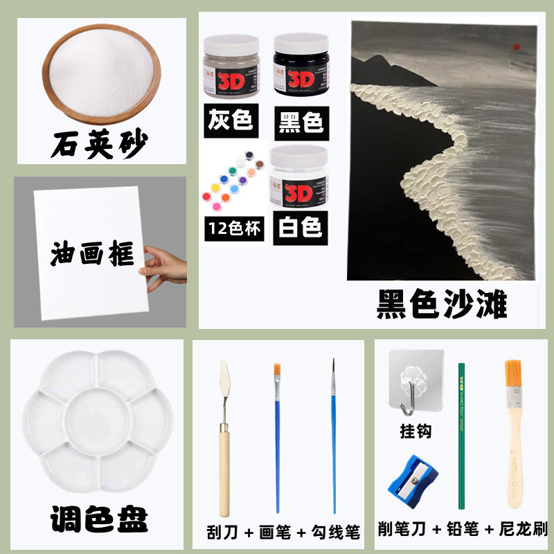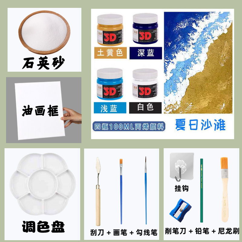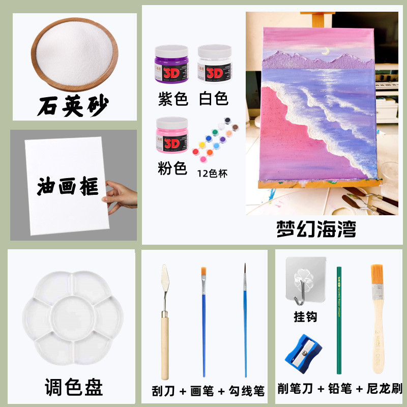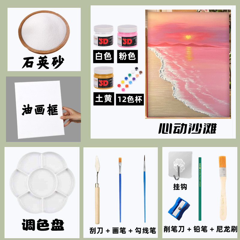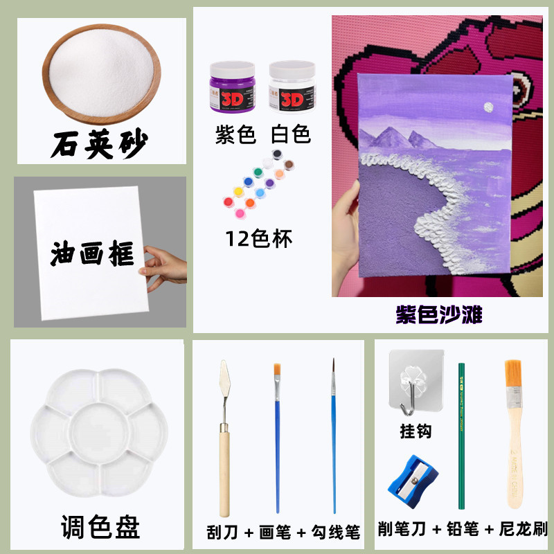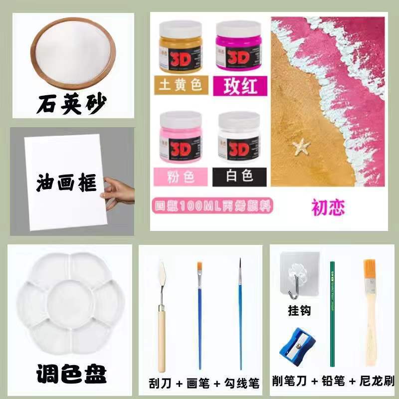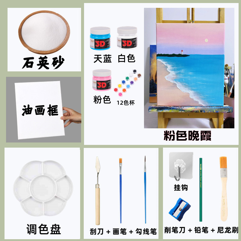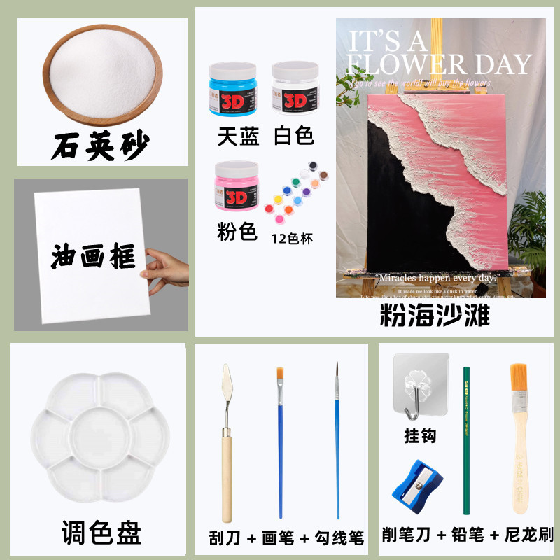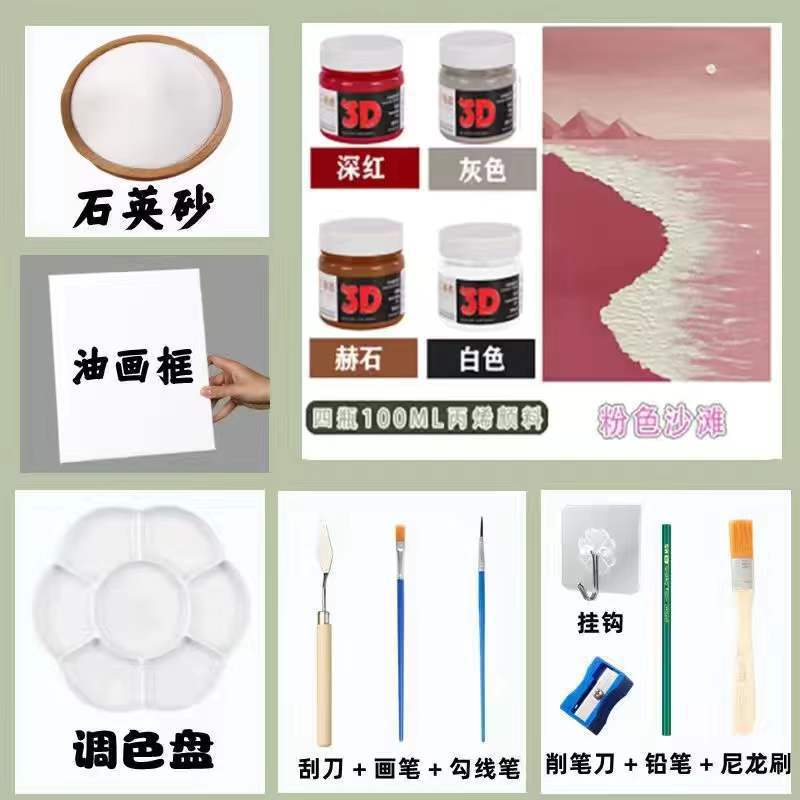 텍스처 페인팅 DIY 소재 스테레오 쿼츠 모래 아크릴 디지털 유화 손 페인팅 핑크 비치 컬러 페인팅 도매스토어 가기
