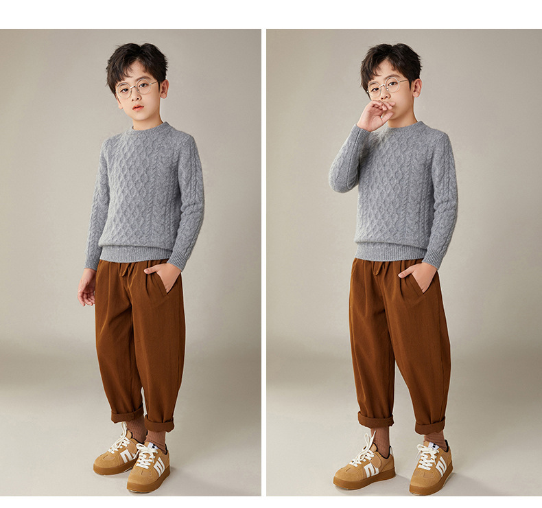 소년 소녀 캐시미어베이스를위한 어린이 세 가닥 양모 따뜻한 풀오버 스웨터