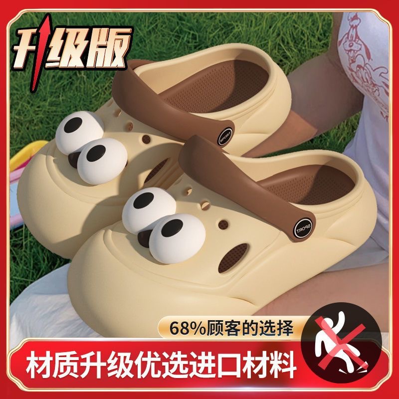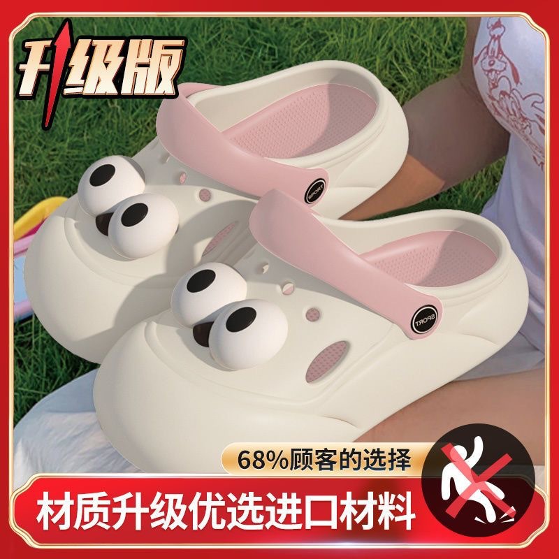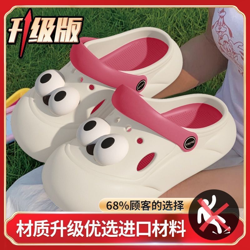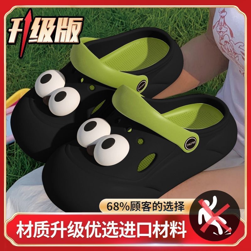 2024 여름 새로운 귀여운 만화 큰 눈 구멍 신발 여자의 외부 착용 두꺼운 유일한 미끄럼 방지 슬리퍼스토어 가기